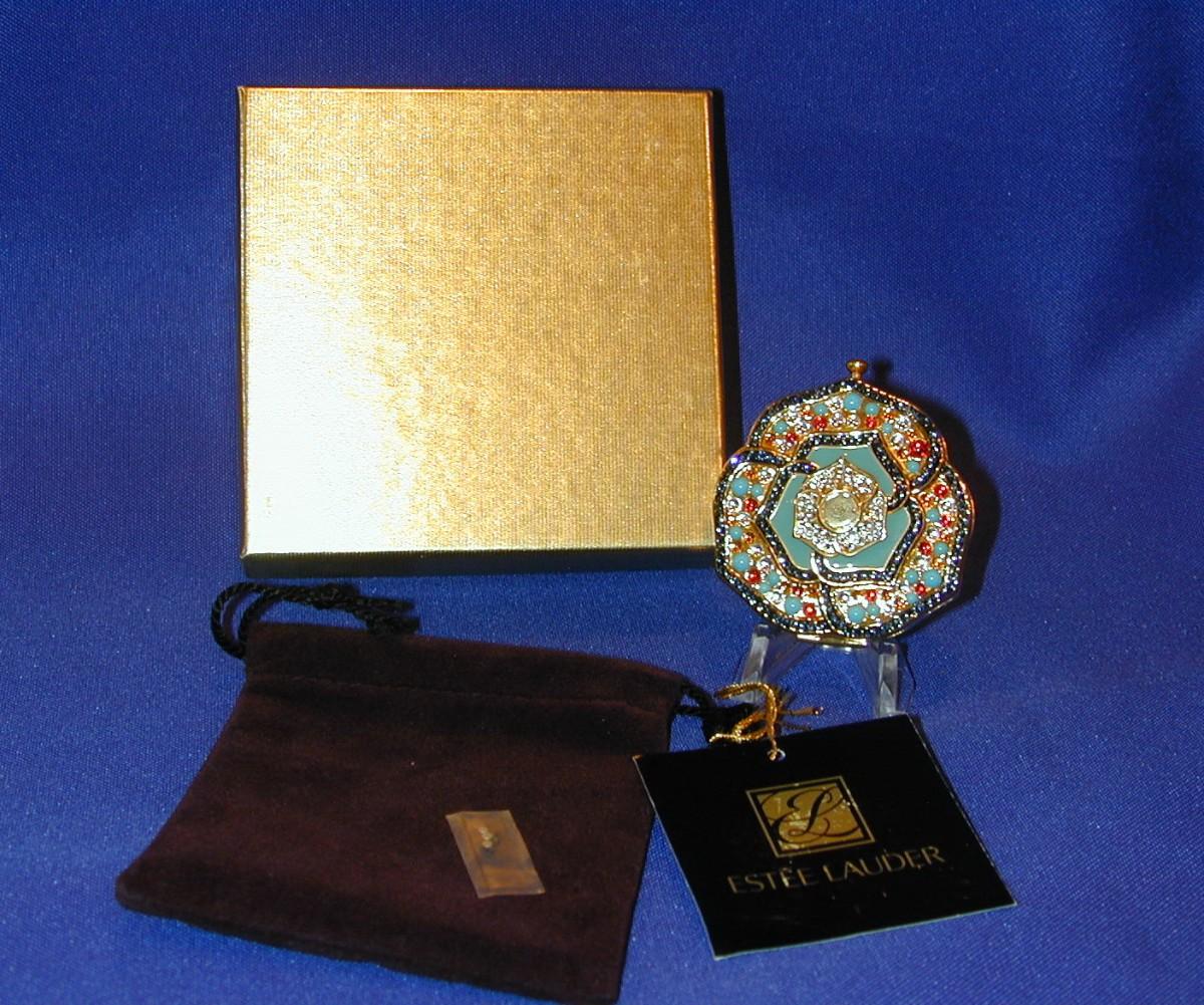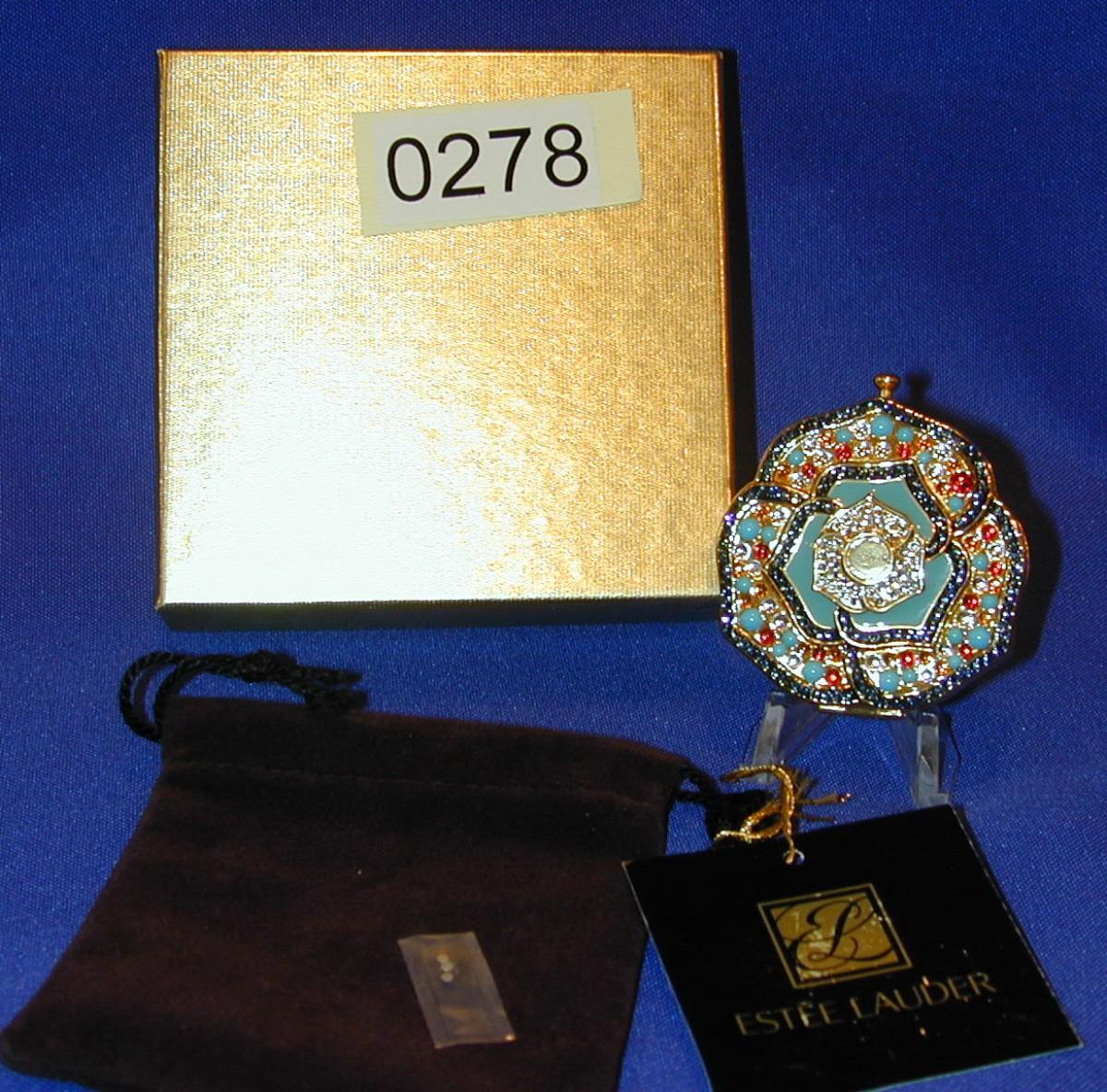 Estee Lauder Pressed Powder Lucidity Compact 06 Transparent Turquoise Enamel & Crystals Lot 278