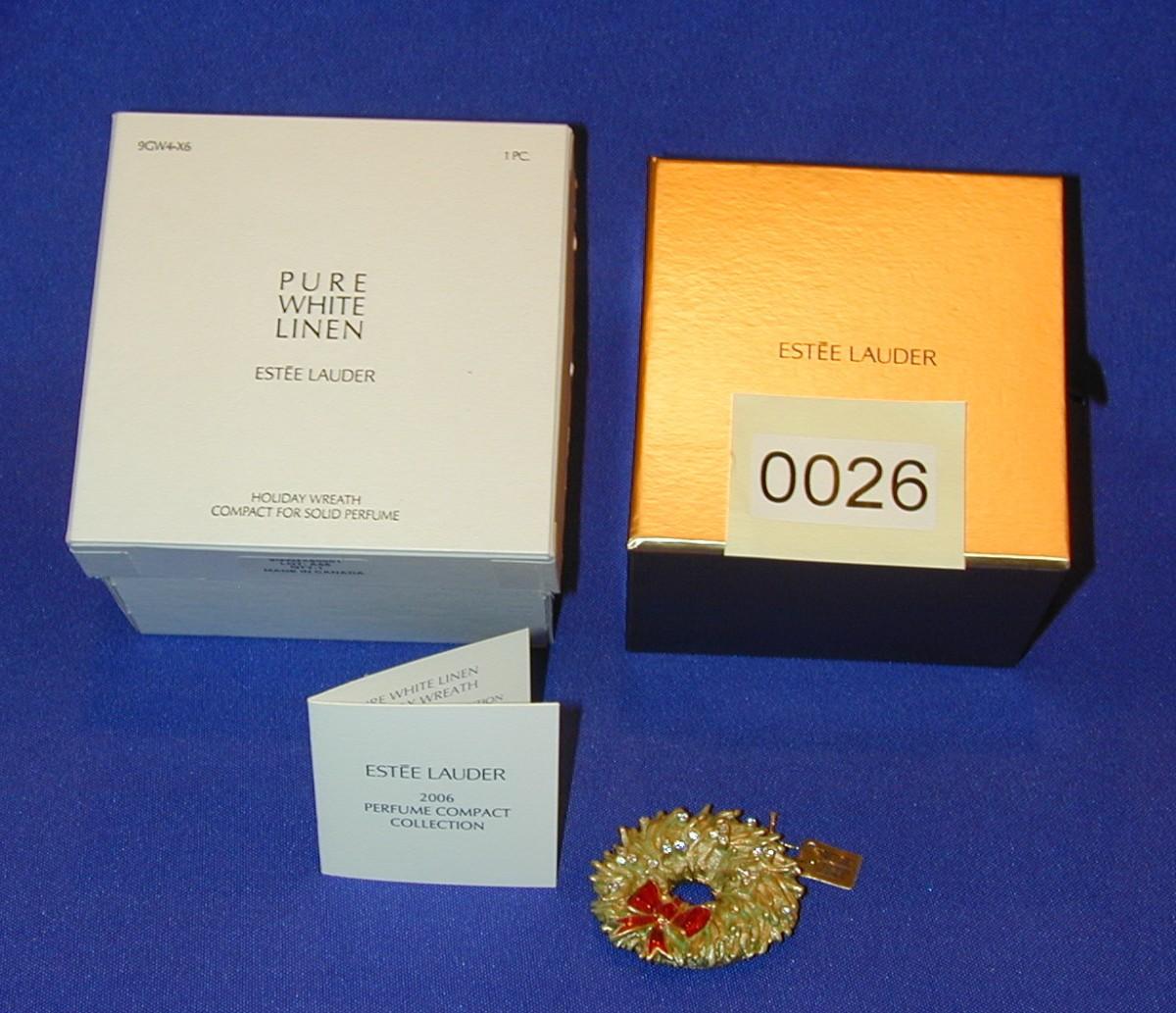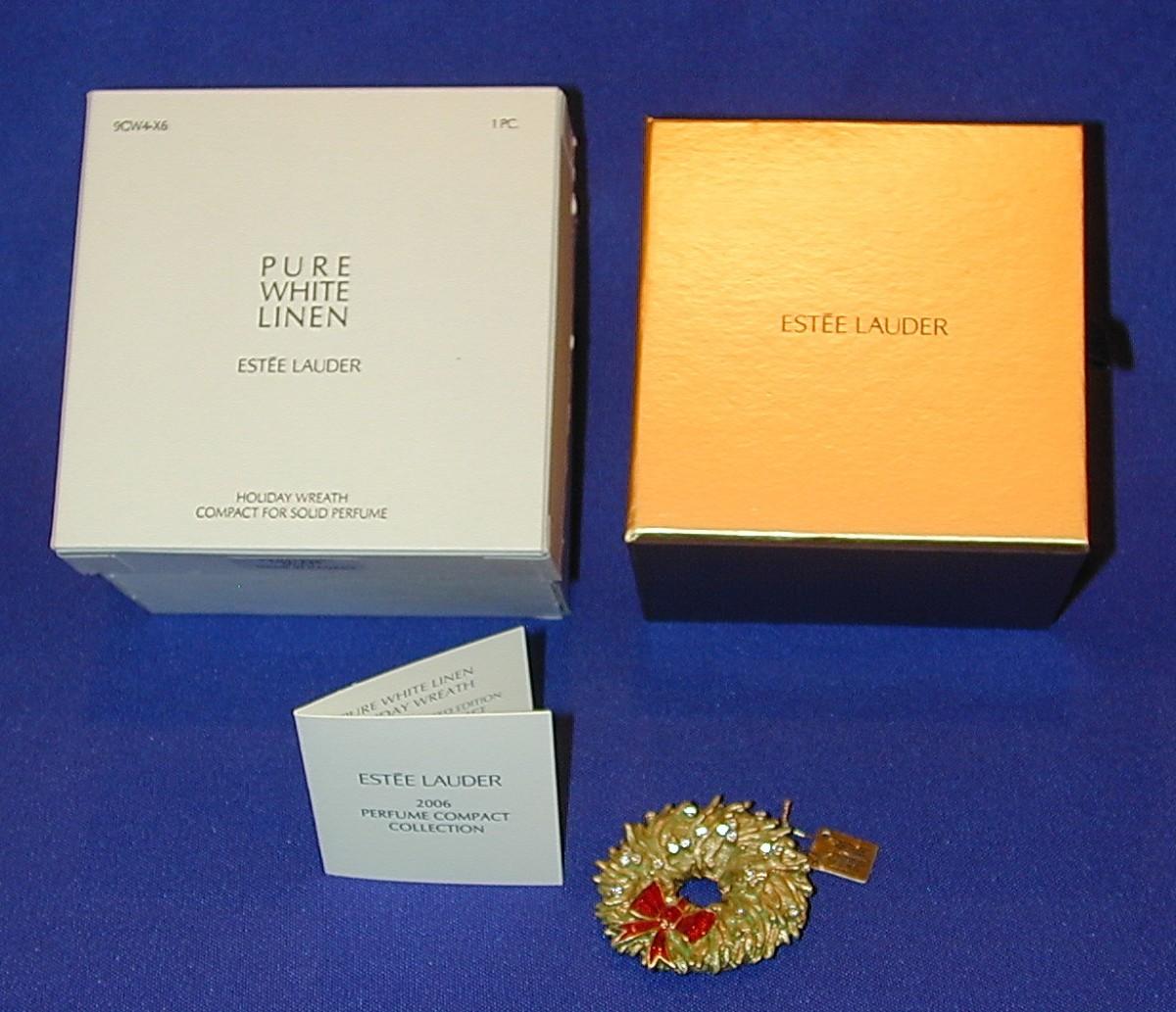 Estee Lauder Pure White Linen Holiday Wreath Solid Perfume Compact Lot 26