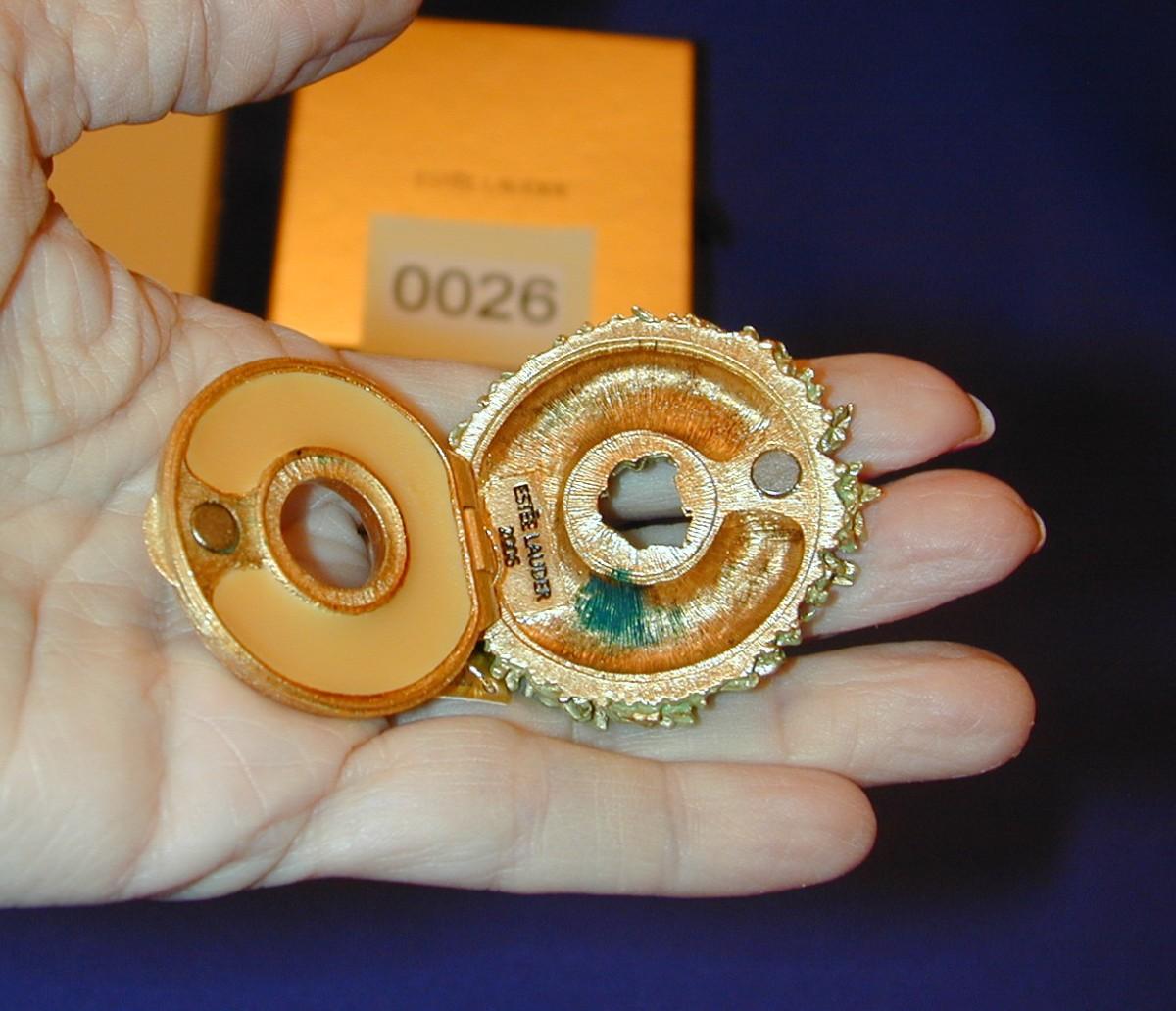 All compacts have been cabinet displayed and are full or almost full of perfume (see photos) - any that are well used will be noted. We cannot guarantee the perfume quality as solid perfume changes/shrinks/discolors over time (see photos). The compacts are photographed with what they come with (* If the box is shown , the box is included - if not, not included). We have examined each one and any obvious flaws will be noted. We offer nationwide shipping - see terms & conditions section. Never a buyers premium, credit card fee, or reserve. All items start at just $10.