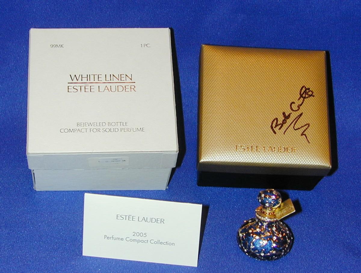Estee Lauder White Linen Bejeweled Bottle Solid Perfume Compact Signed By Bob Conte Lot 9
