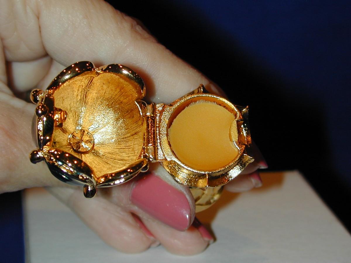 All compacts have been cabinet displayed and are full or almost full of perfume (see photos) - any that are well used will be noted. We cannot guarantee the perfume quality as solid perfume changes/shrinks/discolors over time (see photos). The compacts are photographed with what they come with (* If the box is shown , the box is included - if not, not included). We have examined each one and any obvious flaws will be noted. We offer nationwide shipping - see terms & conditions section. Never a buyers premium, credit card fee, or reserve. All items start at just $10.