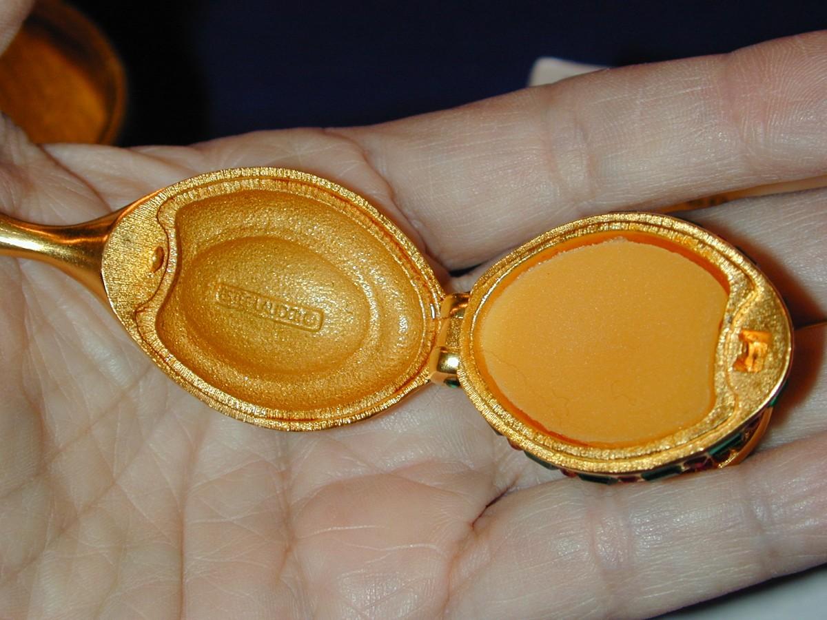 All compacts have been cabinet displayed and are full or almost full of perfume (see photos) - any that are well used will be noted. We cannot guarantee the perfume quality as solid perfume changes/shrinks/discolors over time (see photos). The compacts are photographed with what they come with (* If the box is shown , the box is included - if not, not included). We have examined each one and any obvious flaws will be noted. We offer nationwide shipping - see terms & conditions section. Never a buyers premium, credit card fee, or reserve. All items start at just $10.