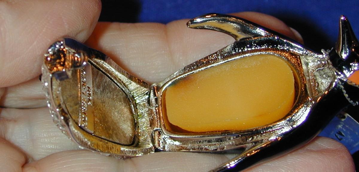 All compacts have been cabinet displayed and are full or almost full of perfume (see photos) - any that are well used will be noted. We cannot guarantee the perfume quality as solid perfume changes/shrinks/discolors over time (see photos). The compacts are photographed with what they come with (* If the box is shown , the box is included - if not, not included). We have examined each one and any obvious flaws will be noted. We offer nationwide shipping - see terms & conditions section. Never a buyers premium, credit card fee, or reserve. All items start at just $10.