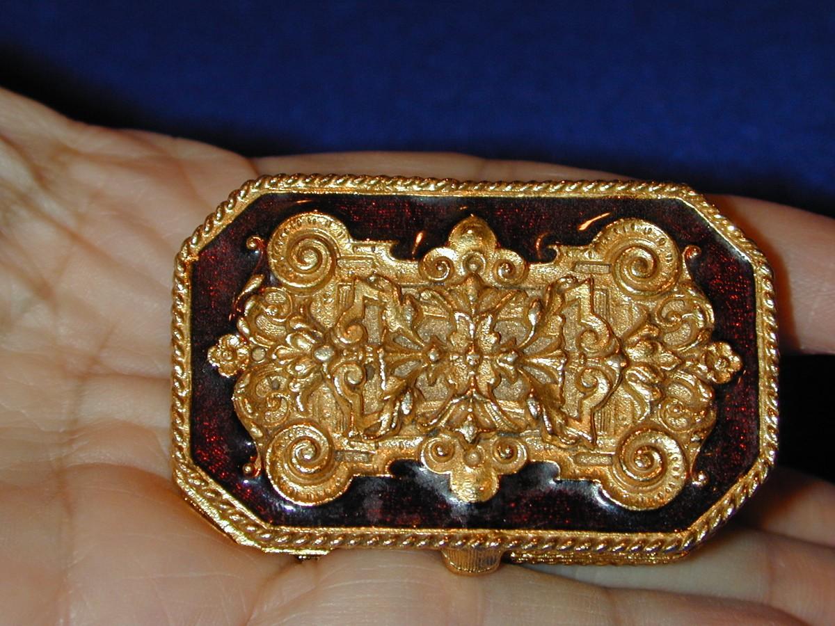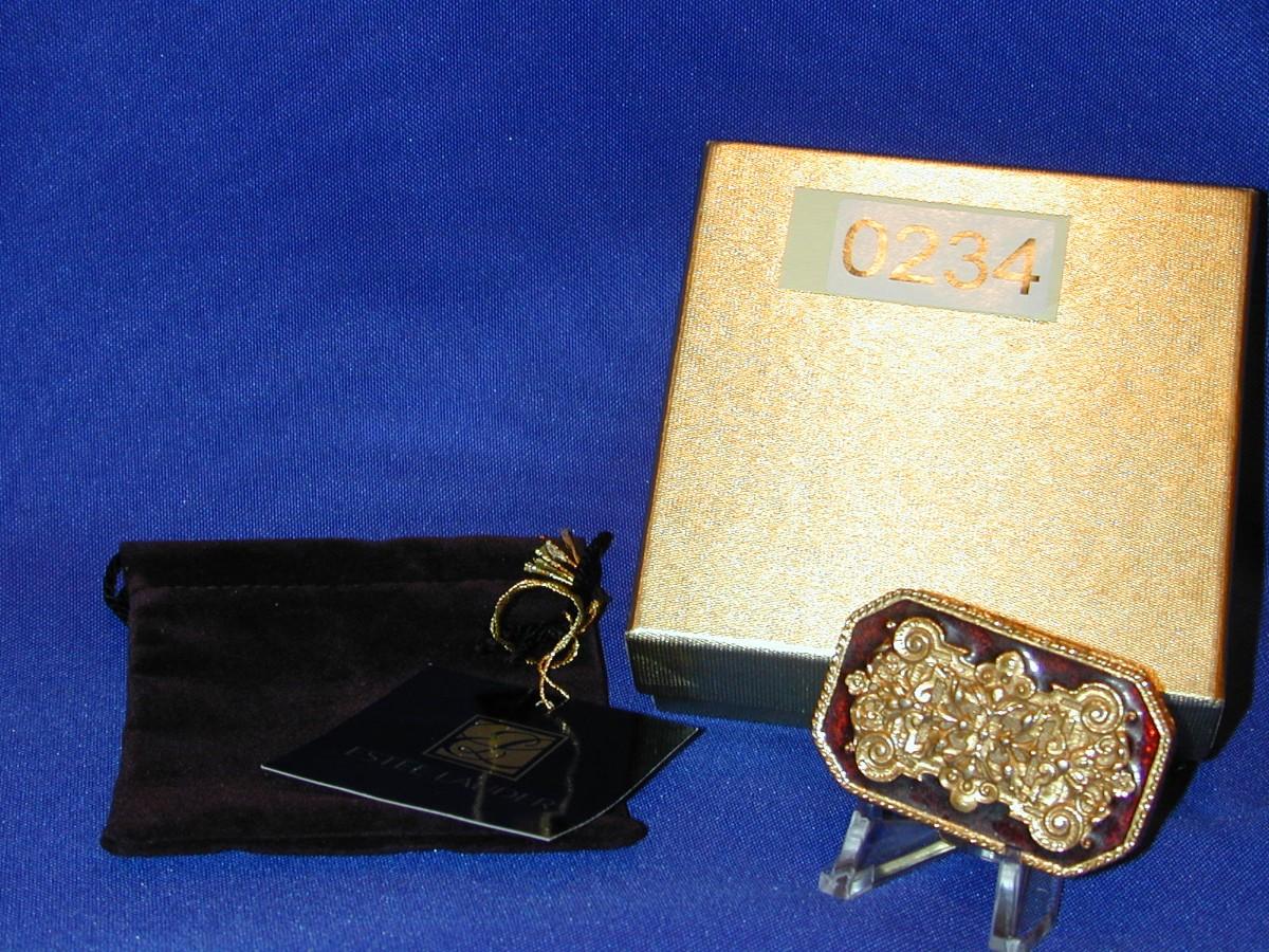 Estee Lauder Youth Dew Ornate Gold Scrolls Enamel Solid Perfume Compact Lot 234