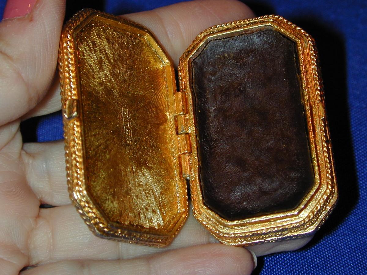 All compacts have been cabinet displayed and are full or almost full of perfume (see photos) - any that are well used will be noted. We cannot guarantee the perfume quality as solid perfume changes/shrinks/discolors over time (see photos). The compacts are photographed with what they come with (* If the box is shown , the box is included - if not, not included). We have examined each one and any obvious flaws will be noted. We offer nationwide shipping - see terms & conditions section. Never a buyers premium, credit card fee, or reserve. All items start at just $10.