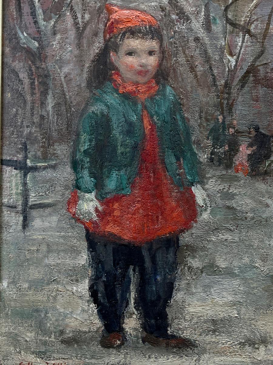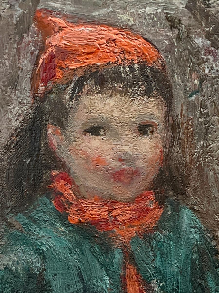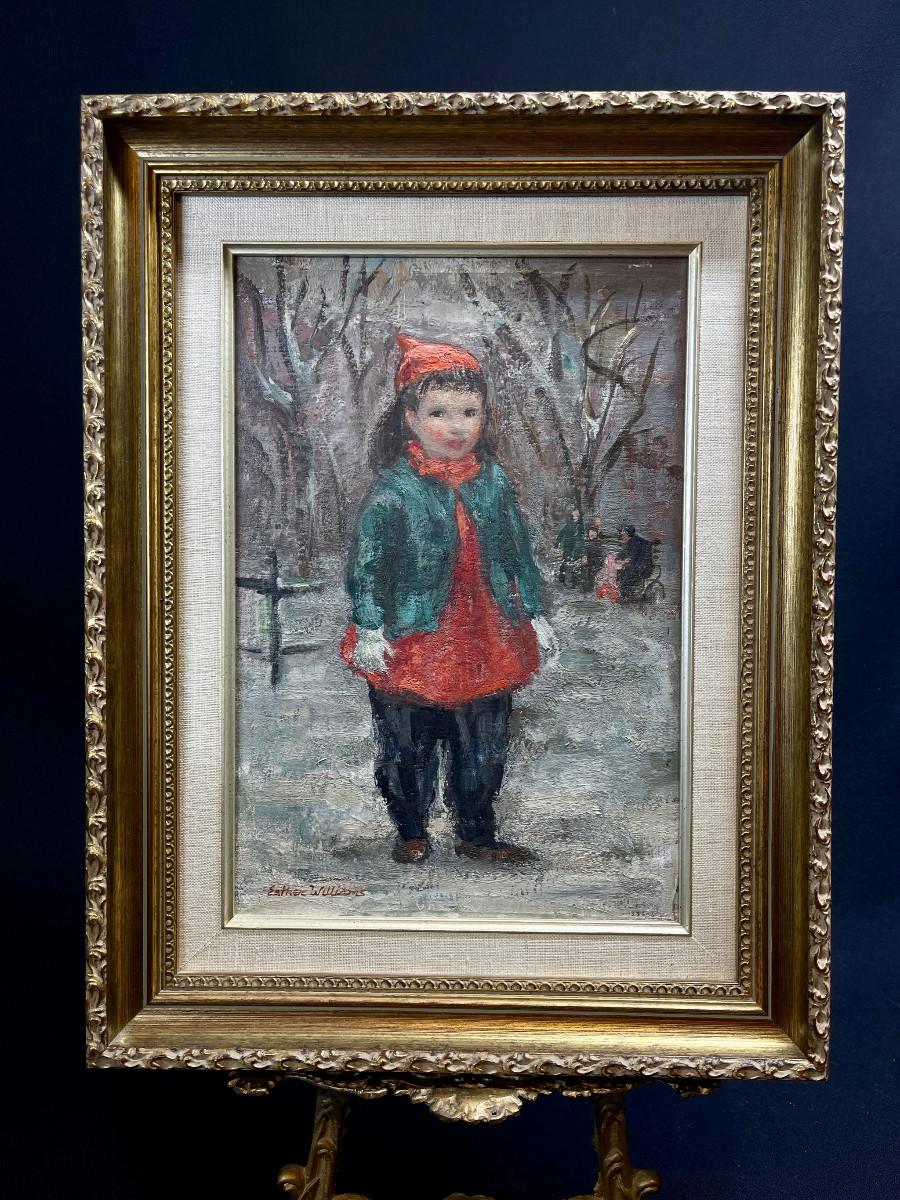 Charming young child with rosy cheeks - hard-to-come-by painting by Esther Williams (American 1907-1969) original oil on canvas