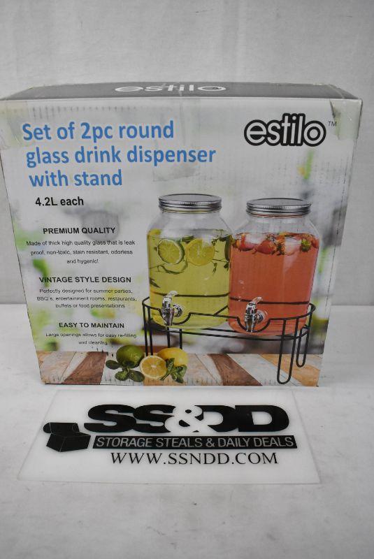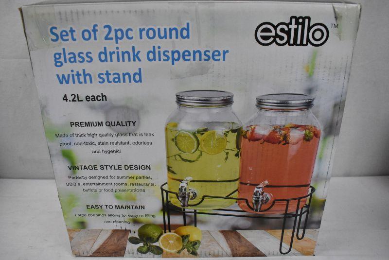 Estilo Glass Mason Jar Double Drink Dispenser Metal Stand, 1 Gallon Each - New