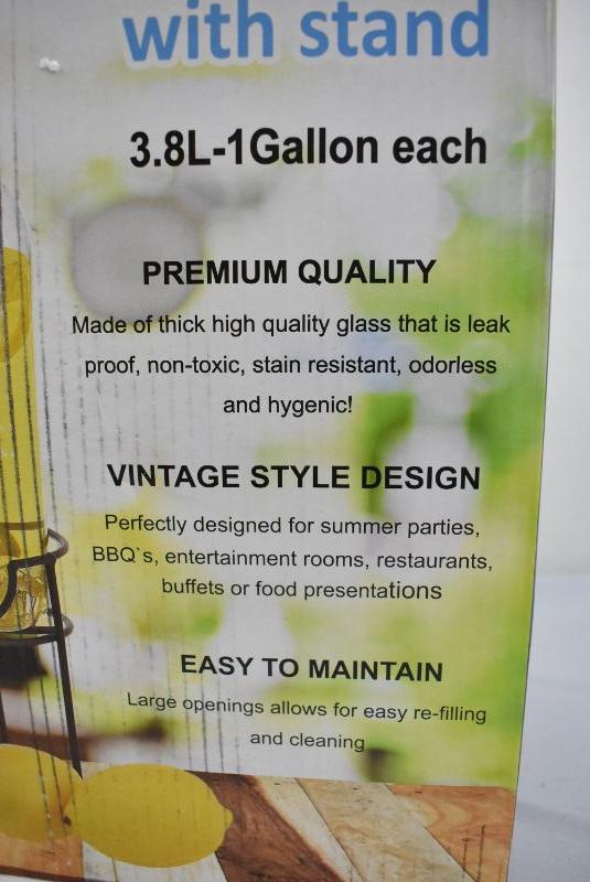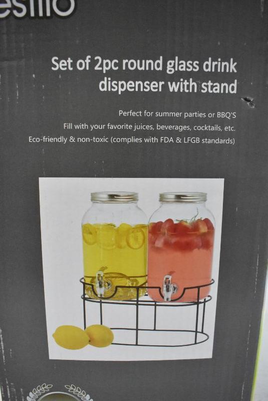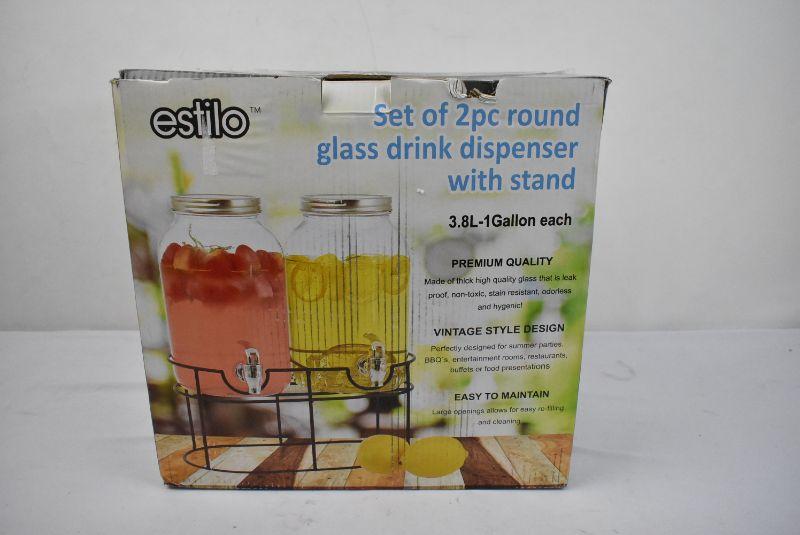 Estilo Set of 2 pc Round Glass Drink Dispenser with Stand, 1 gallon each - New