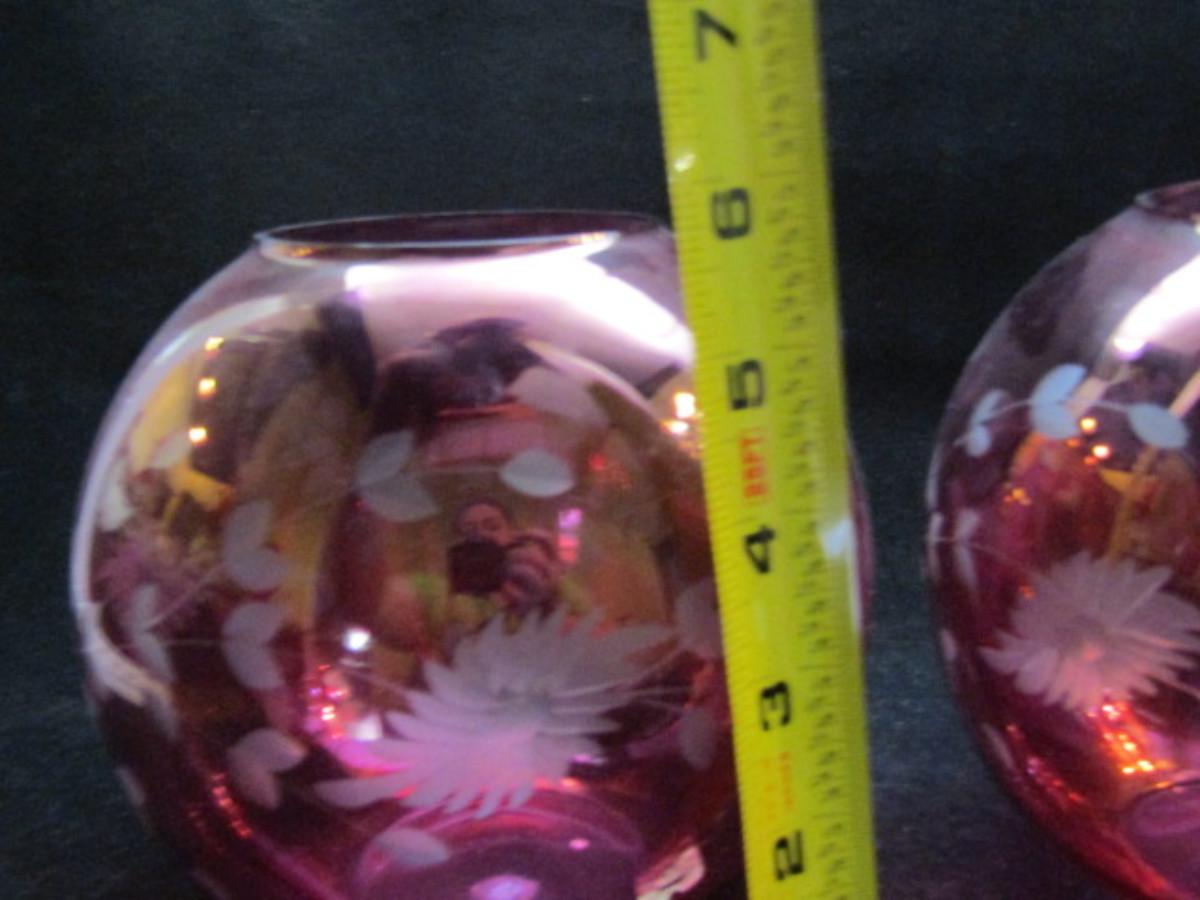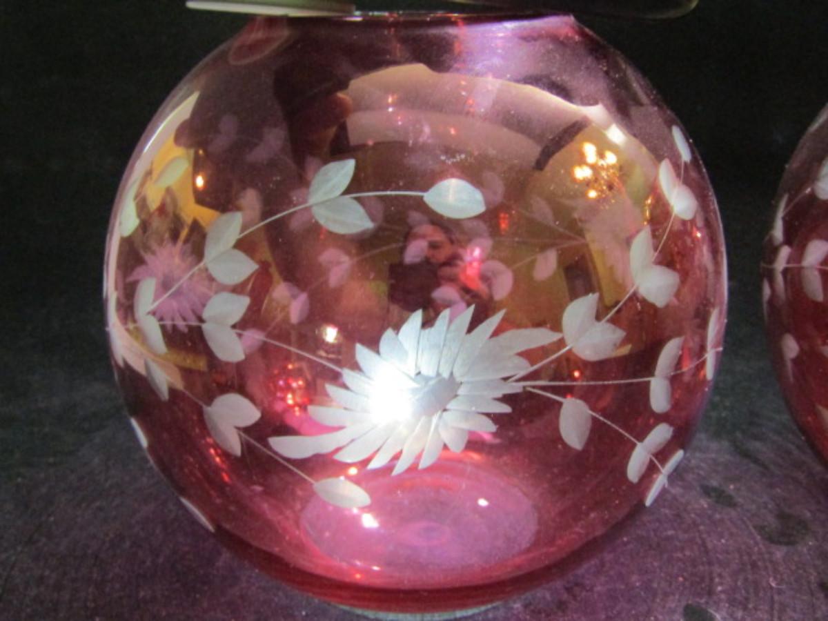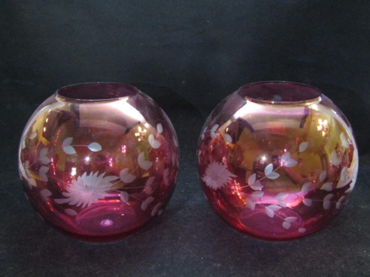 Etched Cranberry Glass Candle Holder Orbs (#188)