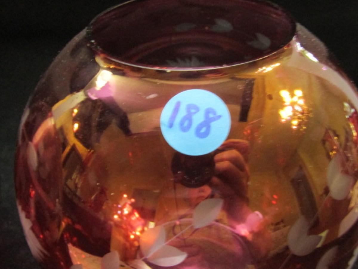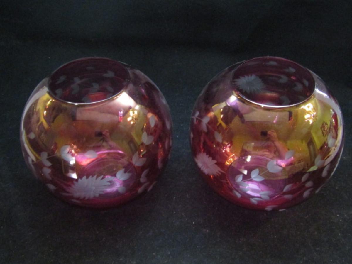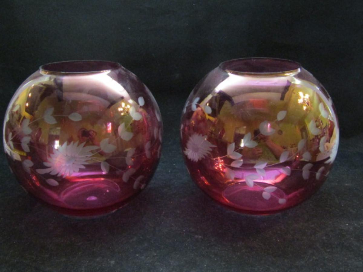 Etched Cranberry Glass Candle Holder Orbs (#188)