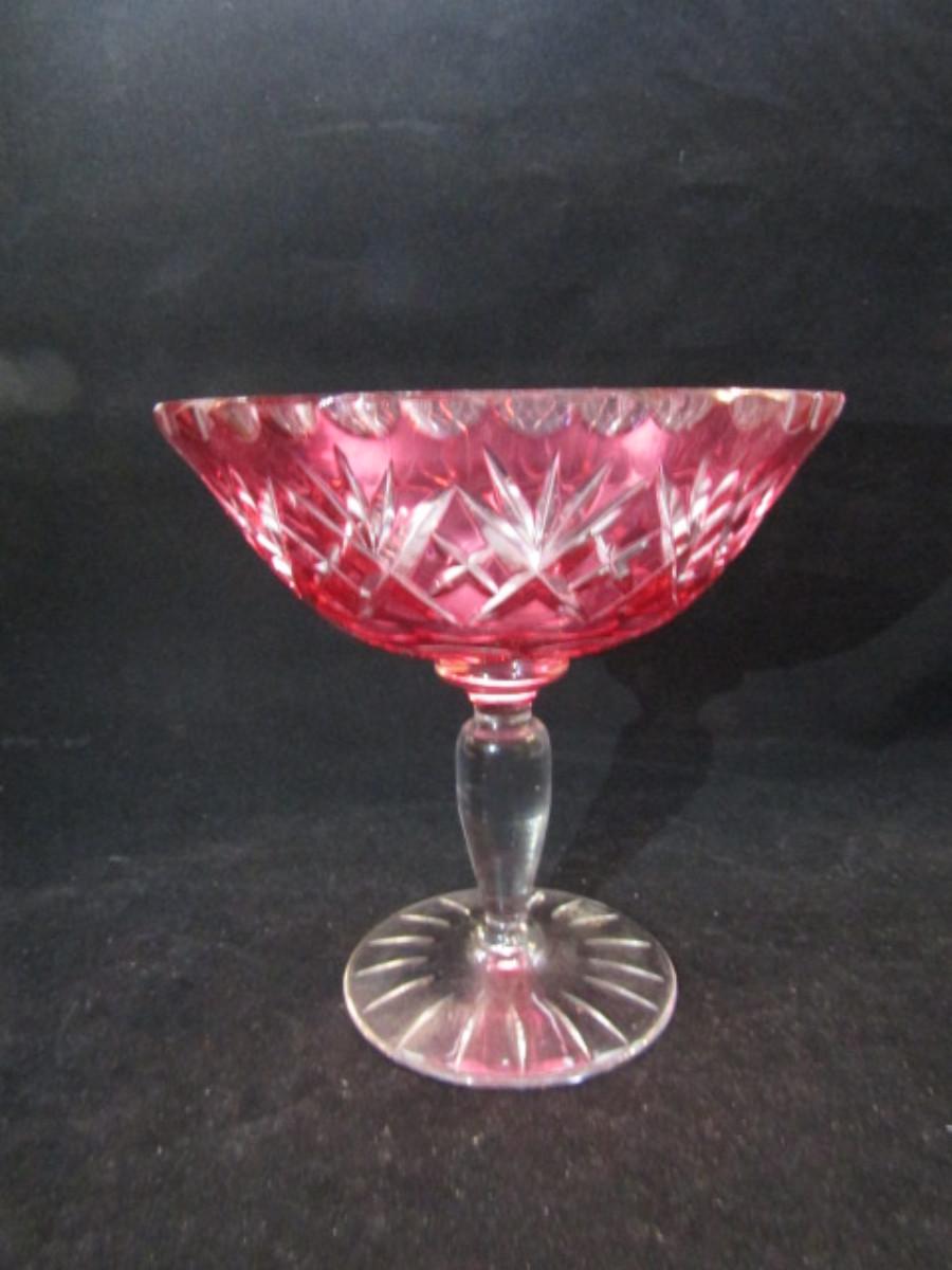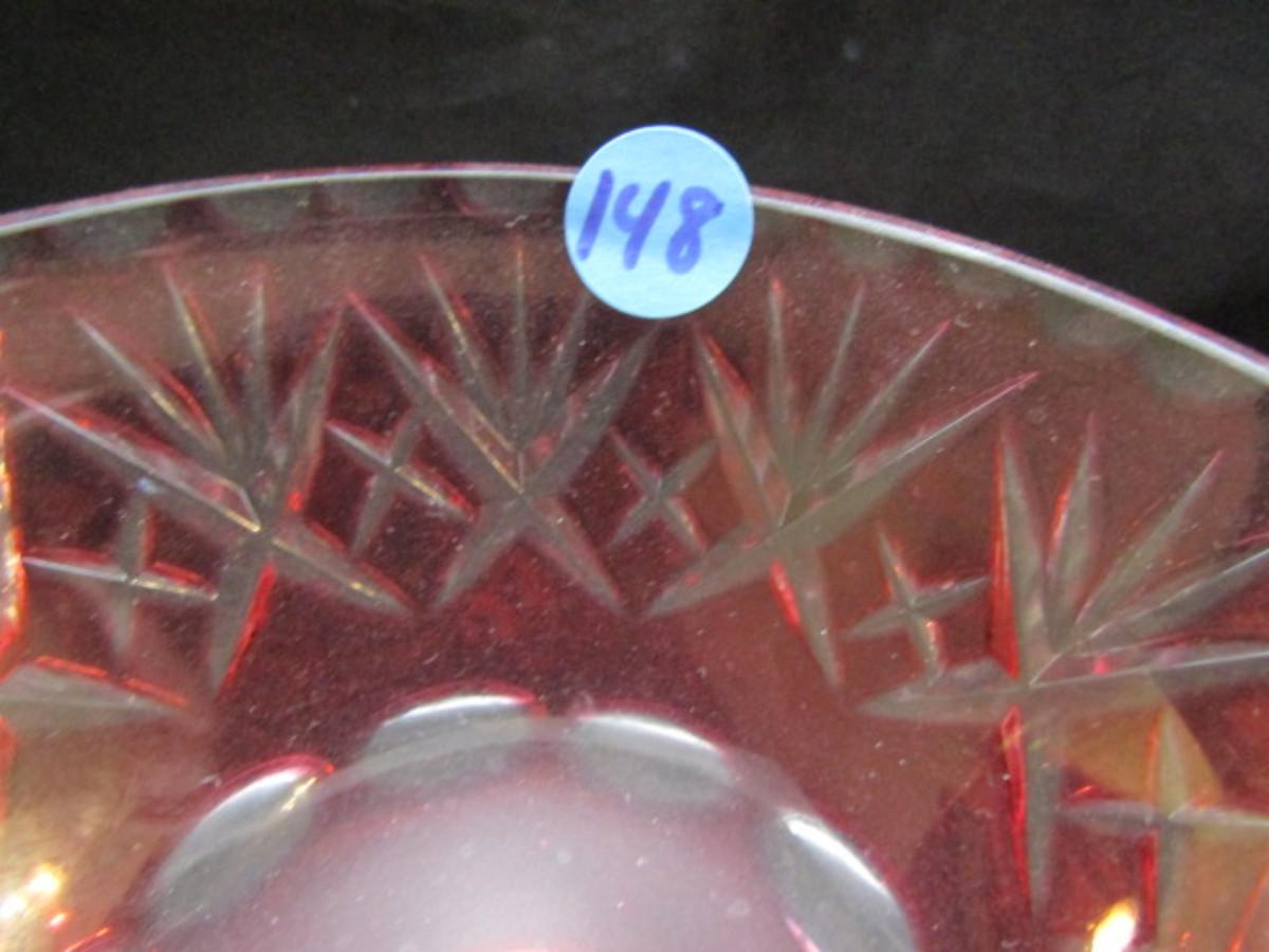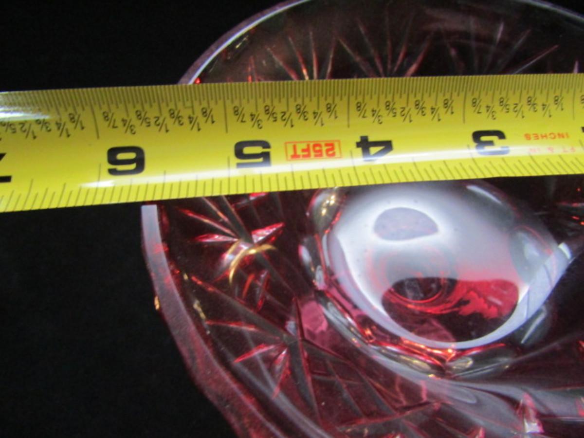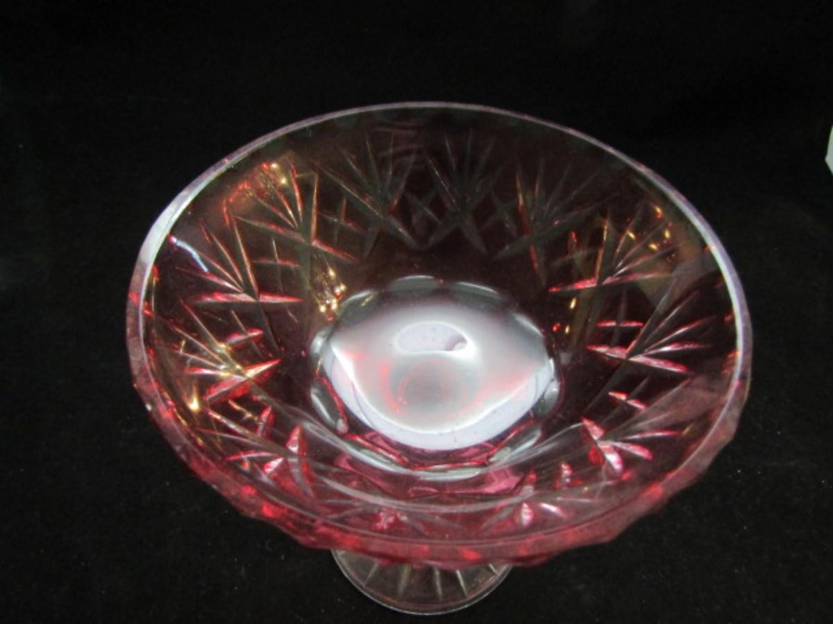 Etched Cranberry Glass Stemmed Bowl/Dish (#148)