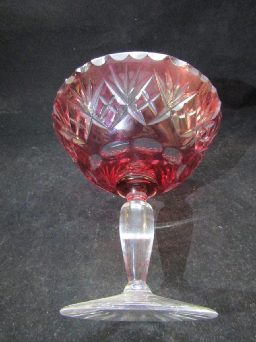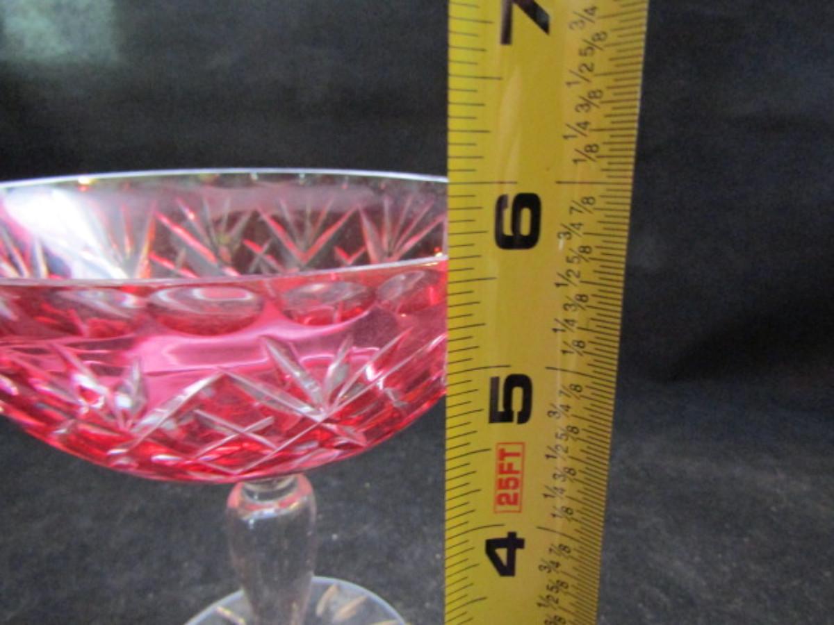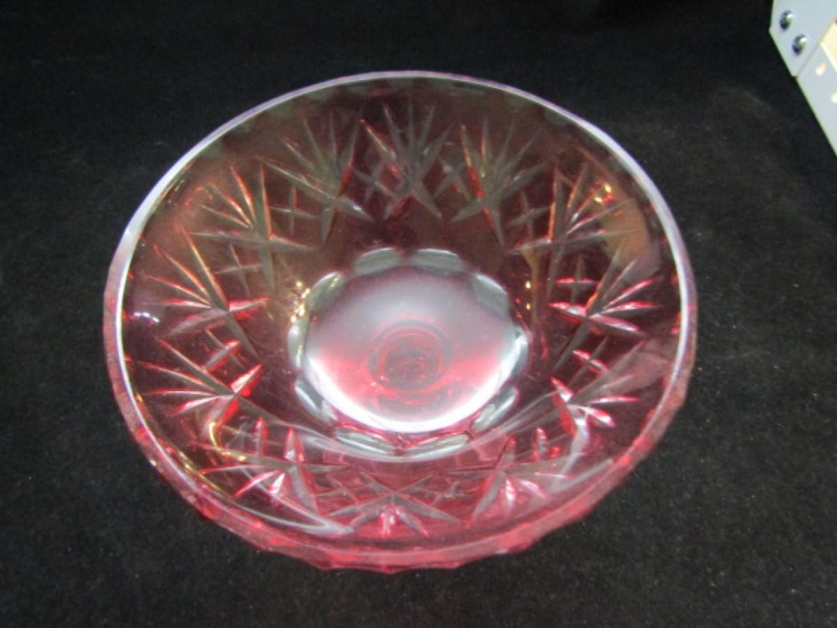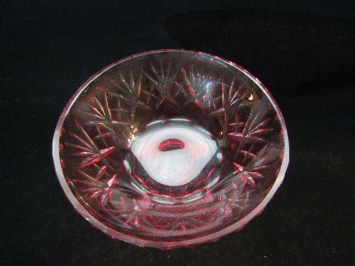Etched Cranberry Glass Stemmed Bowl/Dish (#148)