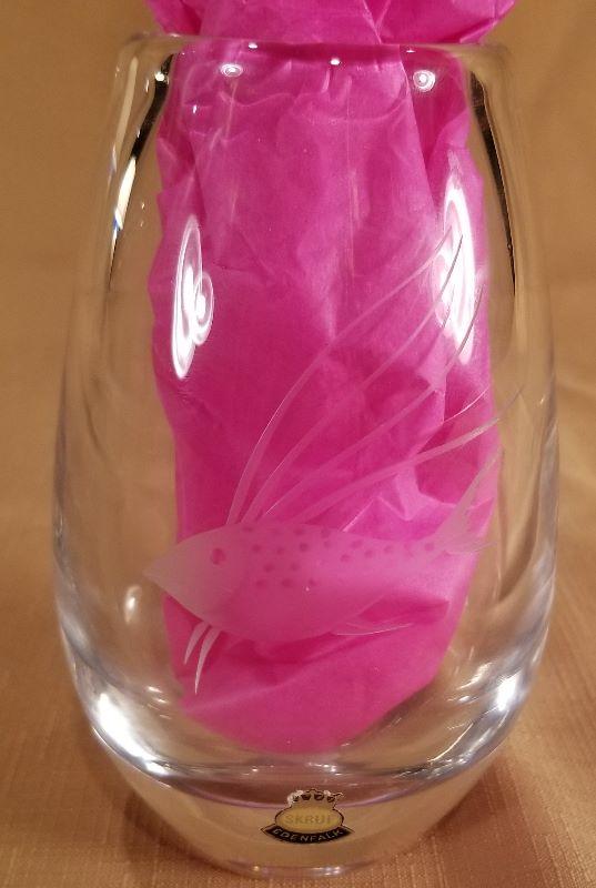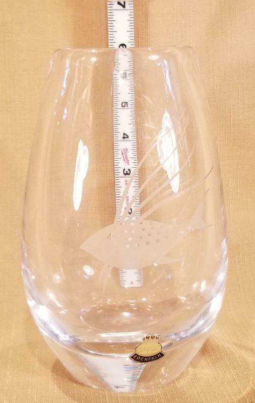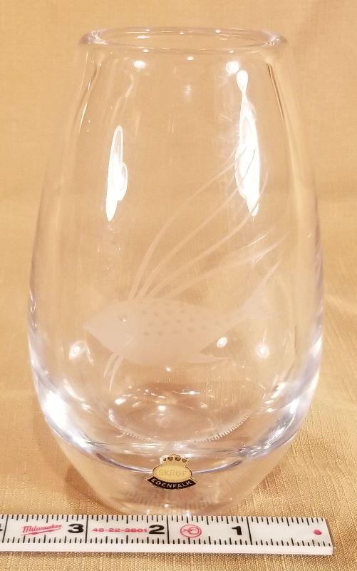 Elegant Etched Fish Vase. Very heavy and deeply etched. By Skruf Edenfalk.