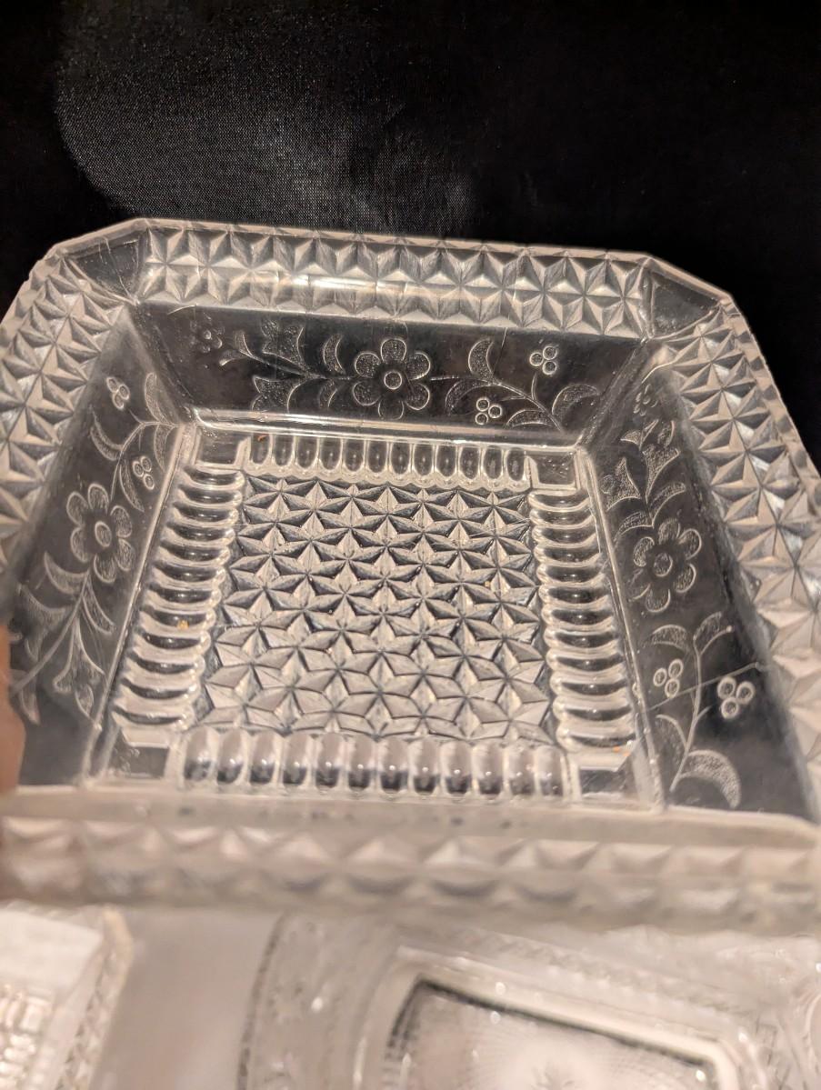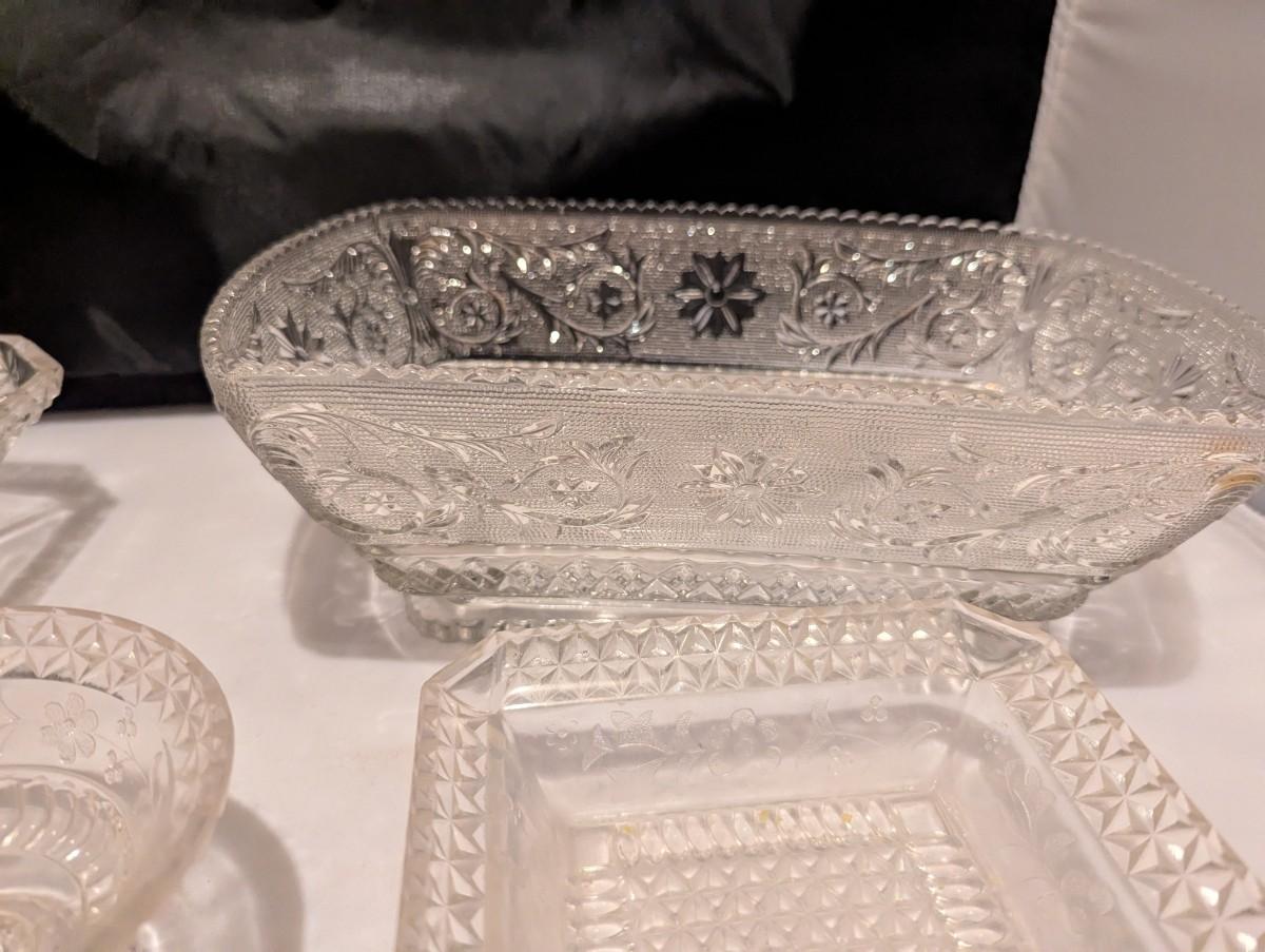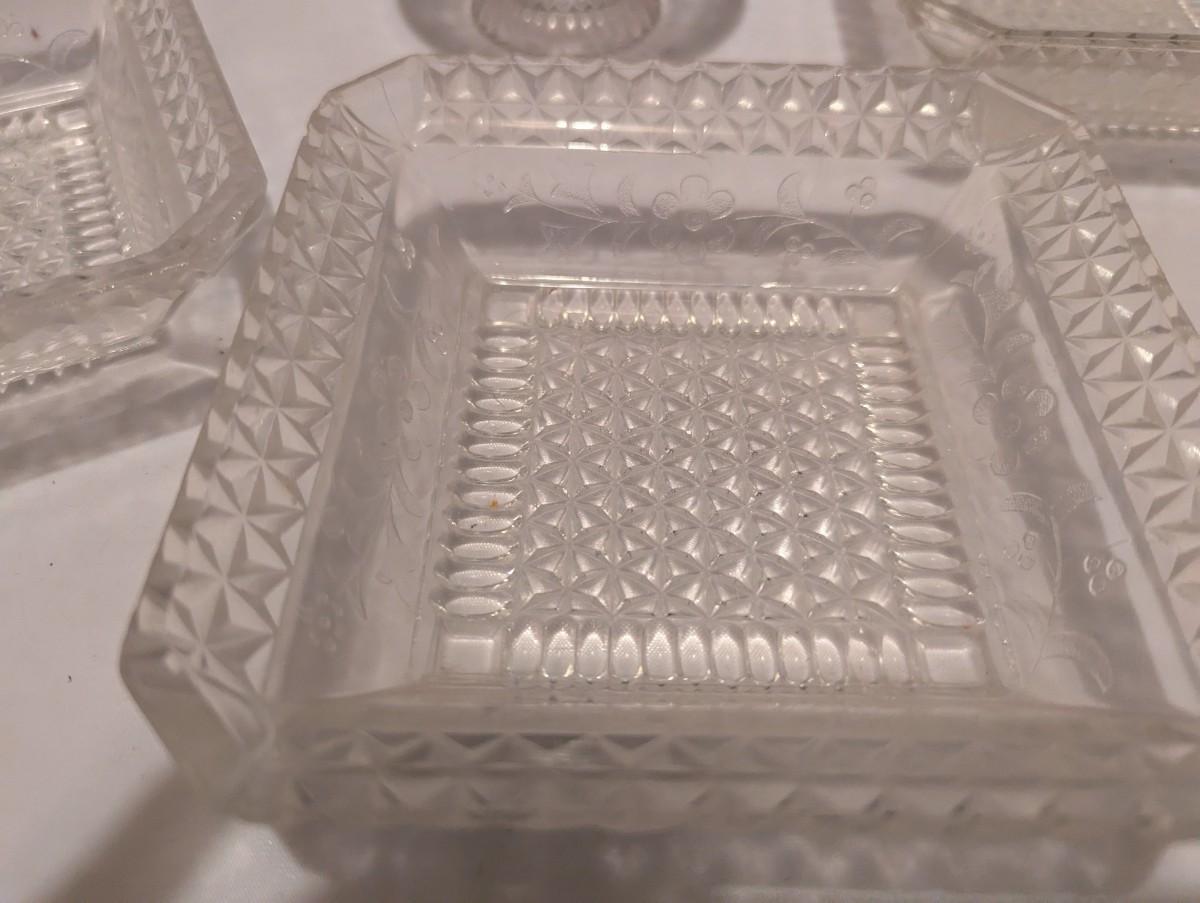 Etched Floral Design & Diamond Serving Dishes (B)
