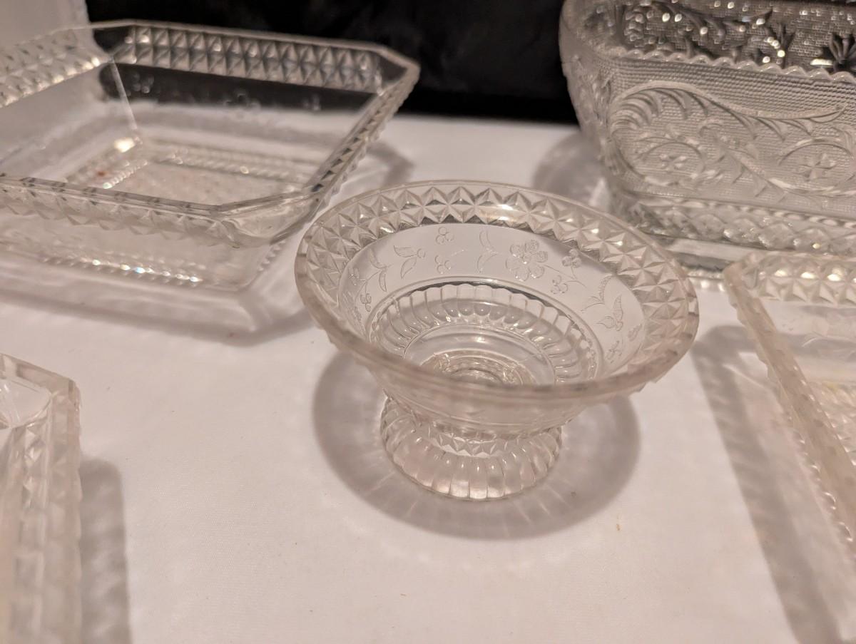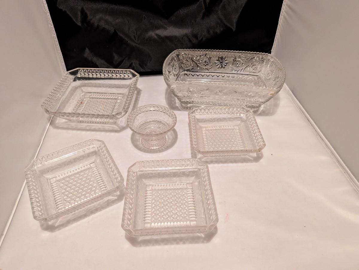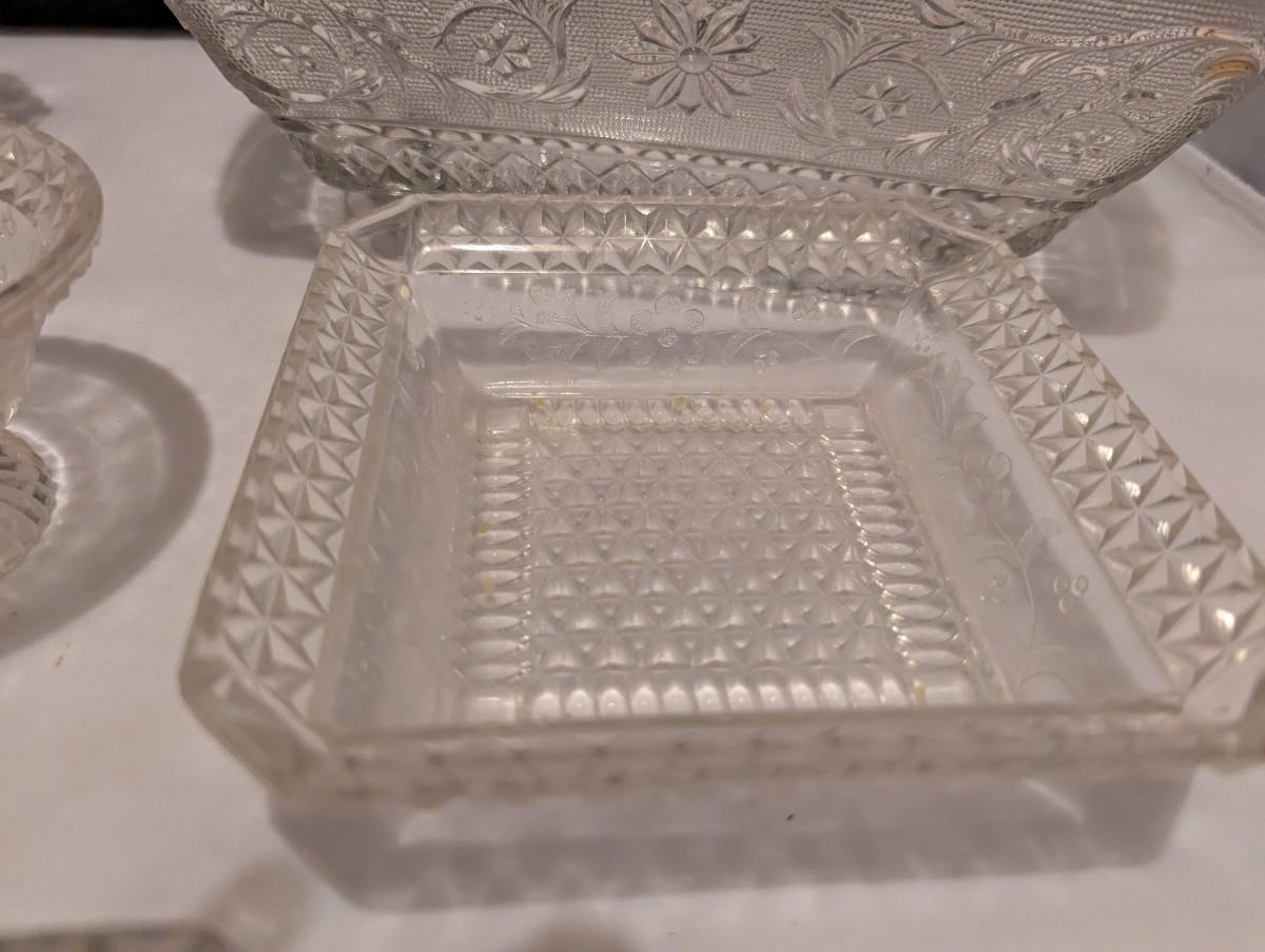 Etched Floral Design & Diamond Serving Dishes (B)
