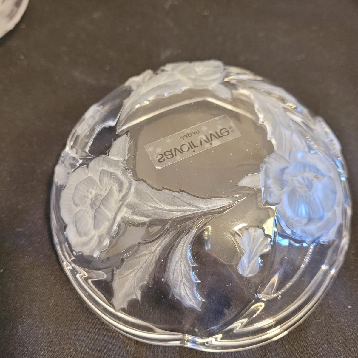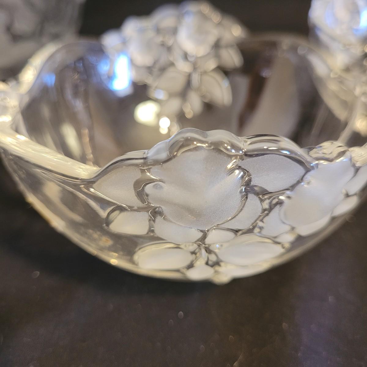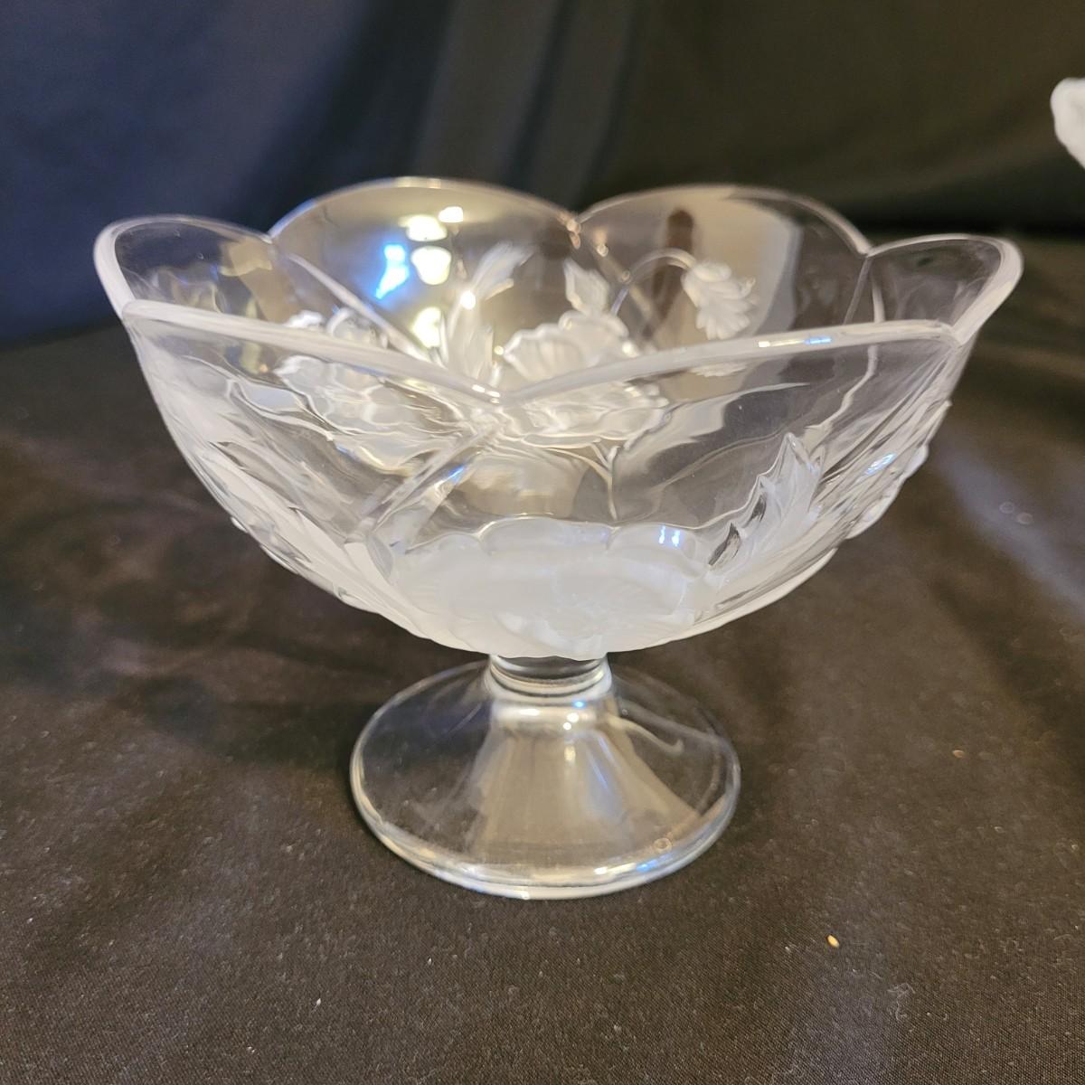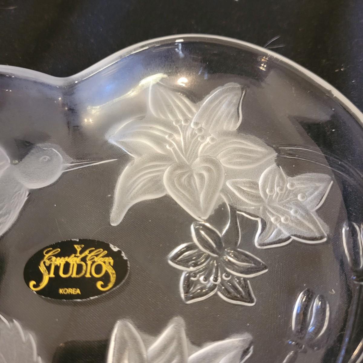This lot includes eight serving bowls and dishes, and three mugs. Each piece has a unique floral etched design with frosting, adding depth and character. Some items still have original stickers, will need light cleaning to remove them. Large punch bowl measures approximately 11"DIA x5"H. Shipping available. Shipping can be costly. We suggest calling our local UPS with dimensions and getting an estimate before bidding: (828) 252-6930.