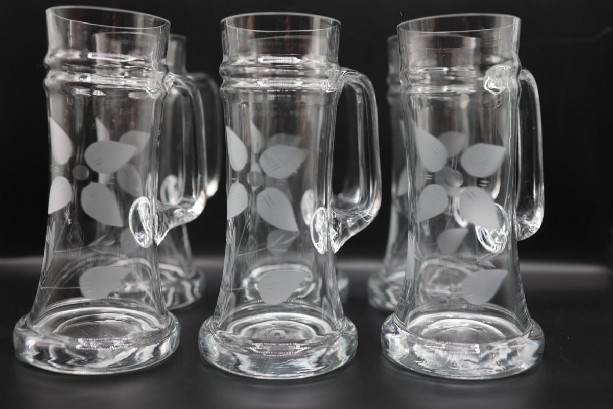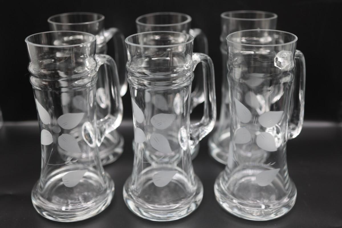 Etched Flower Large Glass Mugs - Set of 6