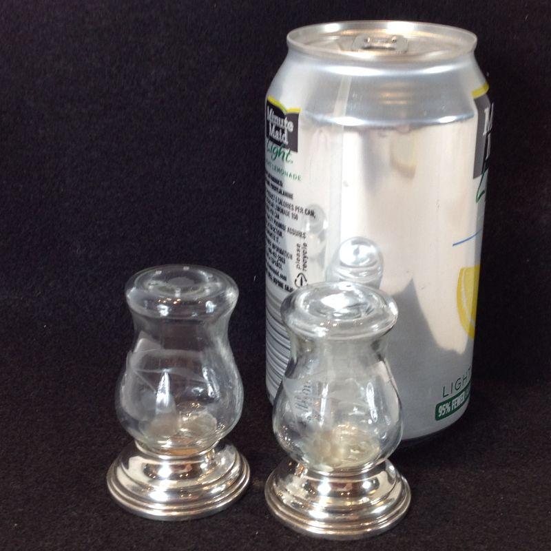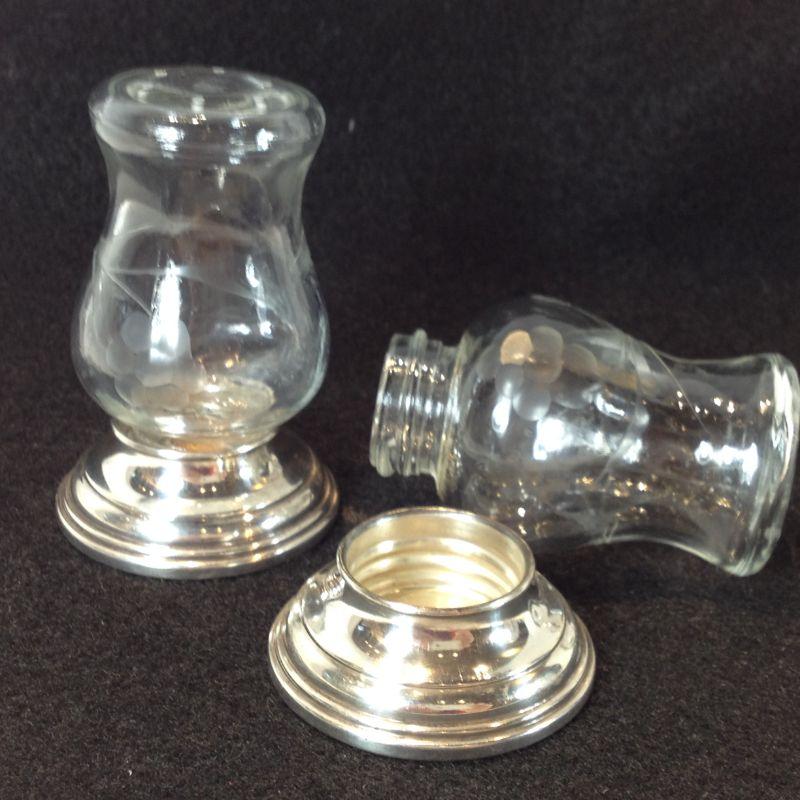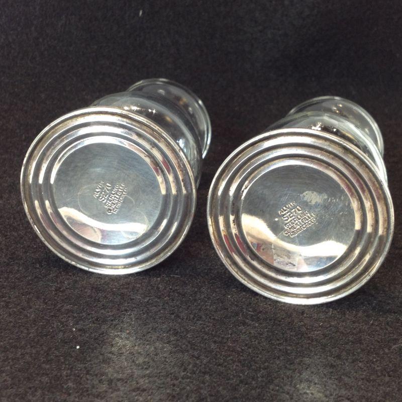 These sterling weighted-bottom shakers are marked Alvim #9270. The weighted bases (not including glass) are .694ozt and .710ozt. These are very nice. The starting bid is $10.00.