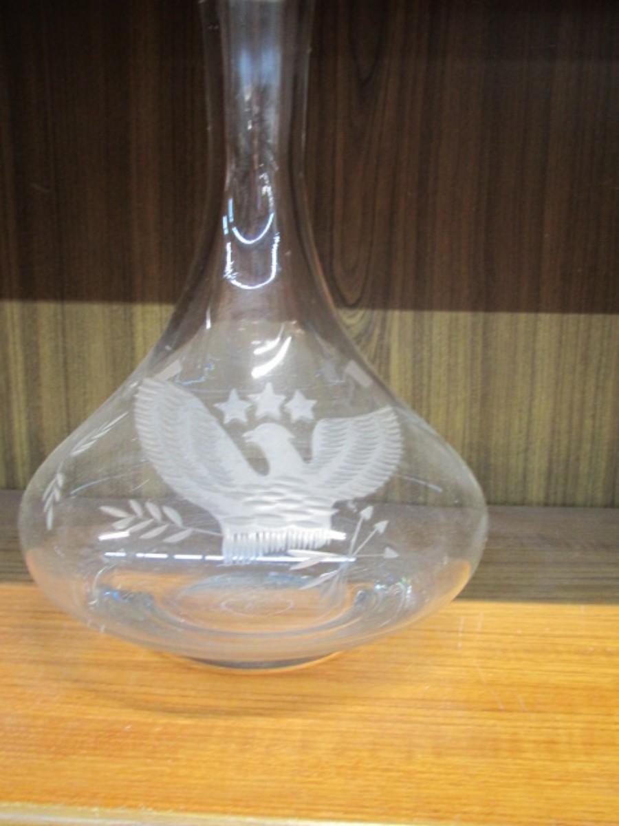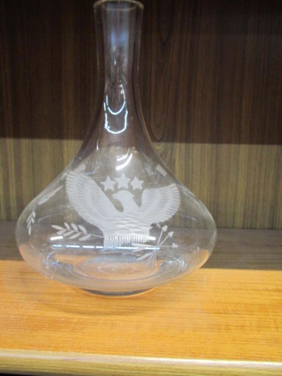 Etched Glass Decanter With Eagle Design Approx 9 3/4" Tall