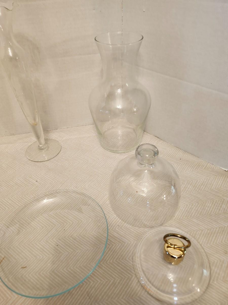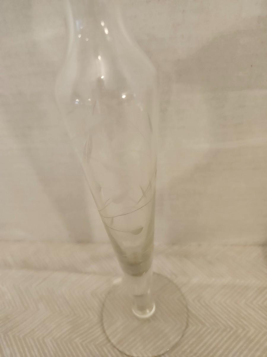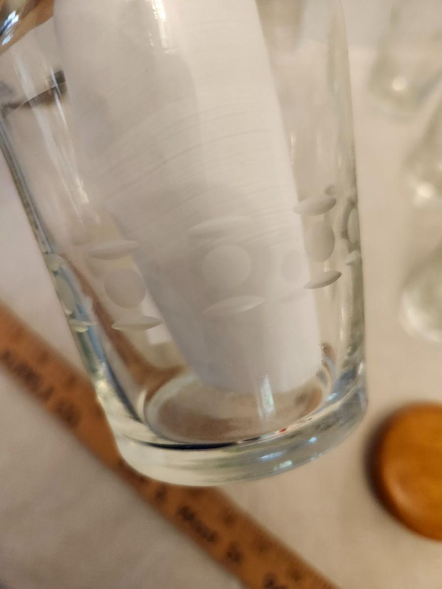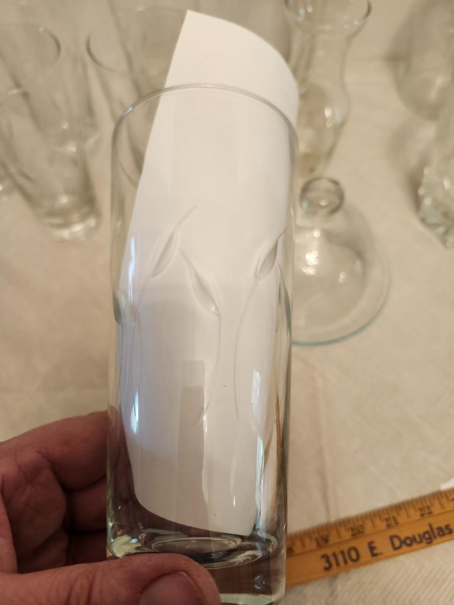 Etched Glassware lot Six Etched Tumbler, ice bucket, vase, butter dish etc.