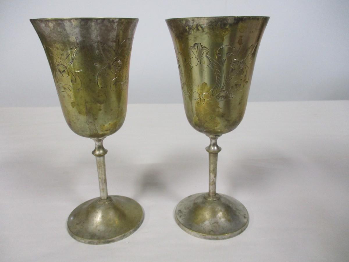 Pair of Matching Etched Goblets
