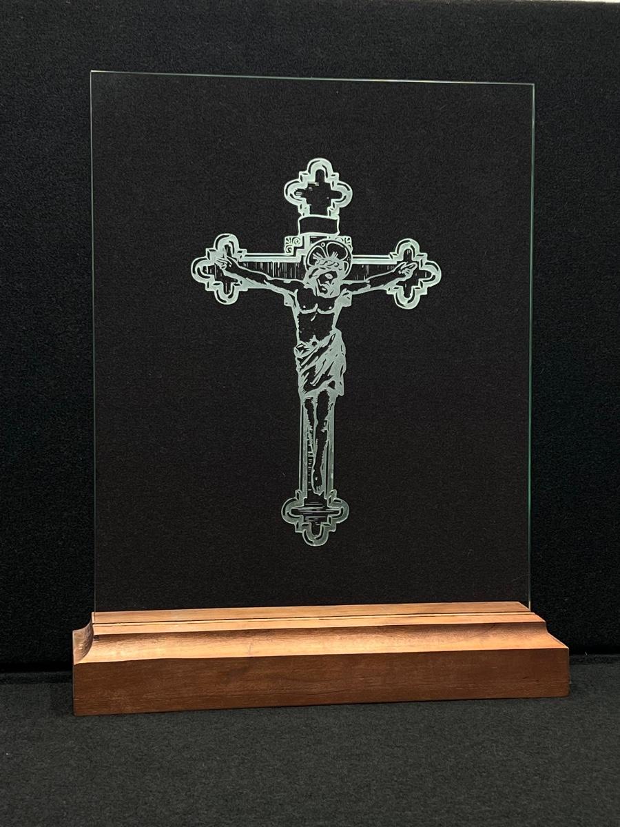 Etched Glass Of Jesus On Cross
