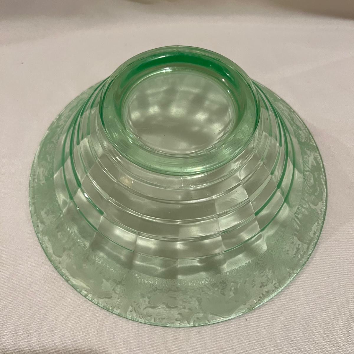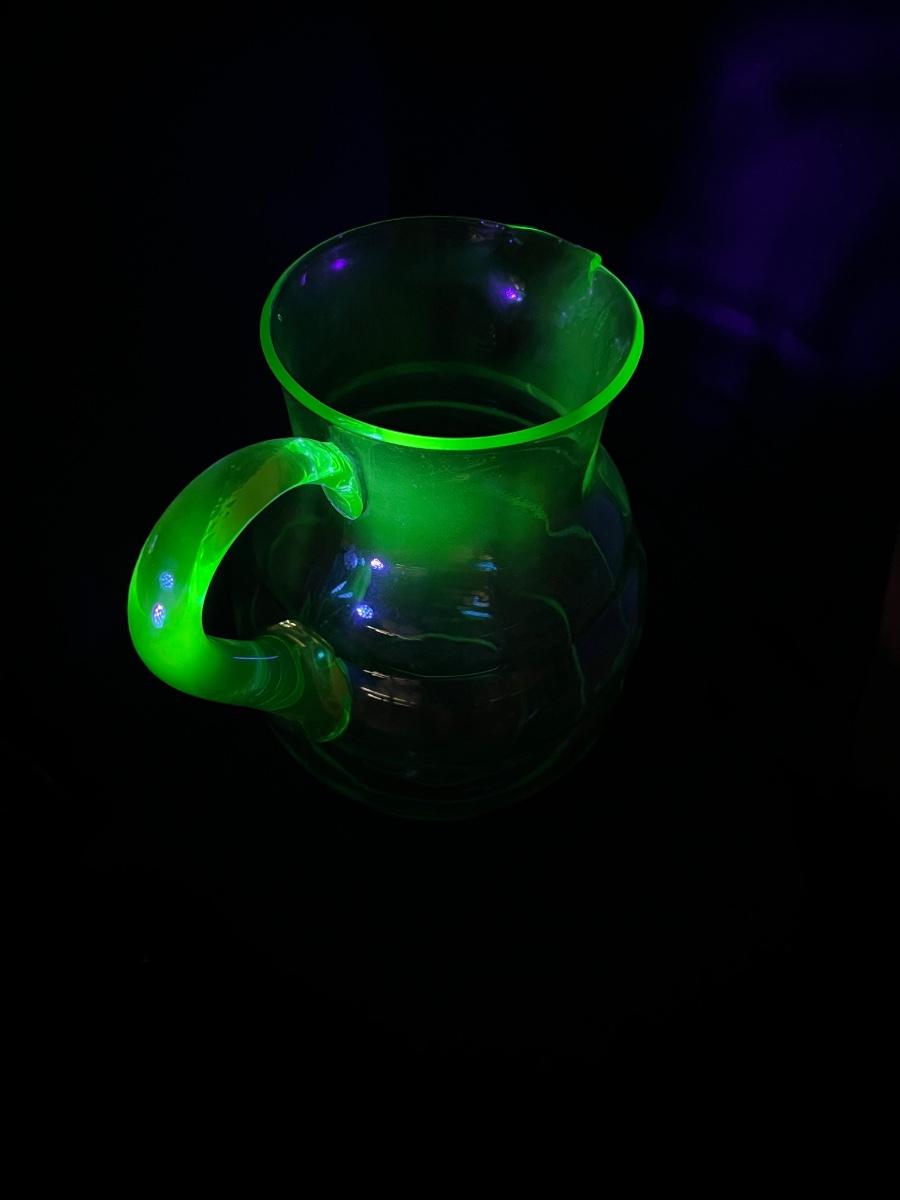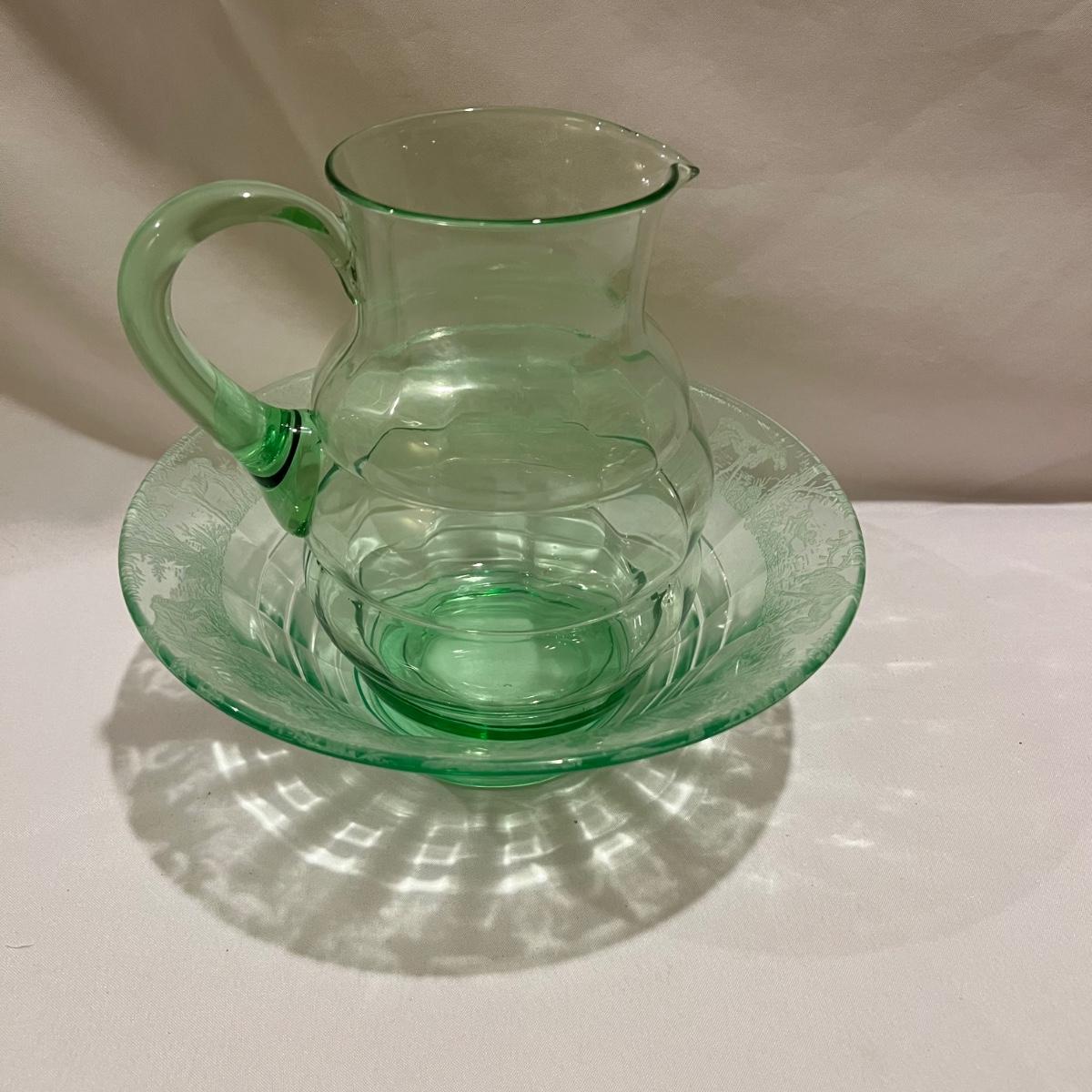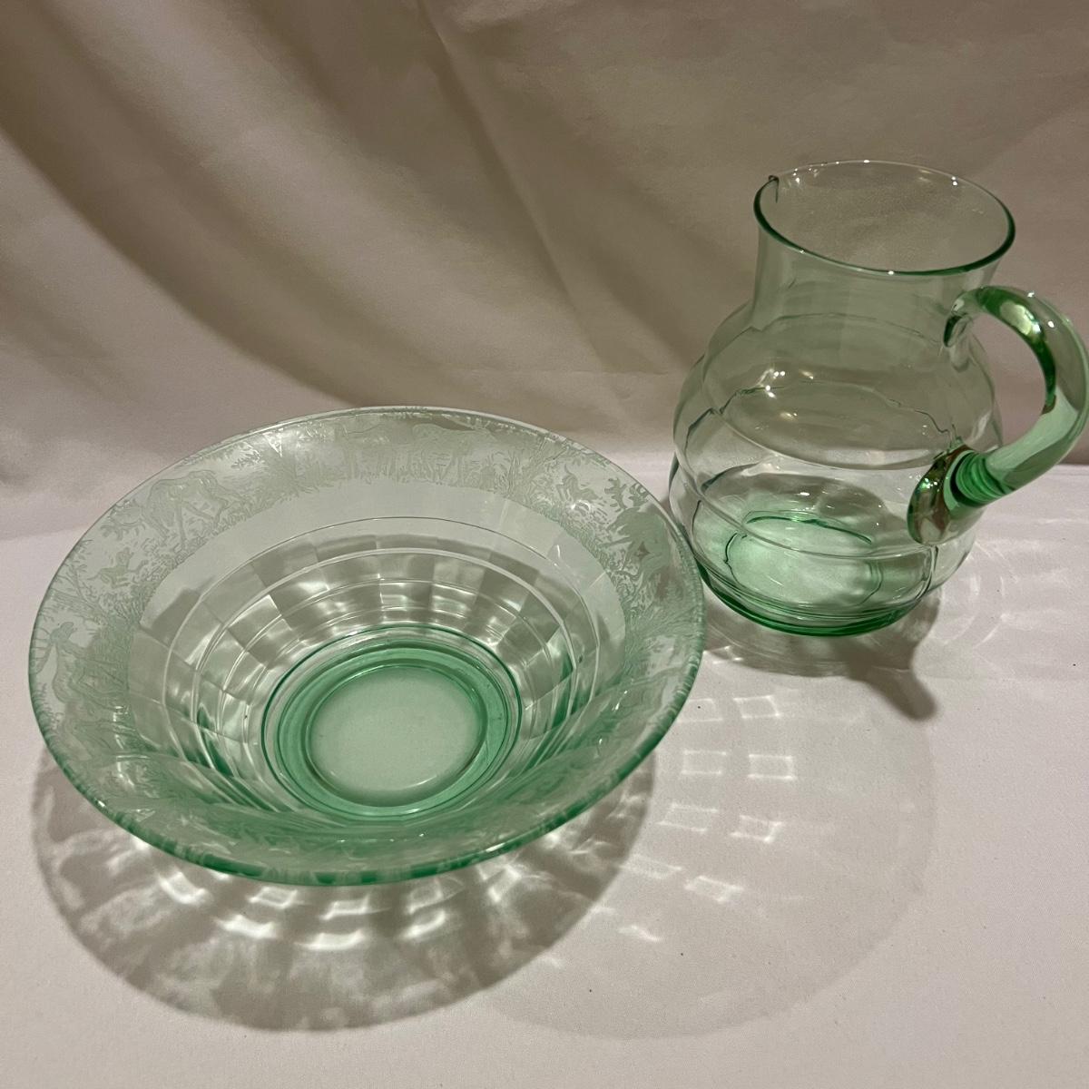 Etched Uranium Glass Bowl & Pitcher (K-MK)