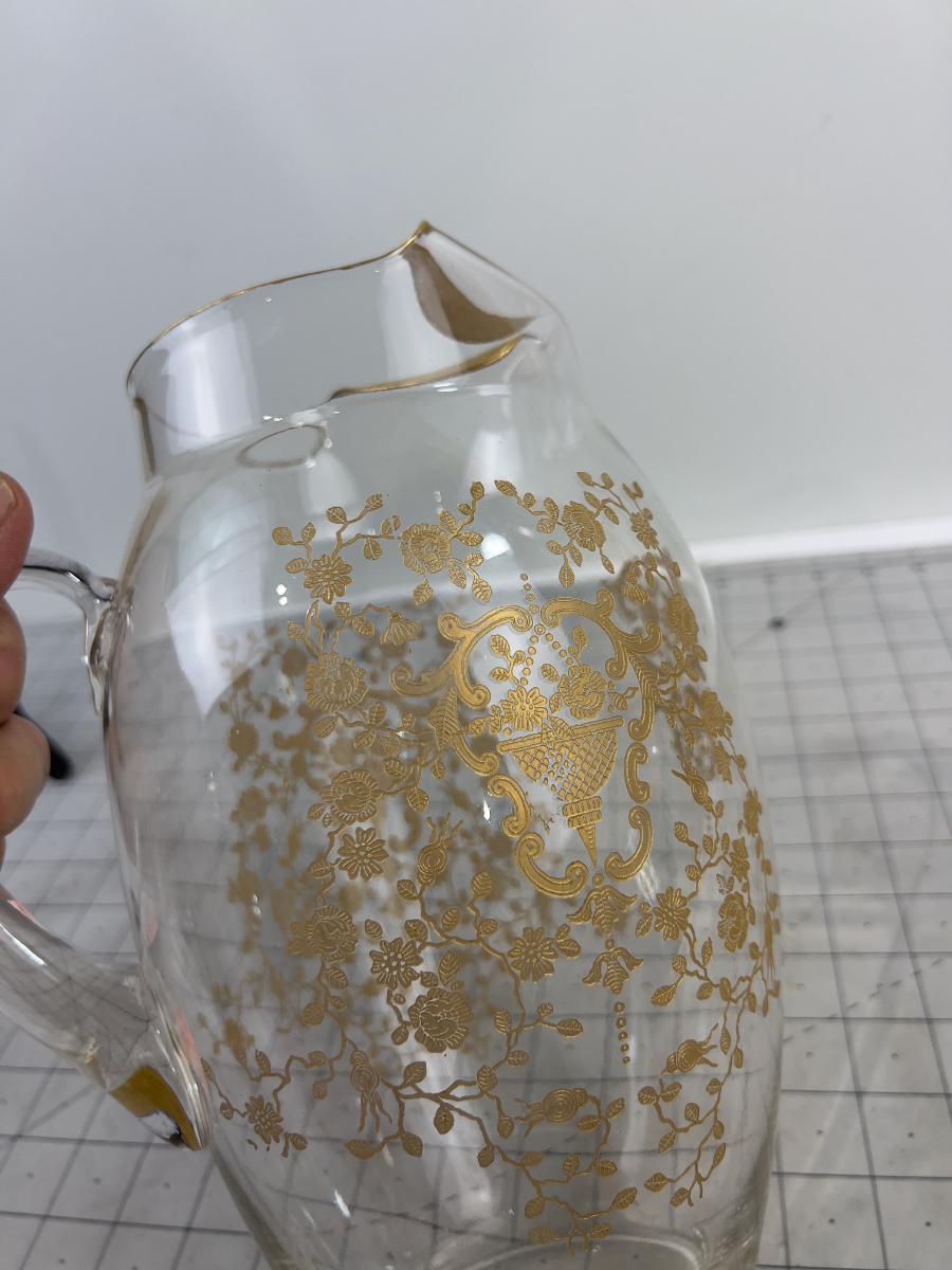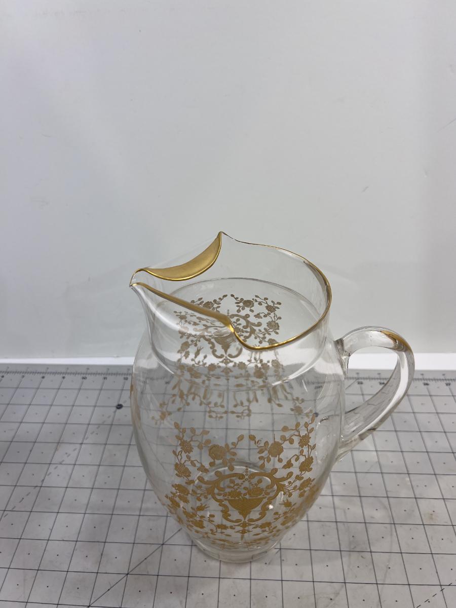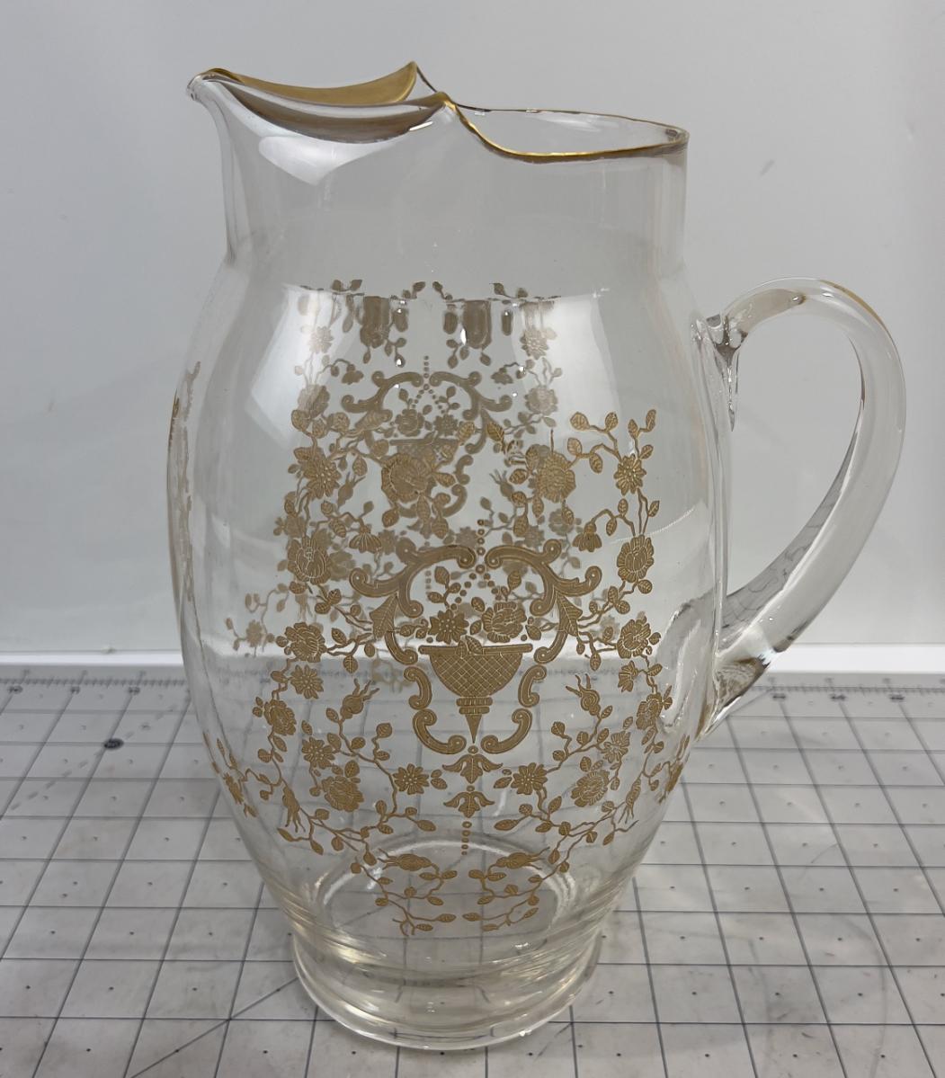 Etched with Gold Trim Design Water Pitcher - Lovely!