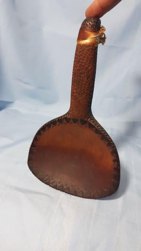 Etched wood primitive butter paddle, 9"