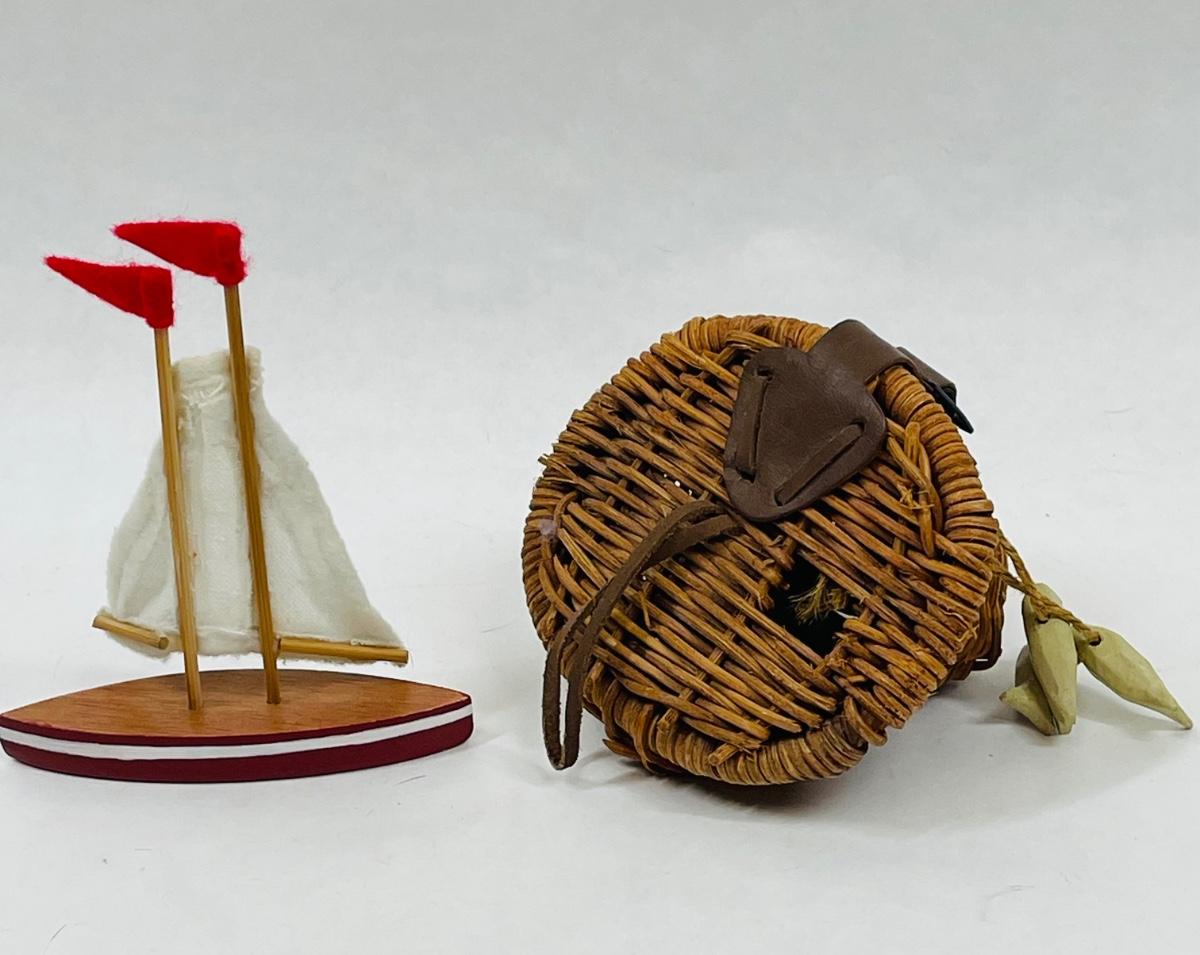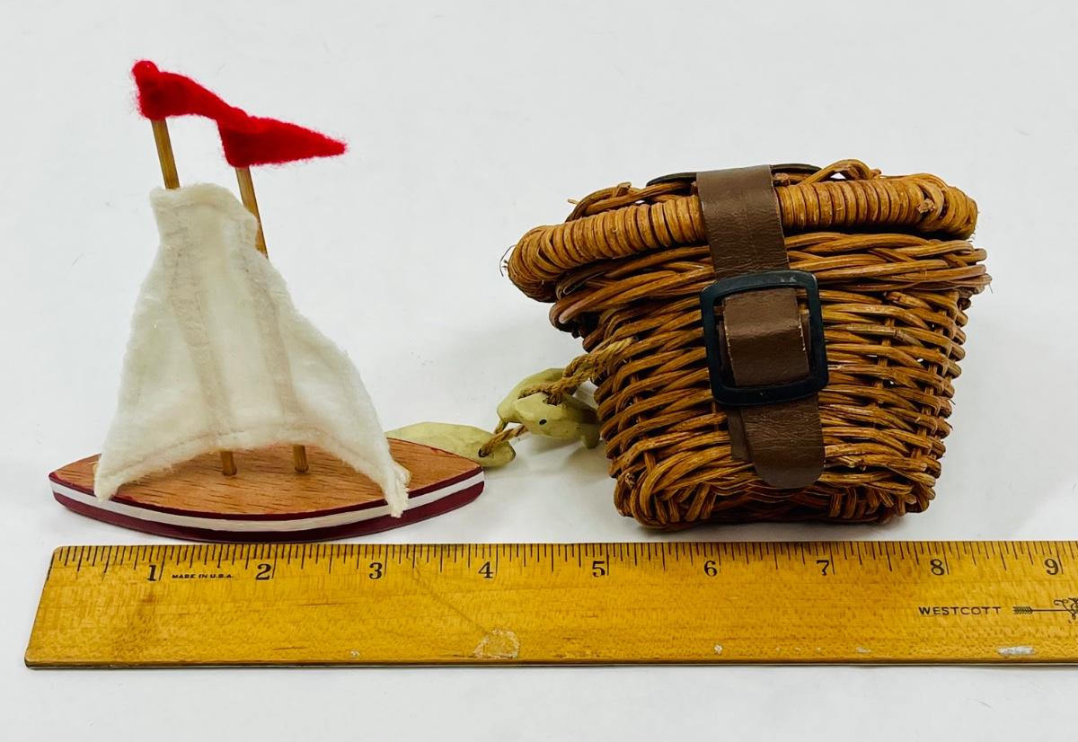 Baby Doll Toys Display Accessory Pieces - sail boat and fishing basket