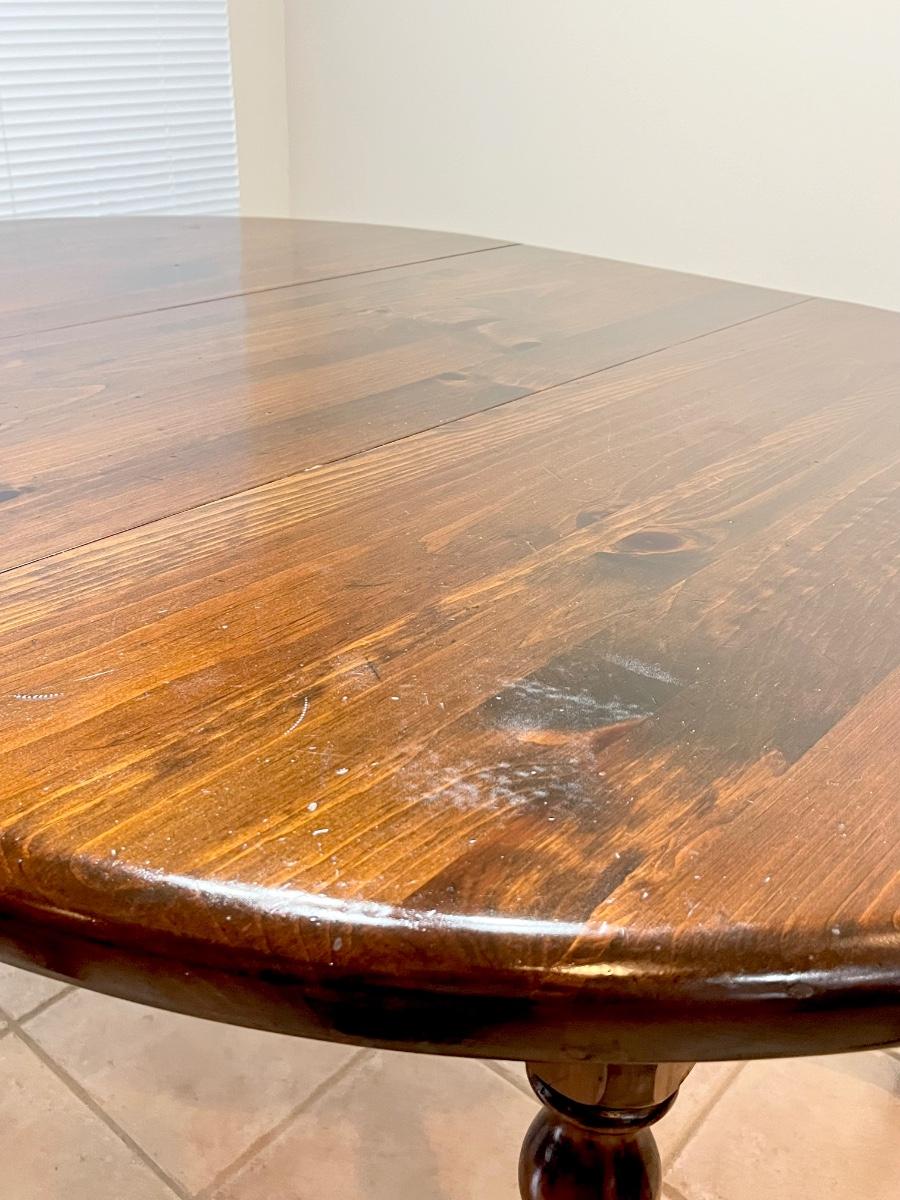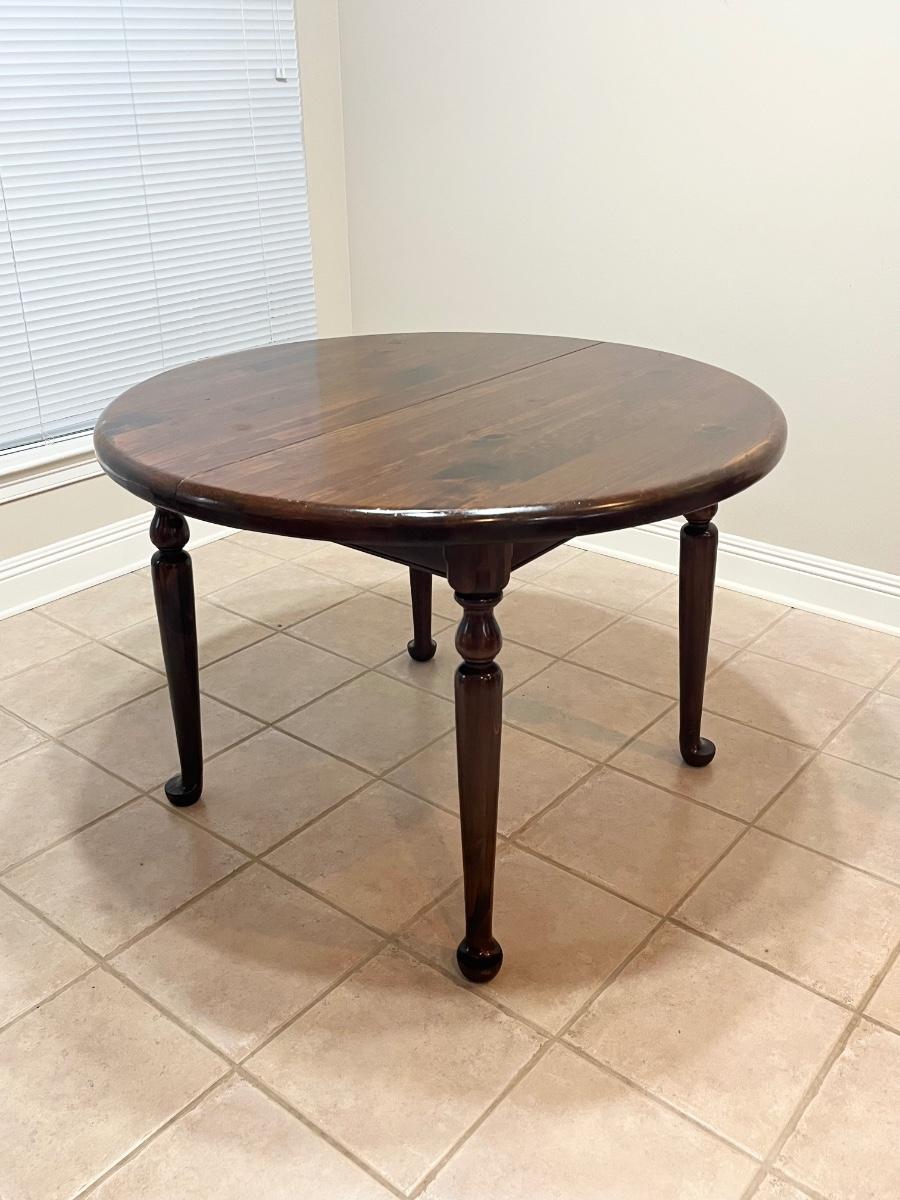 Table 29” H x 42” Round x With 15” ext. 57” W ~ Chairs 34” H x 17 1/4” W x 18” D ~ Table is a classic and has dents and scratches as seen in photos but is extremely sturdy