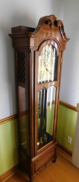 Ethan Allen 1776 Series Grandfather Case Clock 81" x 19" With Key and Gloves