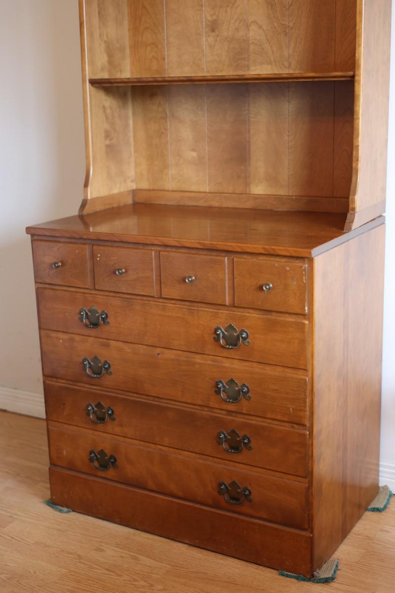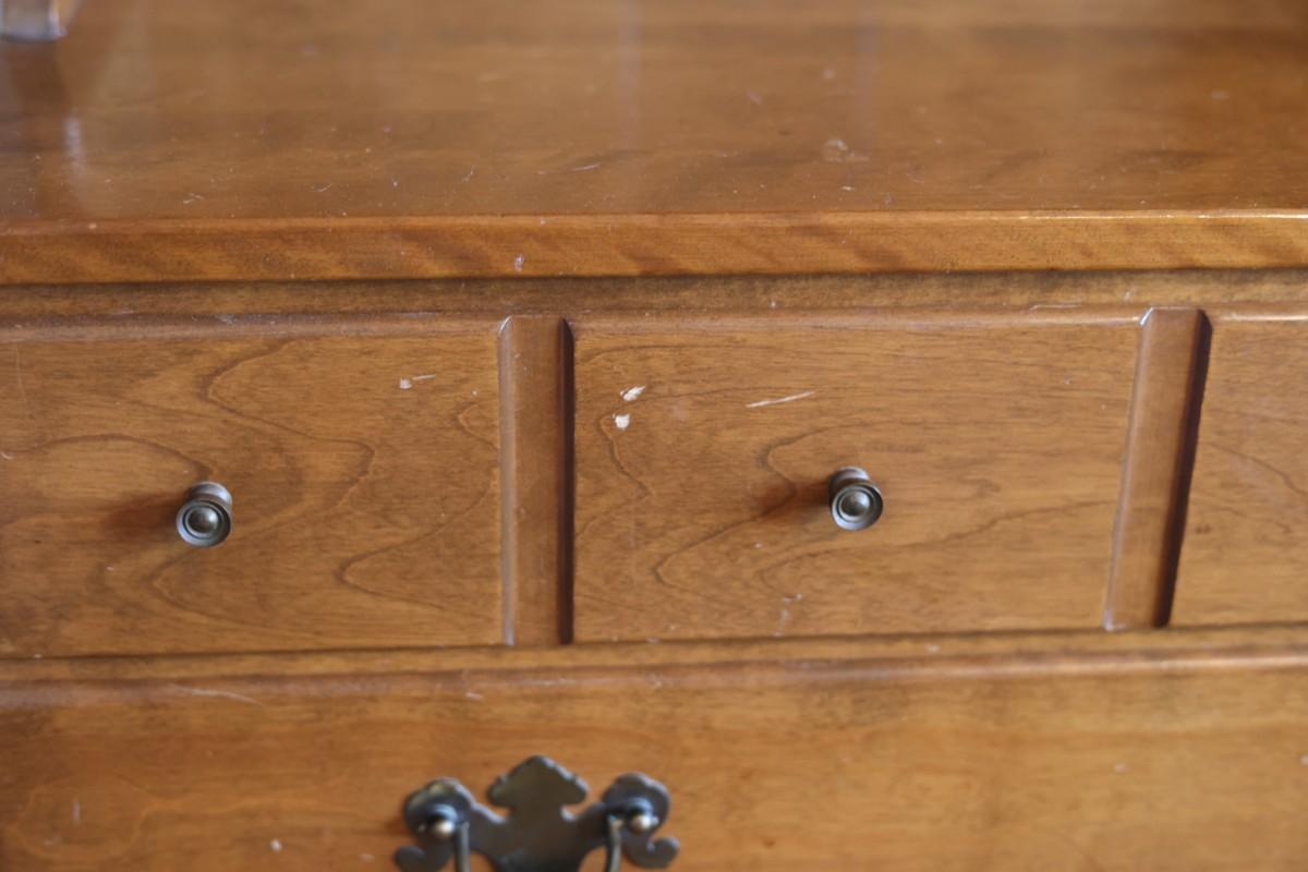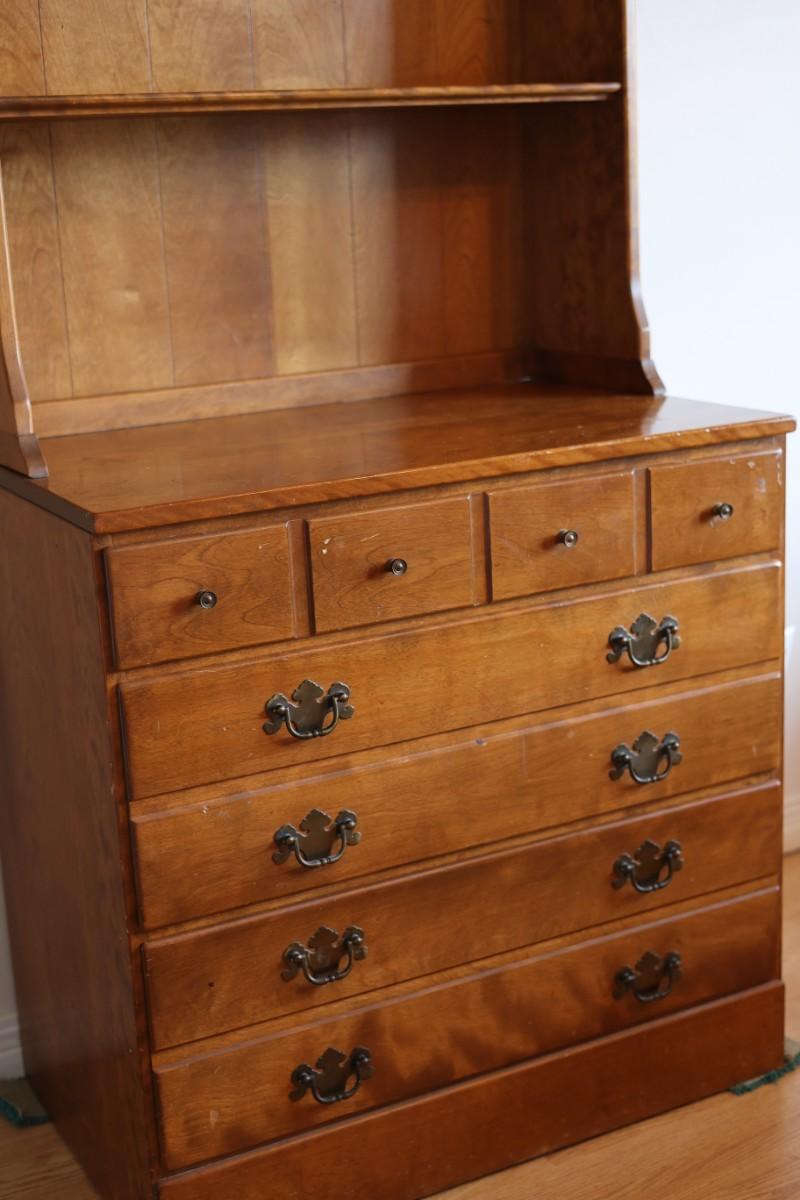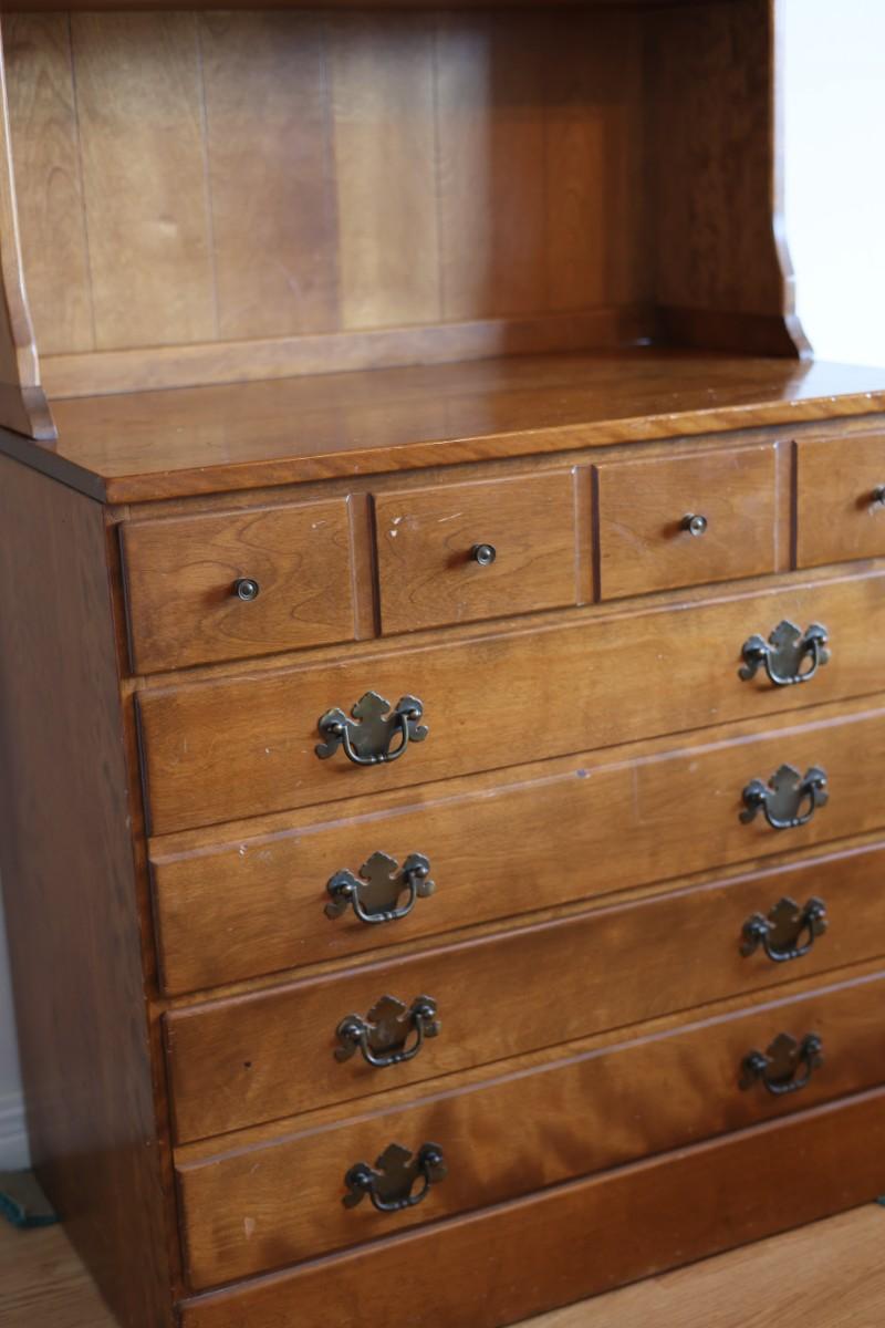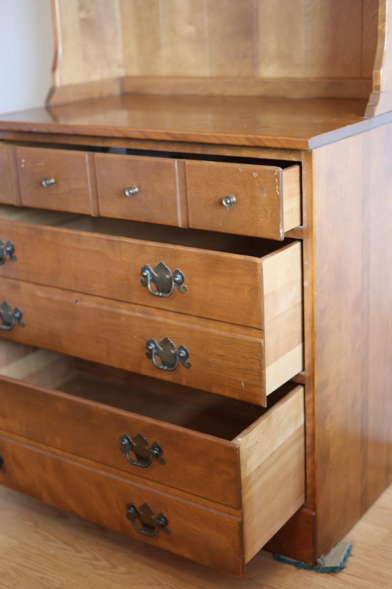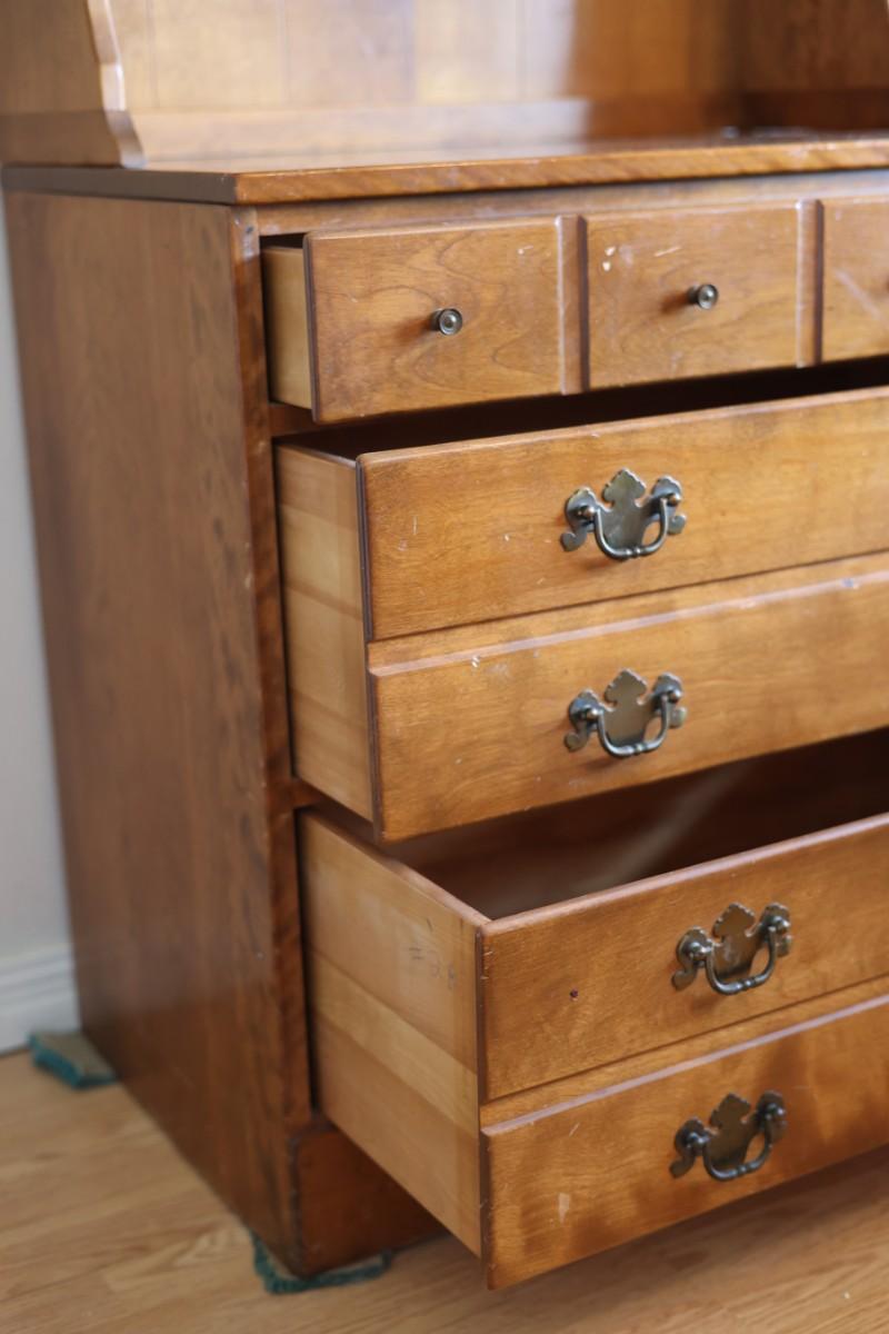 Three drawers. Top slides right off the top to make for easier transportation! See minor wear in the pictures.