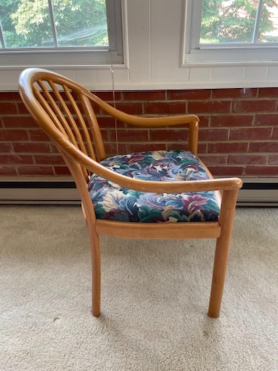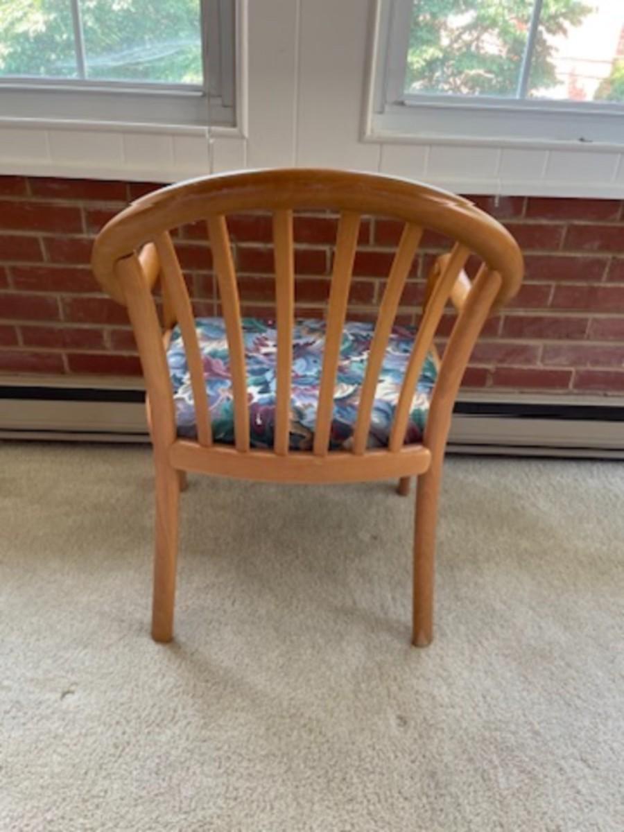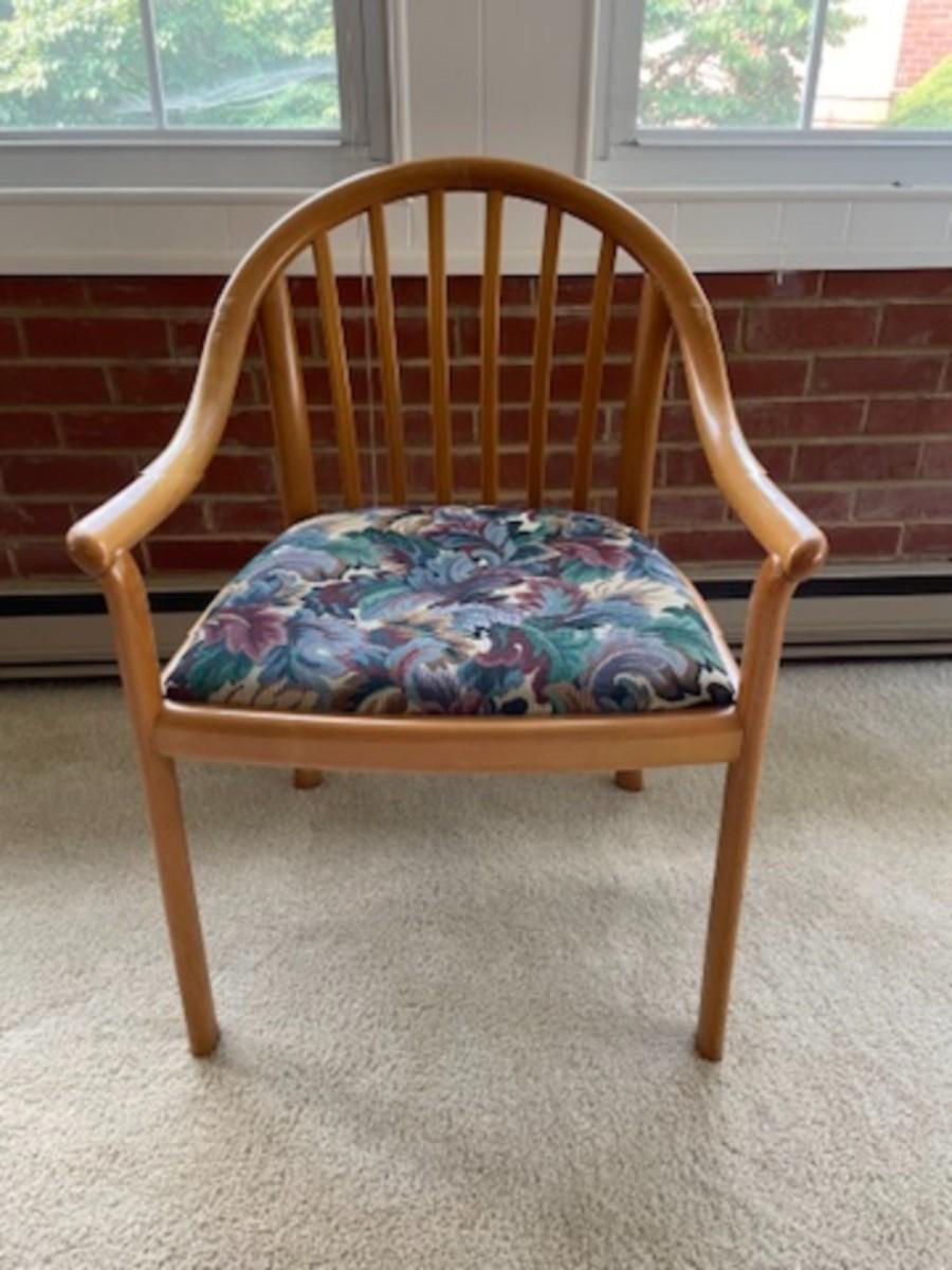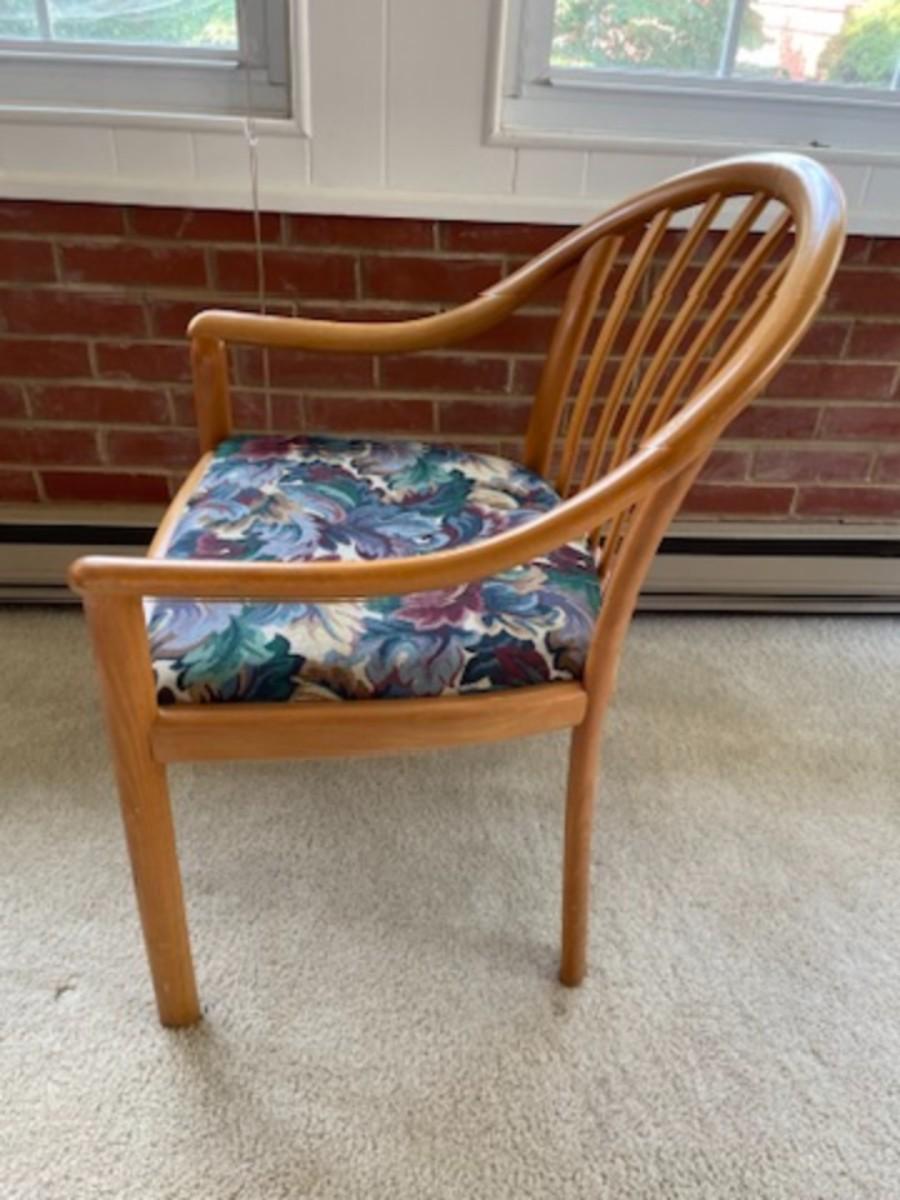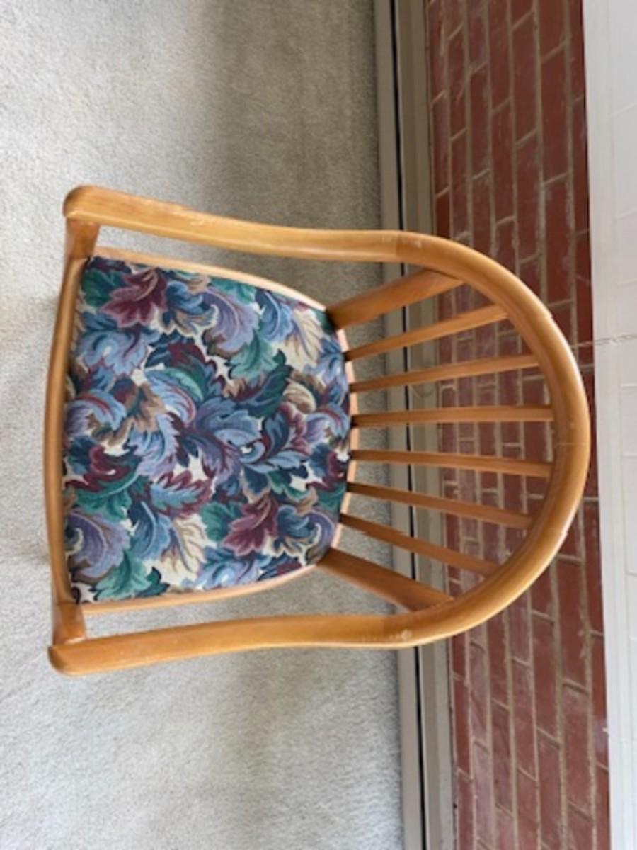 Wood Ethan Allen ( 25 1/2 L x 19 W x 30 H). Accent Chair with floral upholstery (24L x 19W x 33h)