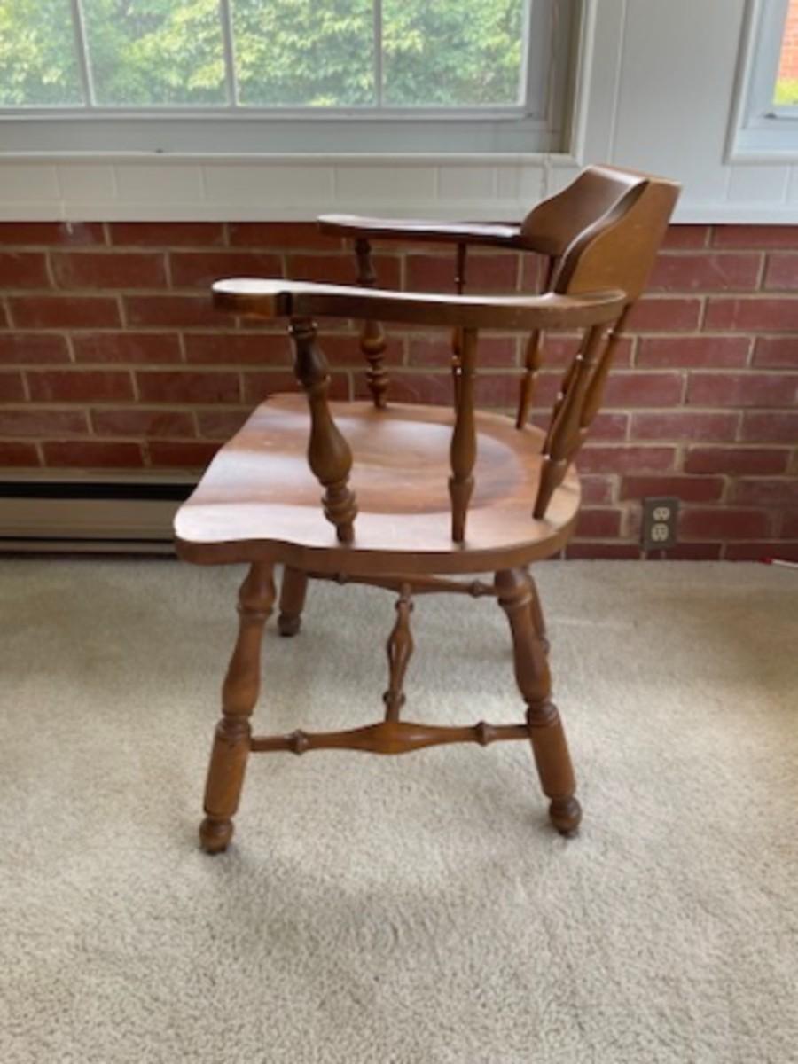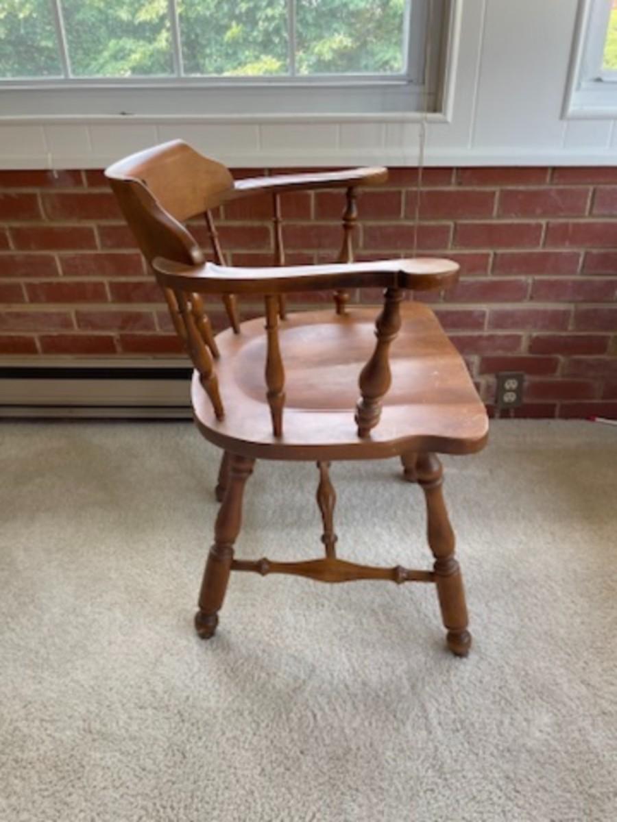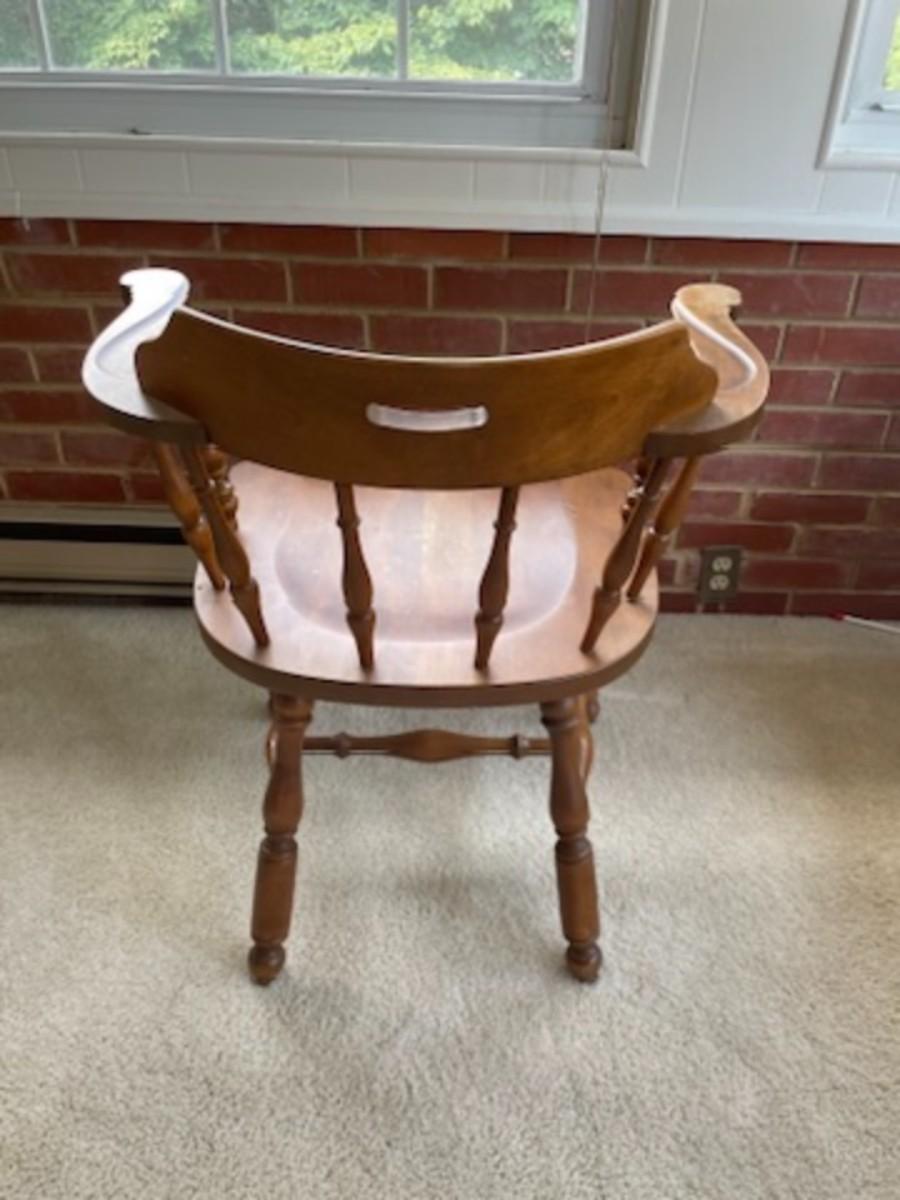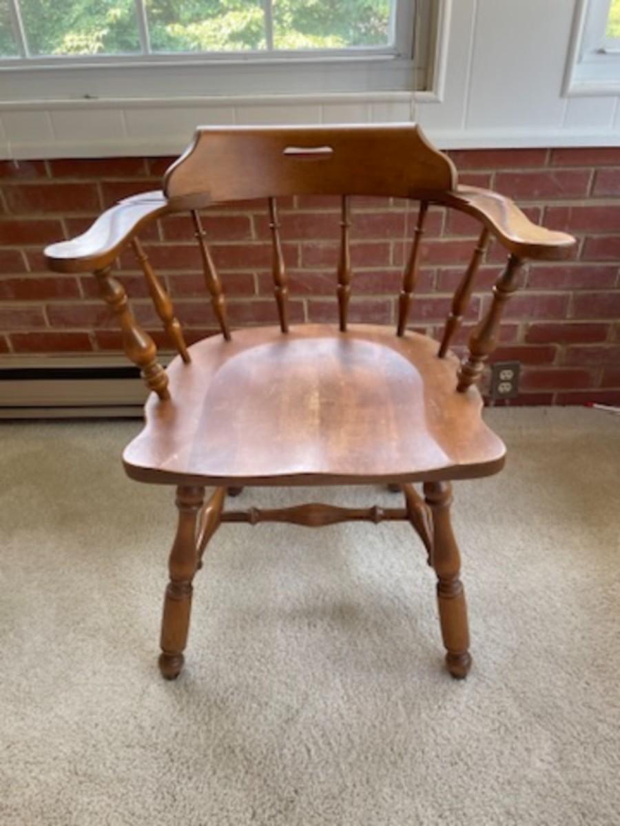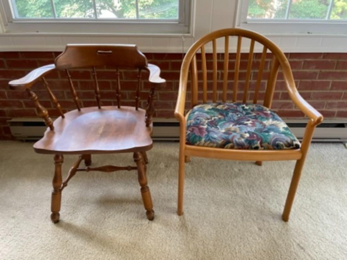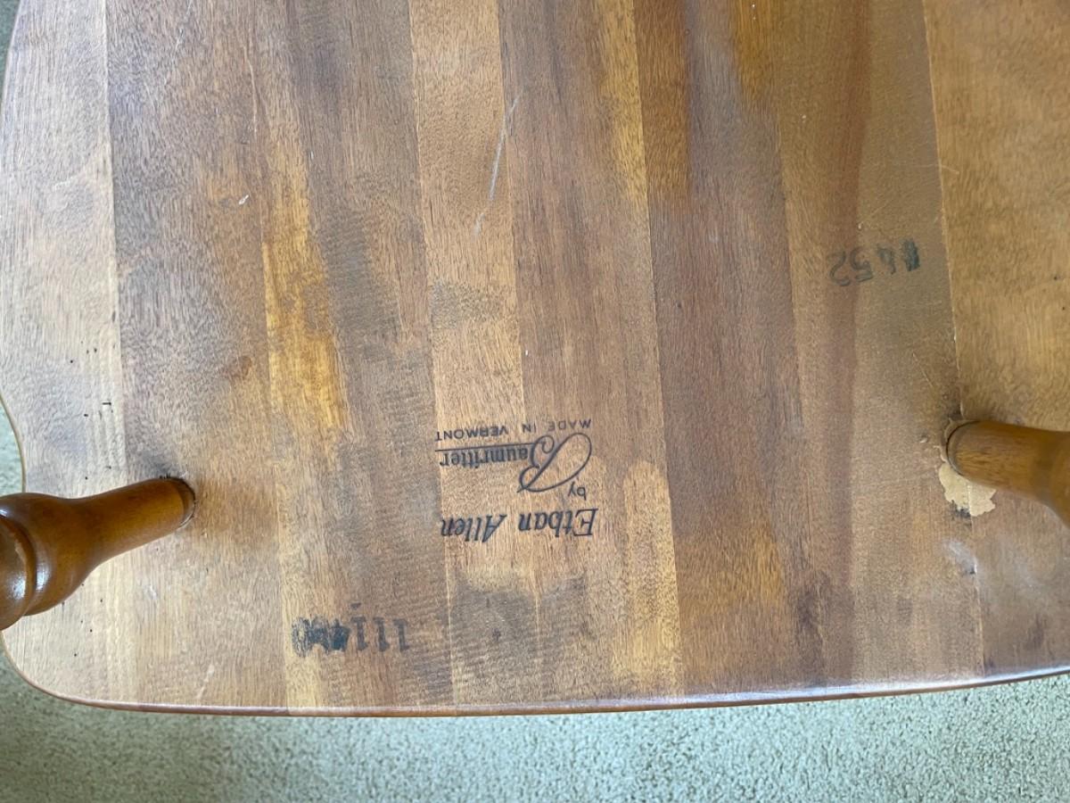 Wood Ethan Allen ( 25 1/2 L x 19 W x 30 H). Accent Chair with floral upholstery (24L x 19W x 33h)