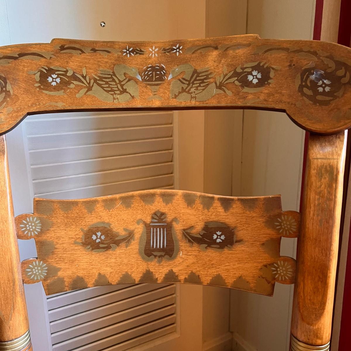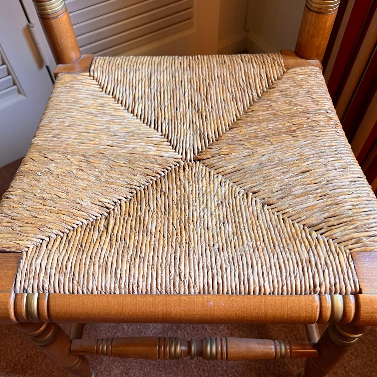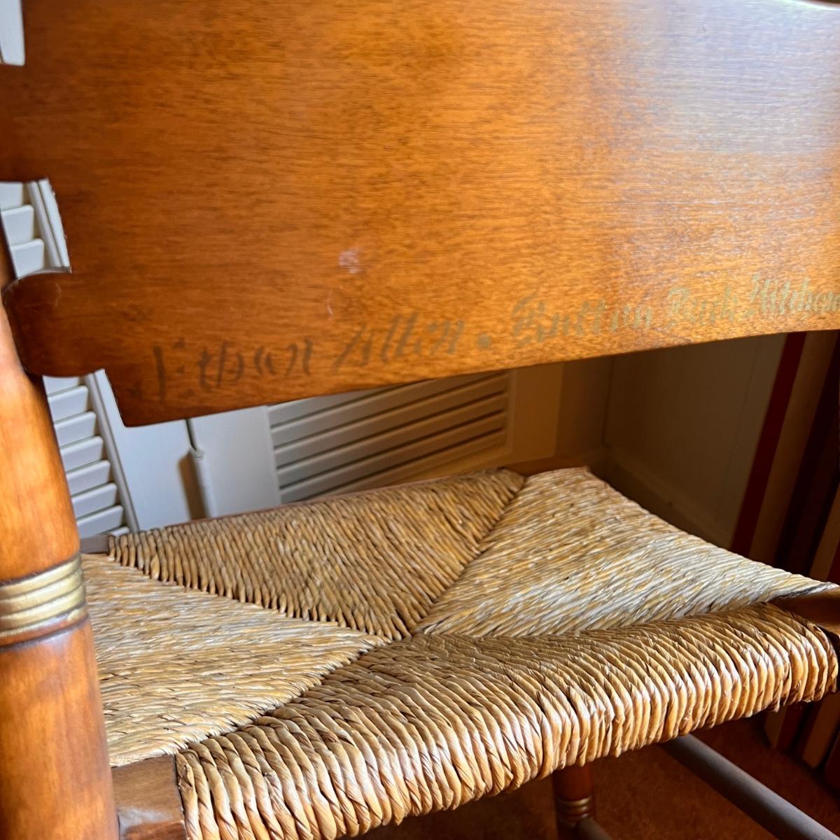 Excellent condition! Painted design, signed Ethan Allen on back. Seat weave is perfect.