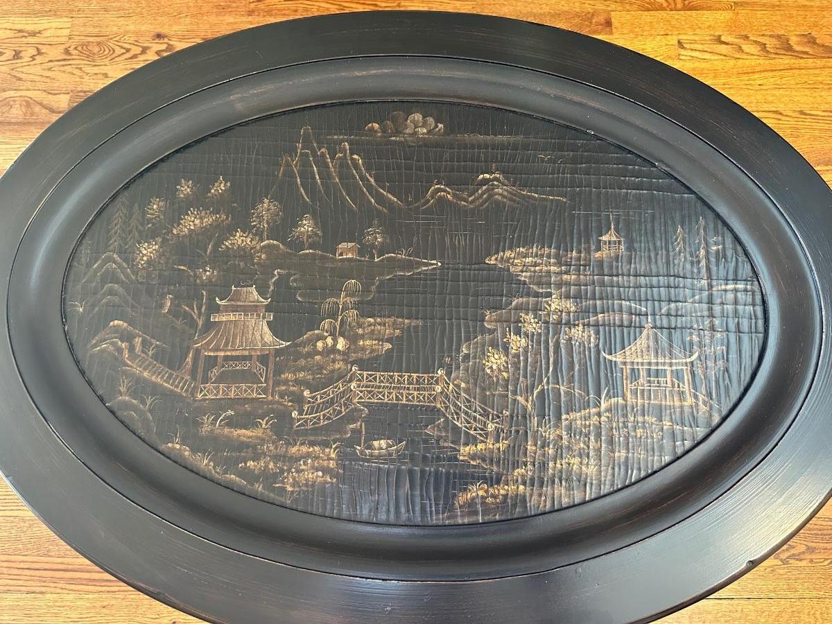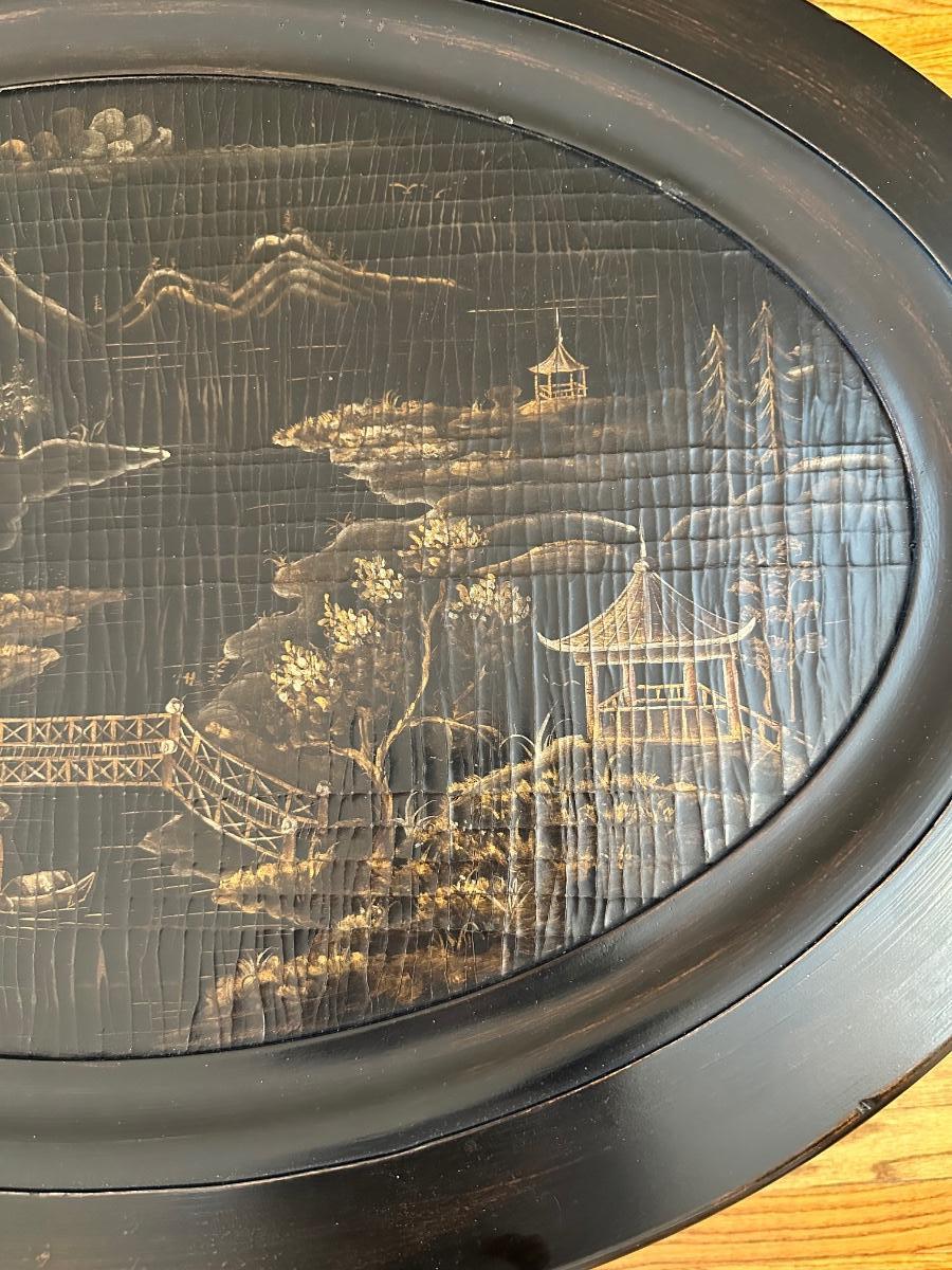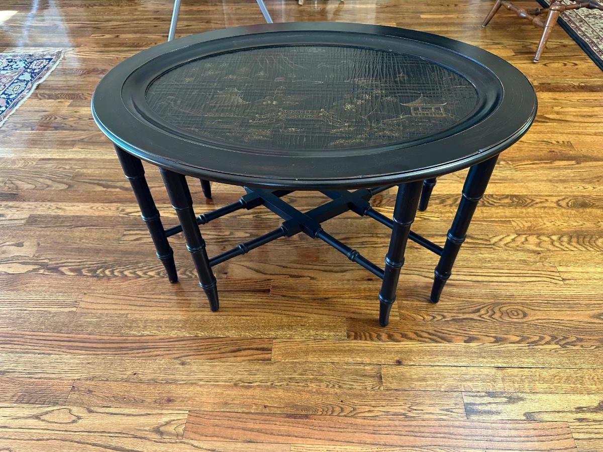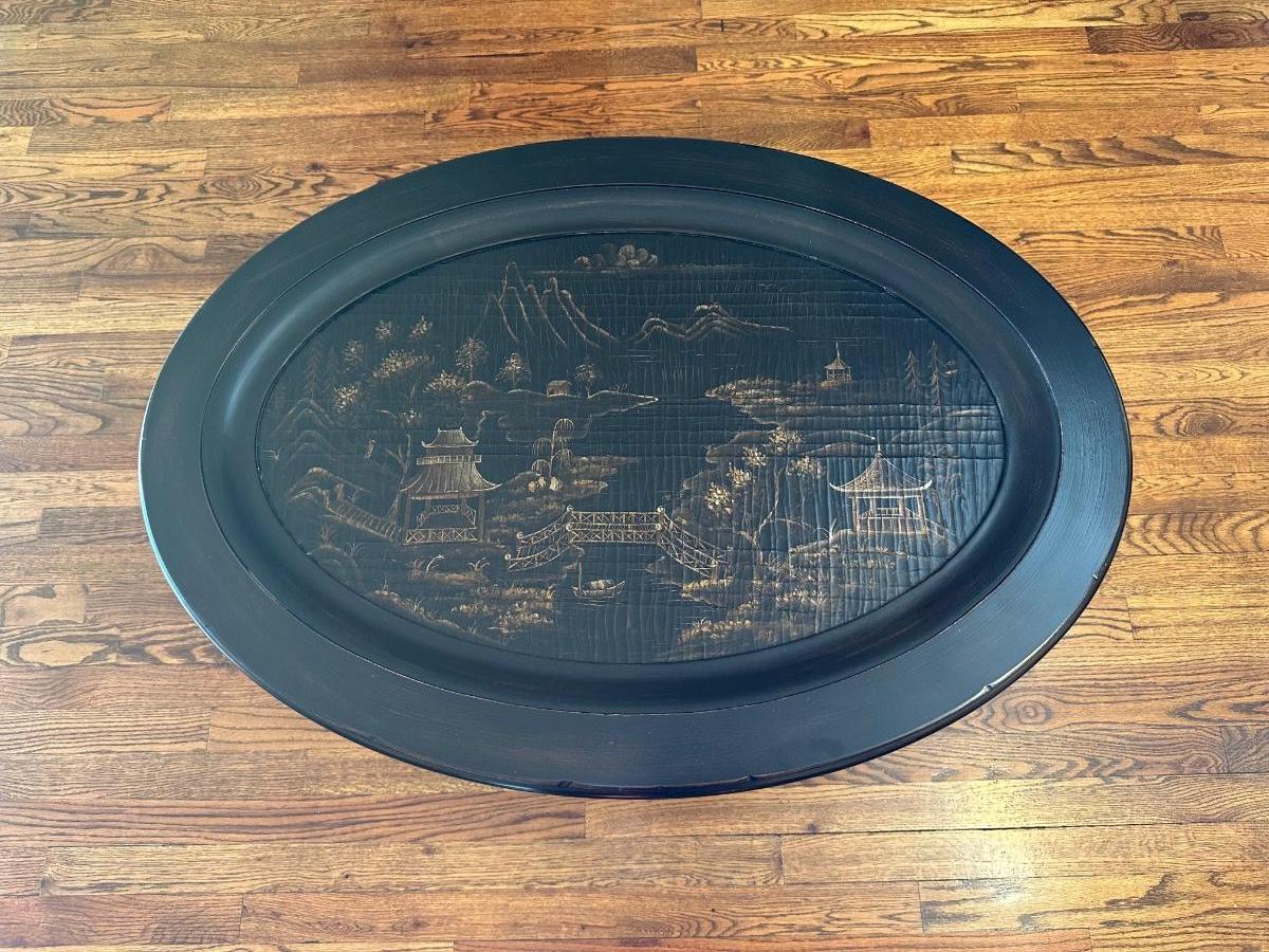 ETHAN ALLEN CHINOISERIE CRACKLE TEXTURED OVAL TRAY TABLE