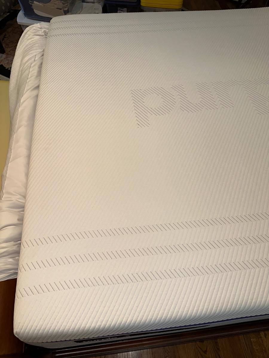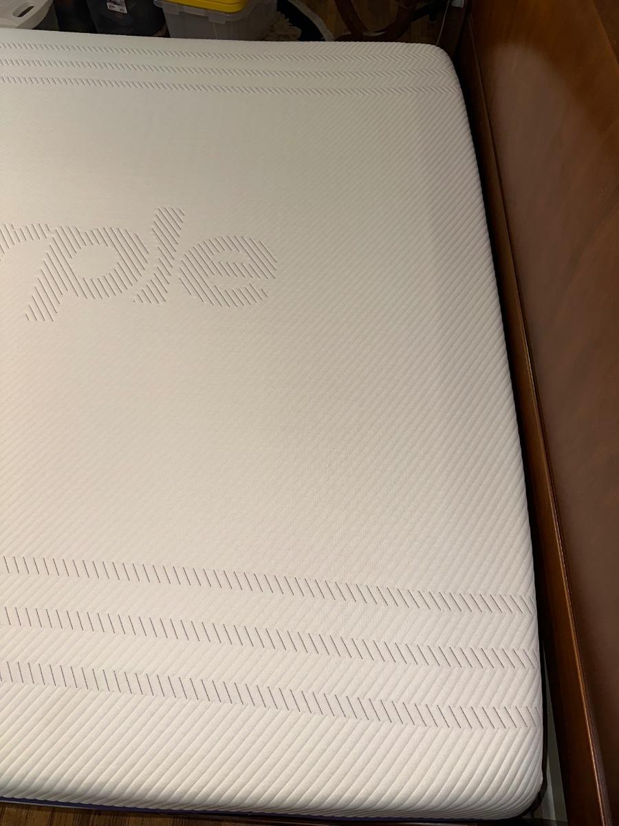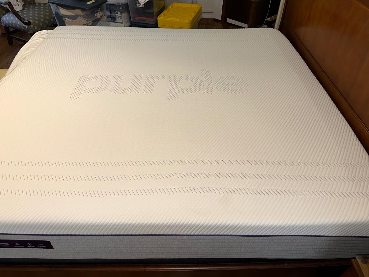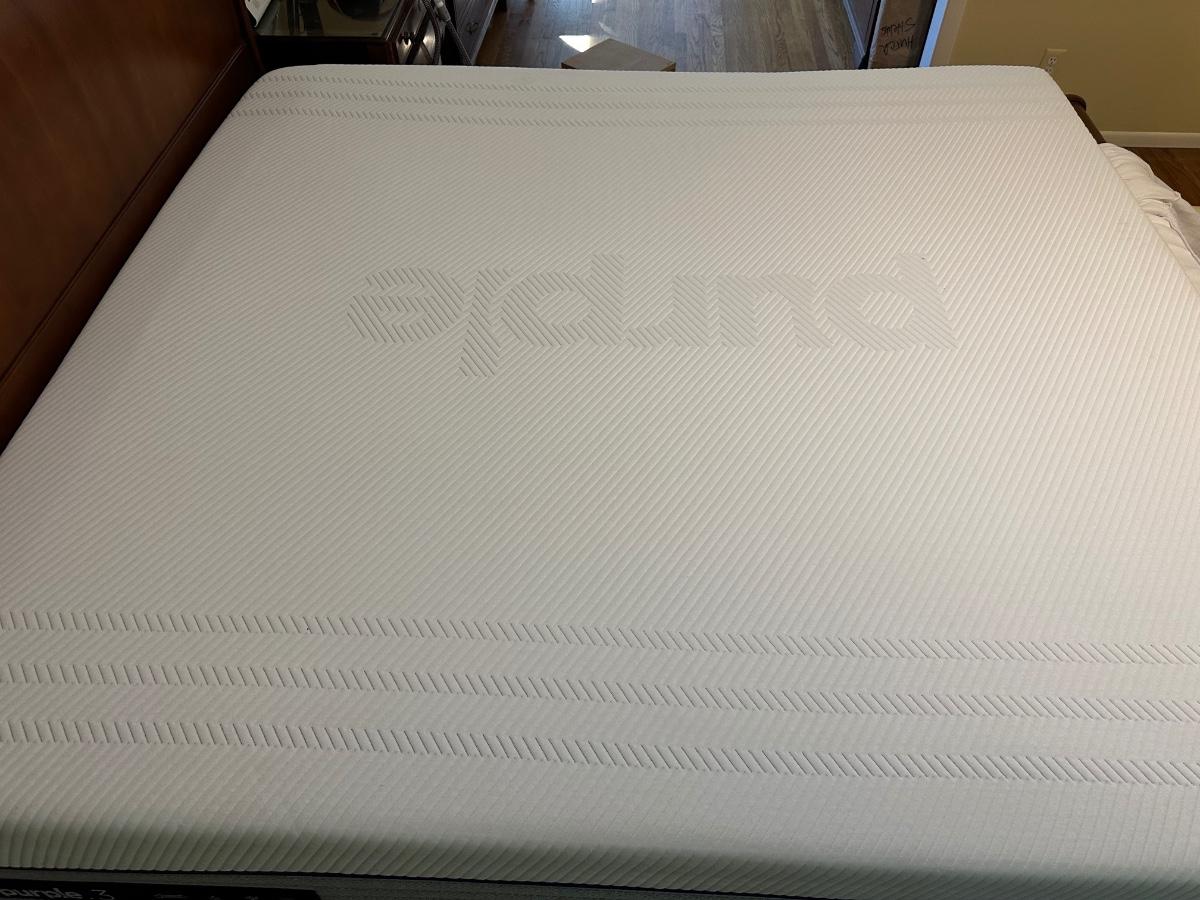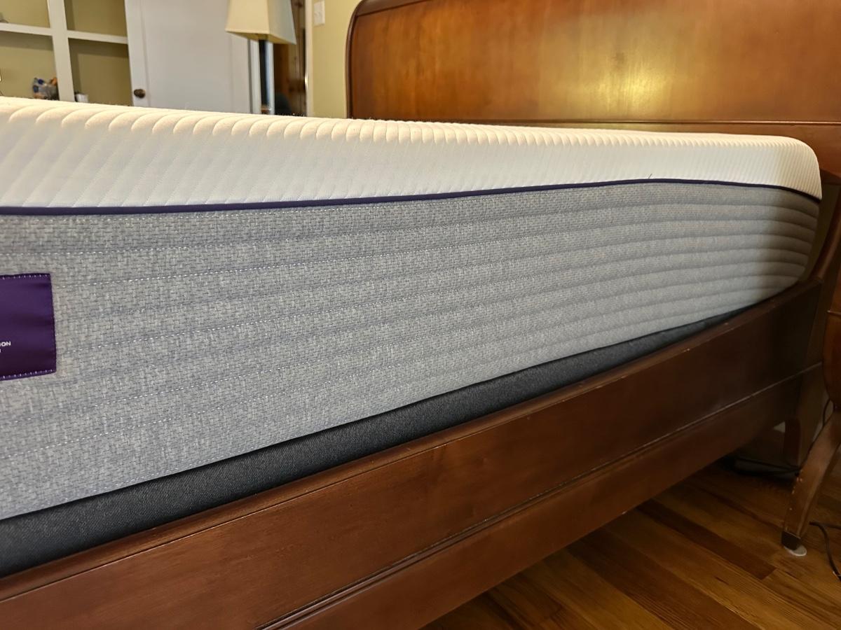 ETHAN ALLEN “CHLOE” SLEIGH STYLE KING BED WITH “PURPLE.3” MATTRESS