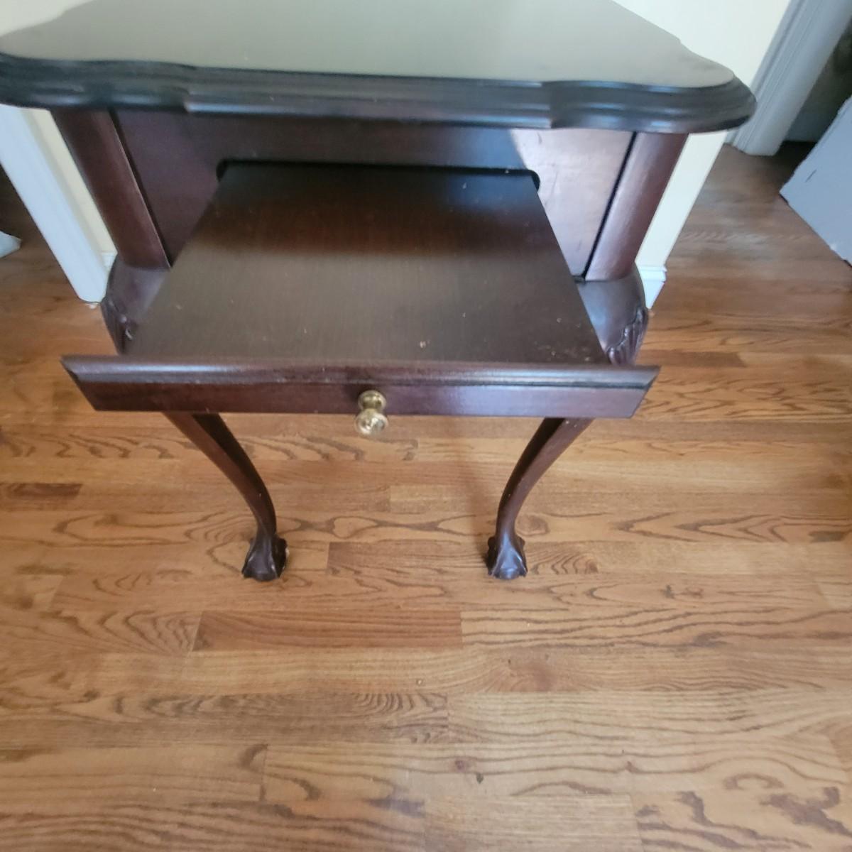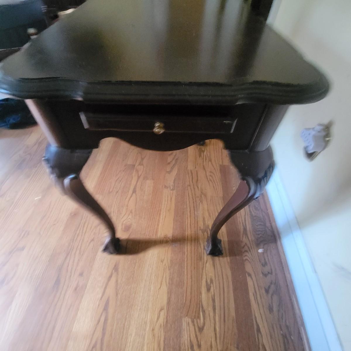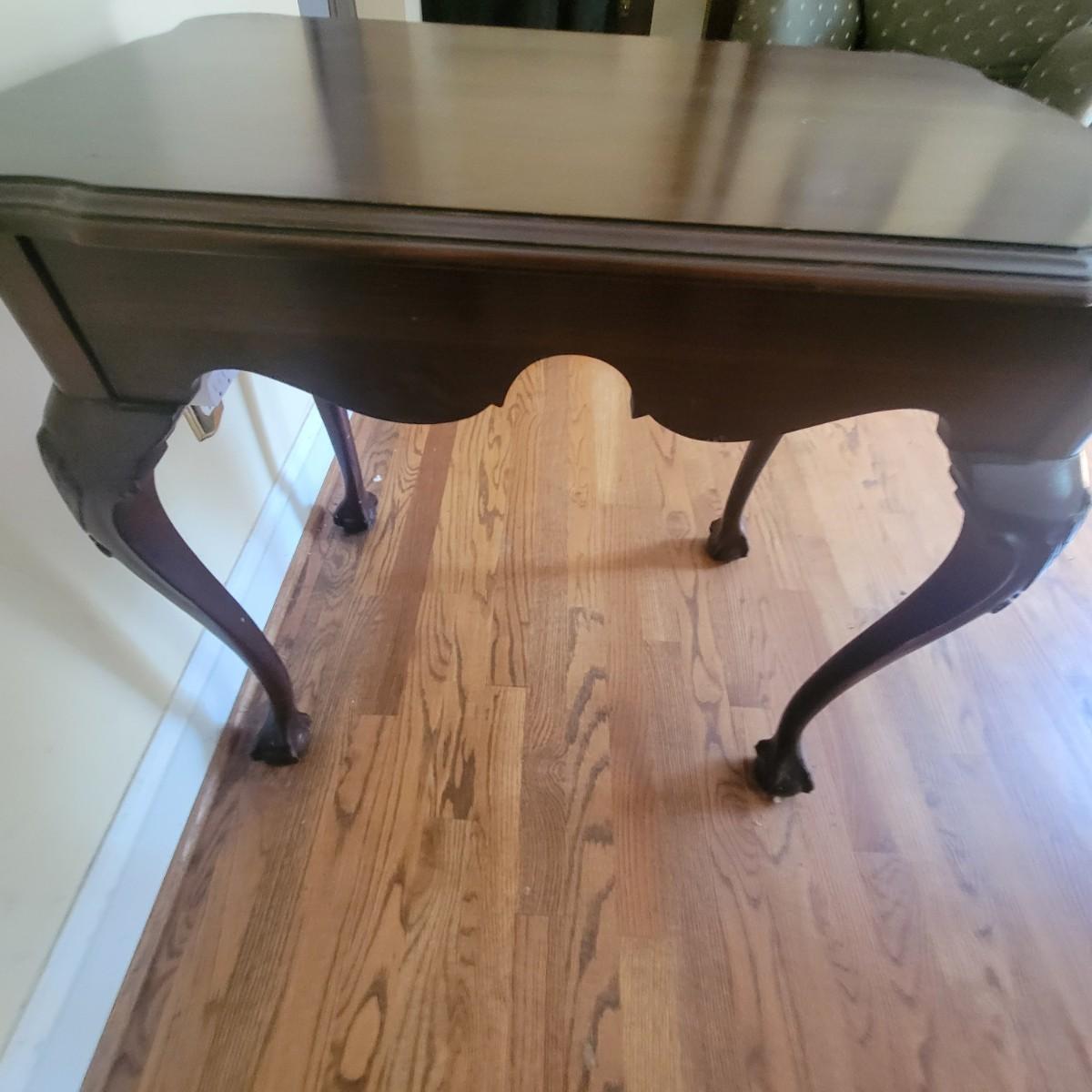 Claw foot wooden writing table with 2 pull out surfaces, crafted by Ethan Allen. Table does have some scratches, see photos. Measures approximately 19" x 29" x 26". Local pickup only