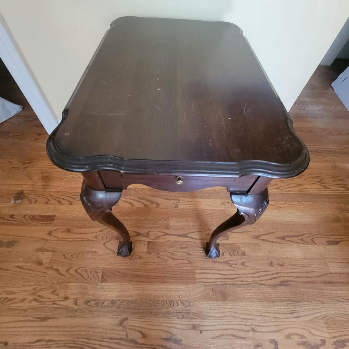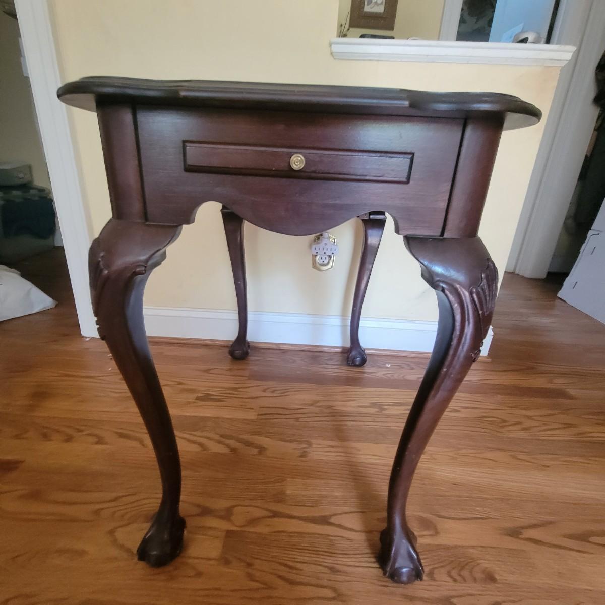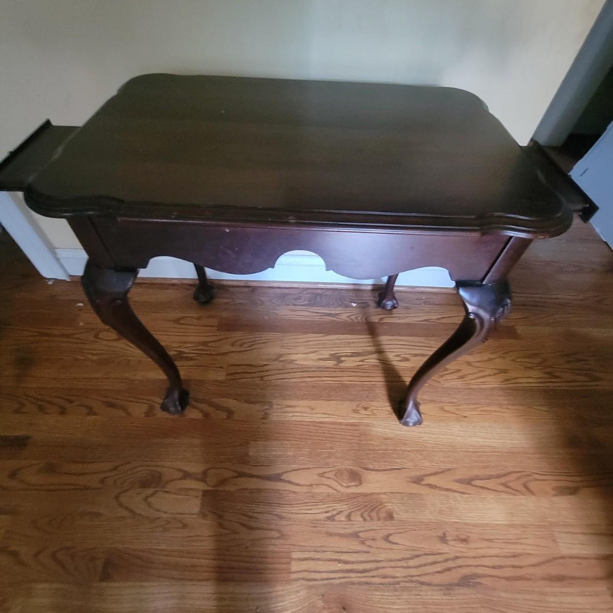 Claw foot wooden writing table with 2 pull out surfaces, crafted by Ethan Allen. Table does have some scratches, see photos. Measures approximately 19" x 29" x 26". Local pickup only