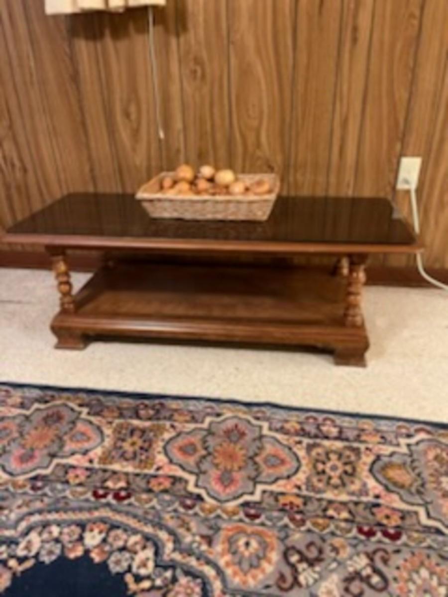 A very nice Ethan Allen solid wood coffee table. Also has a glass top to protect the wood top.Dimensions are 16" Tall 48" long & 21" deep