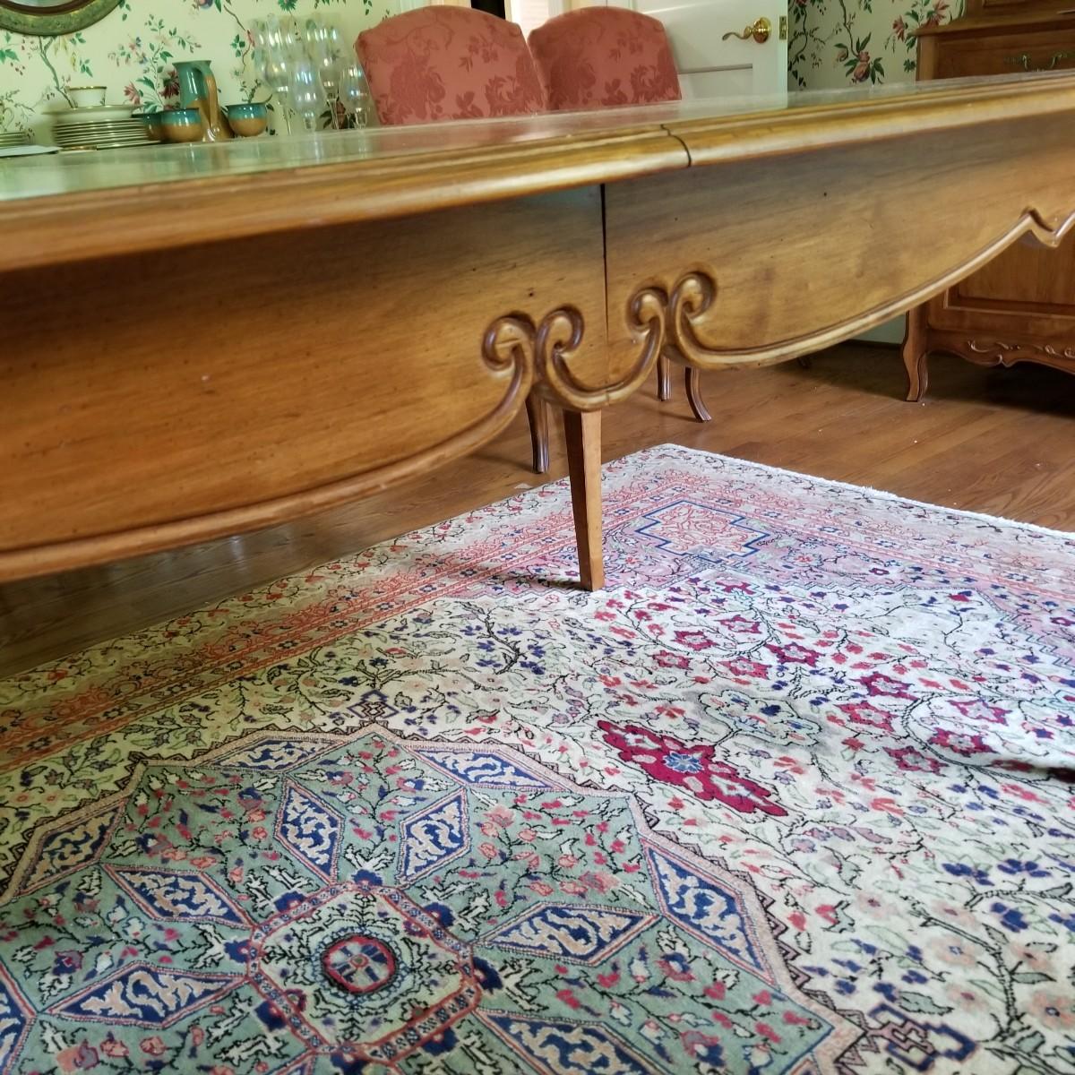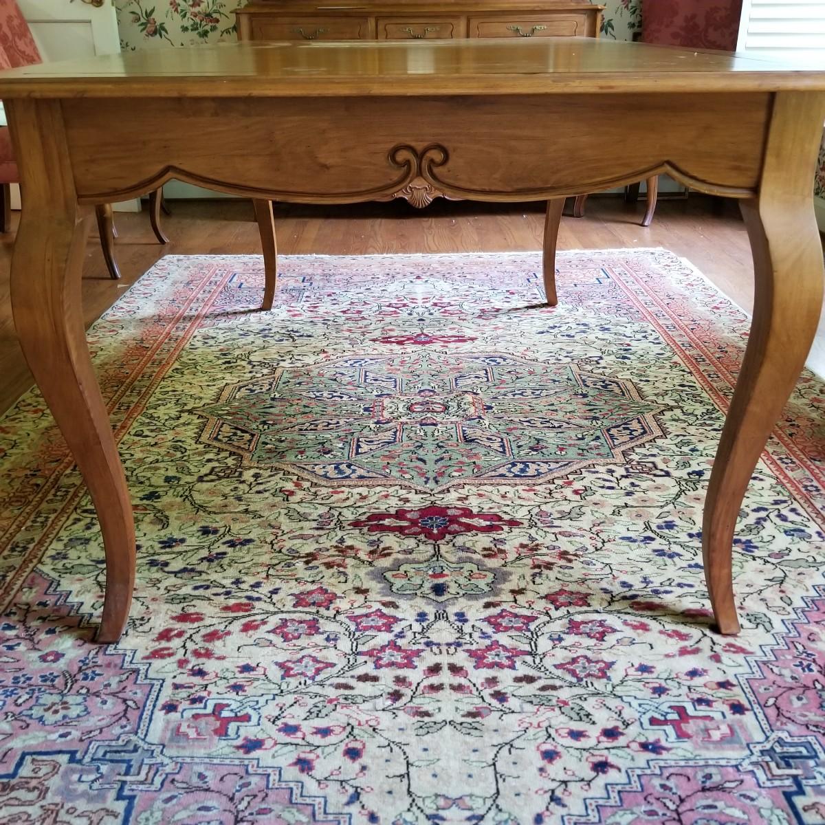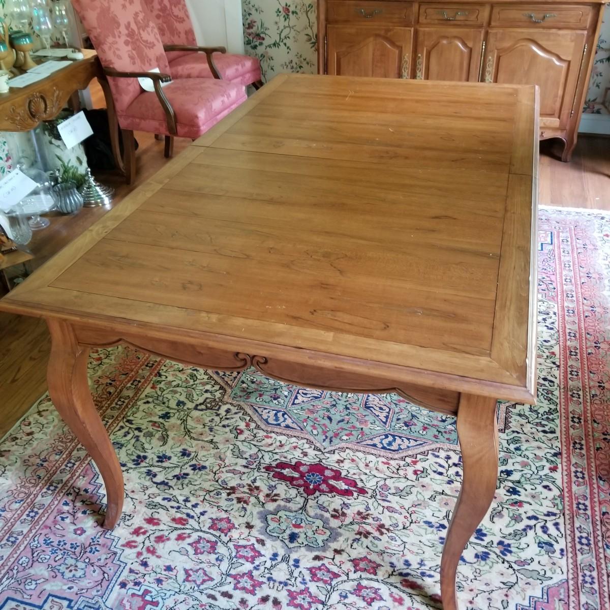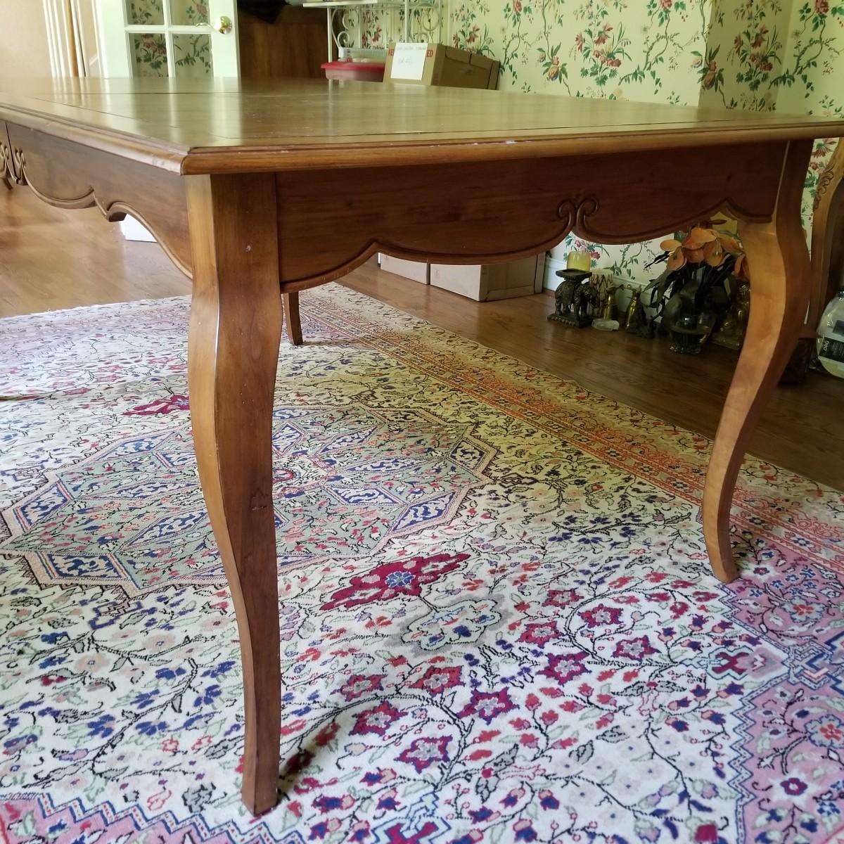 Nice Ethan Allen dining room table from the Legacy collection, with two leafs. Table is in good condition, some minor scratches on top, see photos. Table measures 67.5" x 40" x 30.5". Leaves add 20" each. Local pickup only.