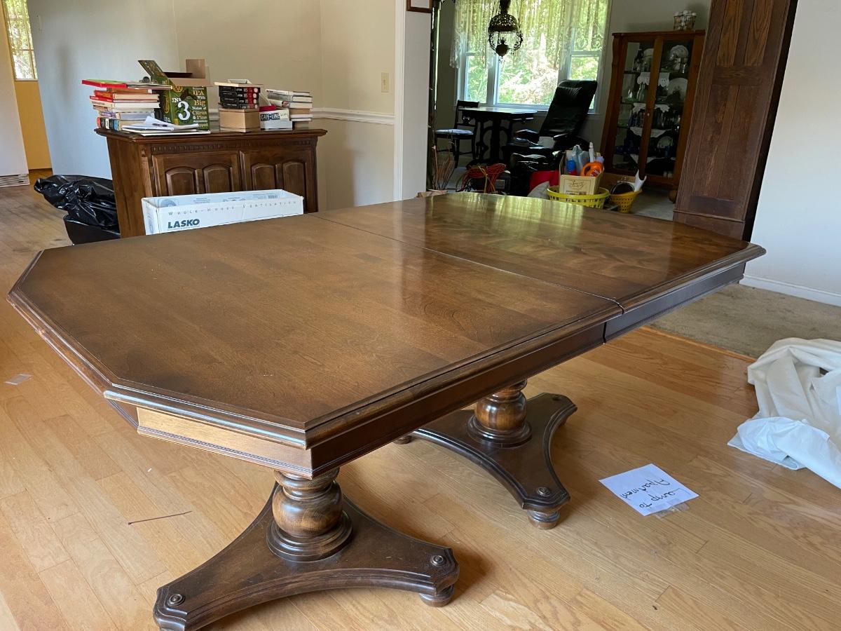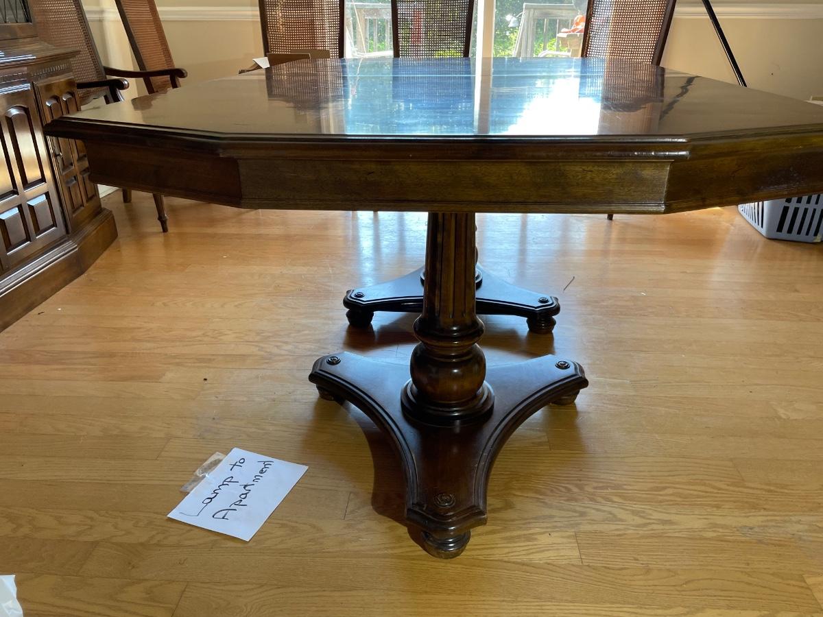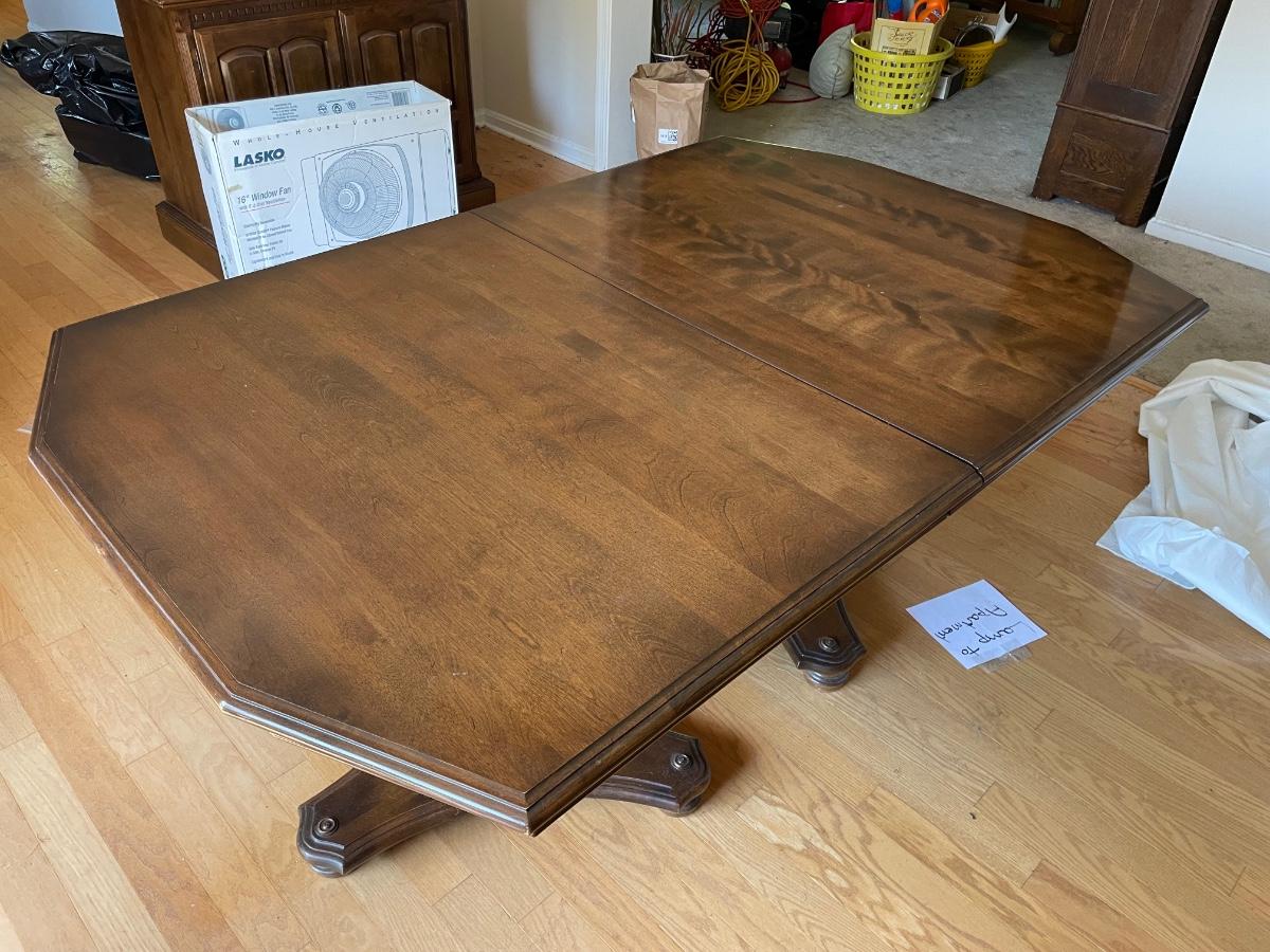 Ethan Allen Dining Room Table with free chairs. Table is in excellent condition. Chairs need work. Table measures 65l x 42w x 29.5h