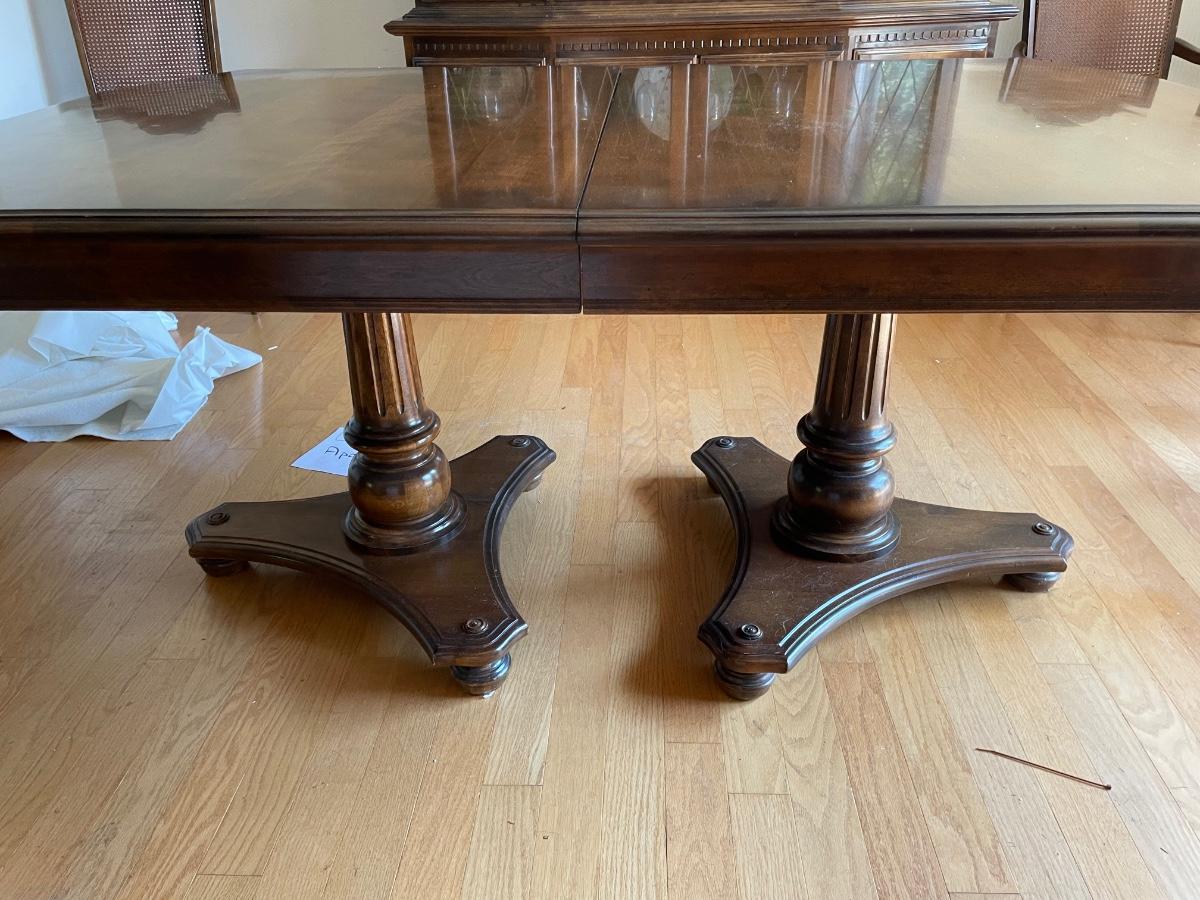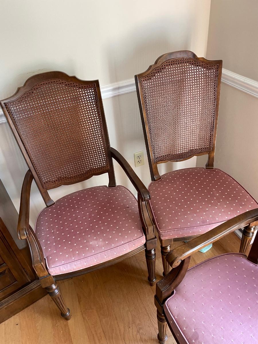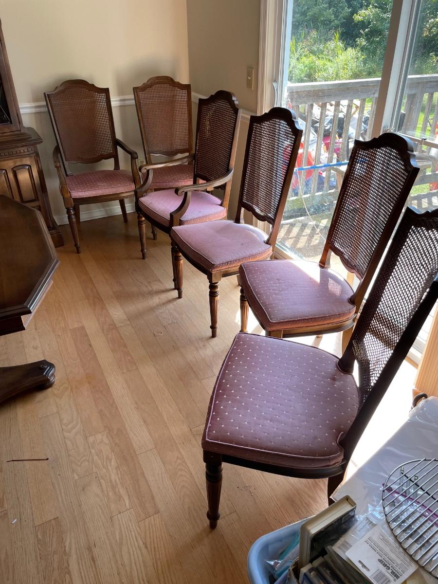 Ethan Allen Dining Room Table with free chairs. Table is in excellent condition. Chairs need work. Table measures 65l x 42w x 29.5h