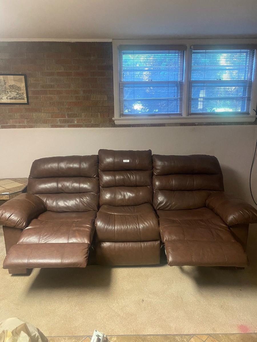 3 Cushion 91" Long. Leather. Works good and in nice shape.