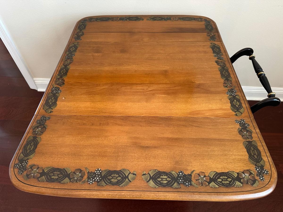 Ethan Allen Drop-Leaf Tea Cart with Floral Inlay