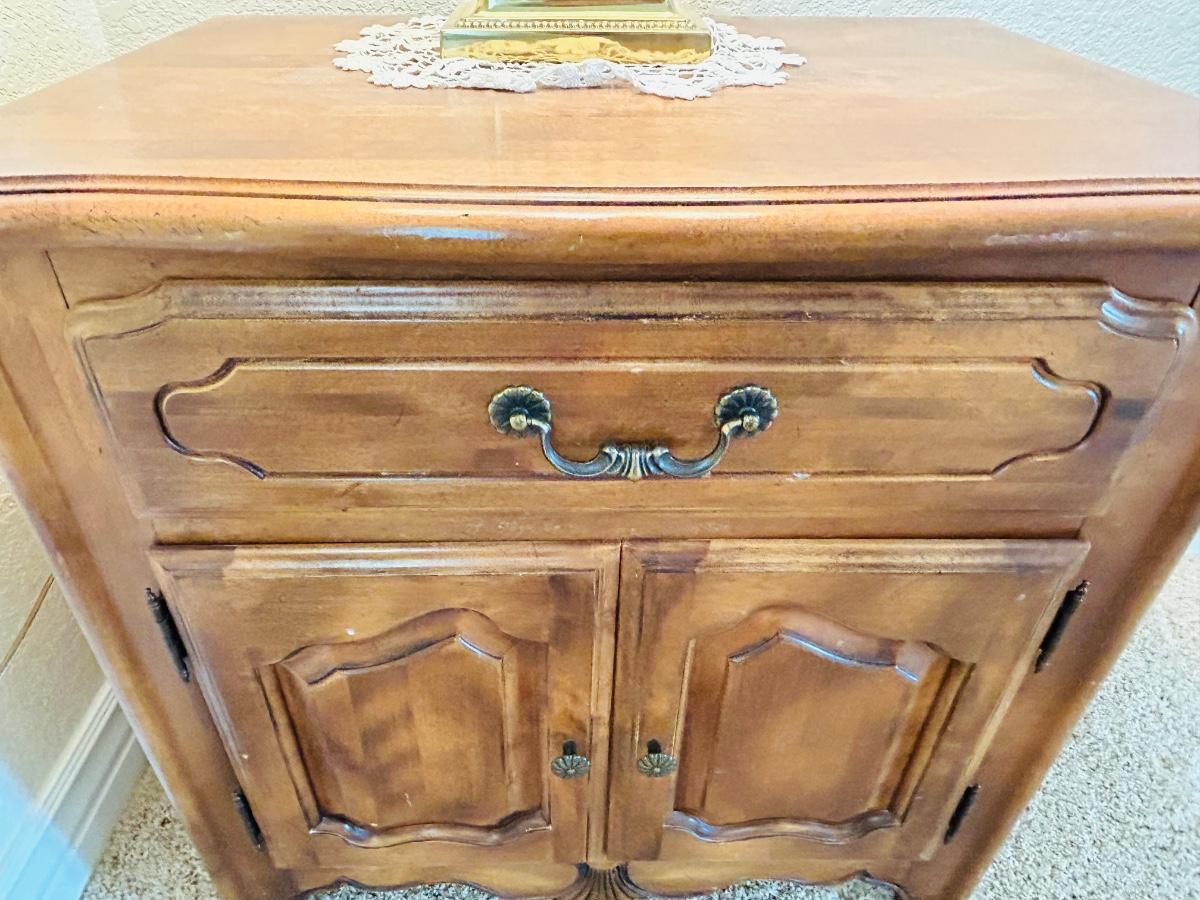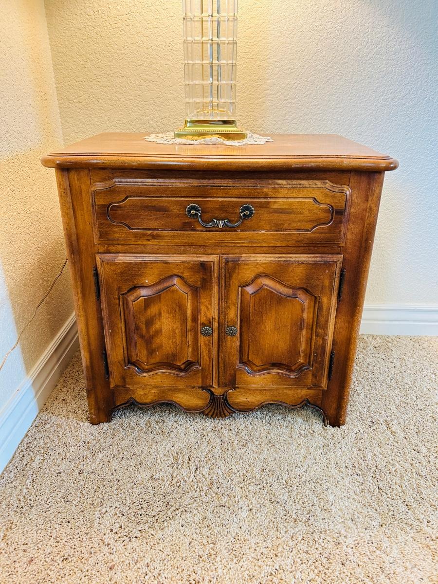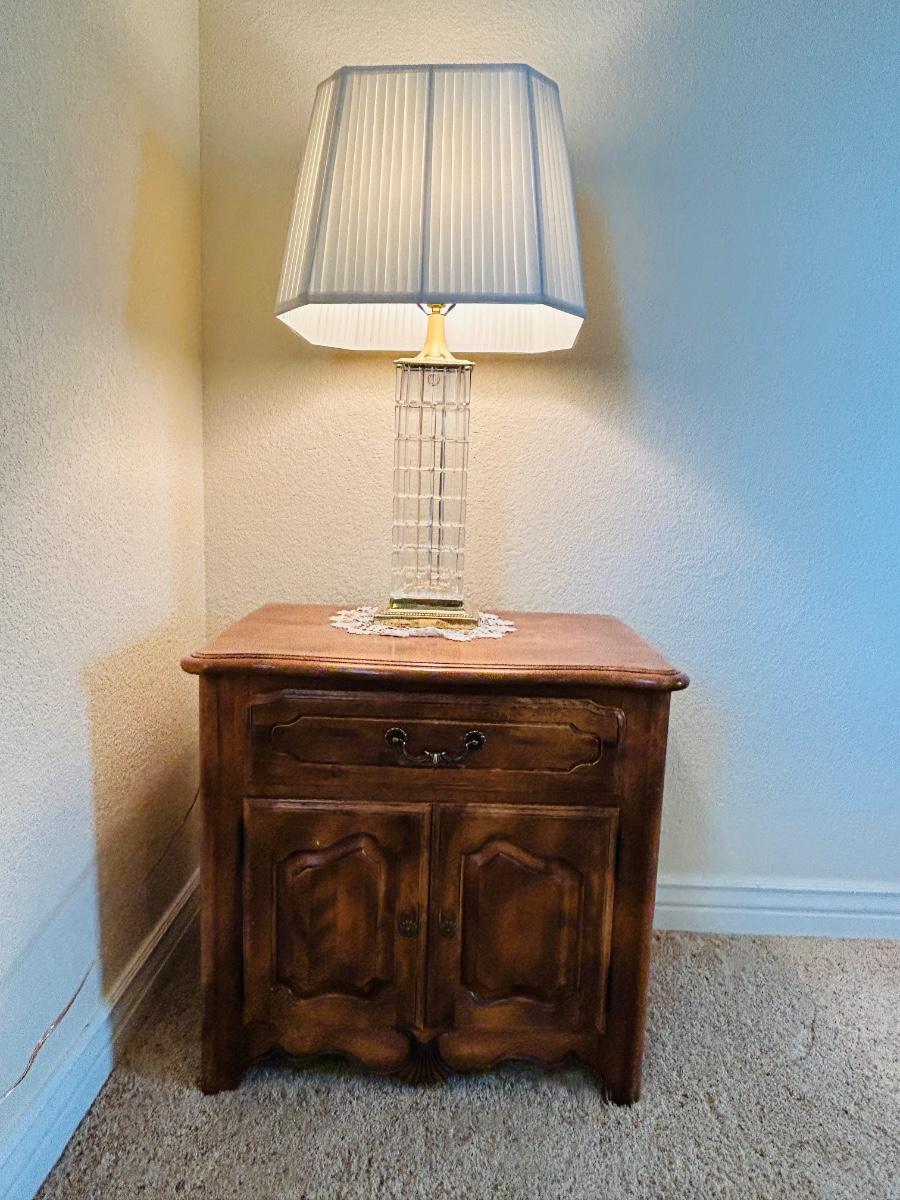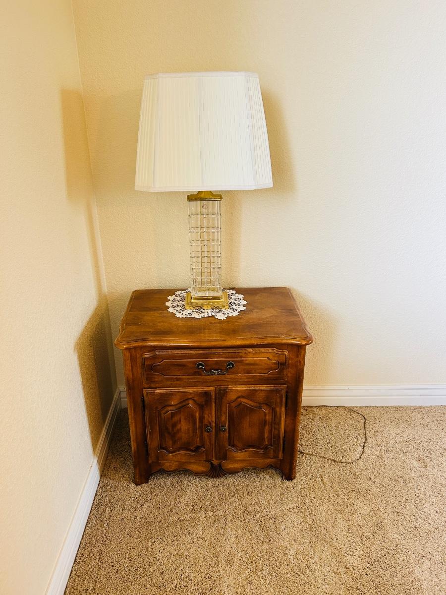 ETHAN ALLEN ENCLOSED NIGHTSTAND WITH LEAD CRYSTAL LAMP