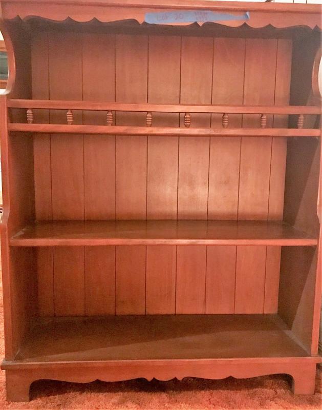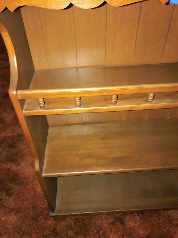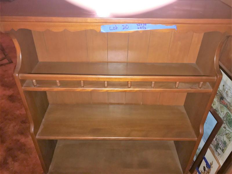 32x38x9.5 unmarked but fairly common for this time believed to be Ethan Allen according to home owner. Asolid piece of furniture that will last you for years to come no makers mark found.