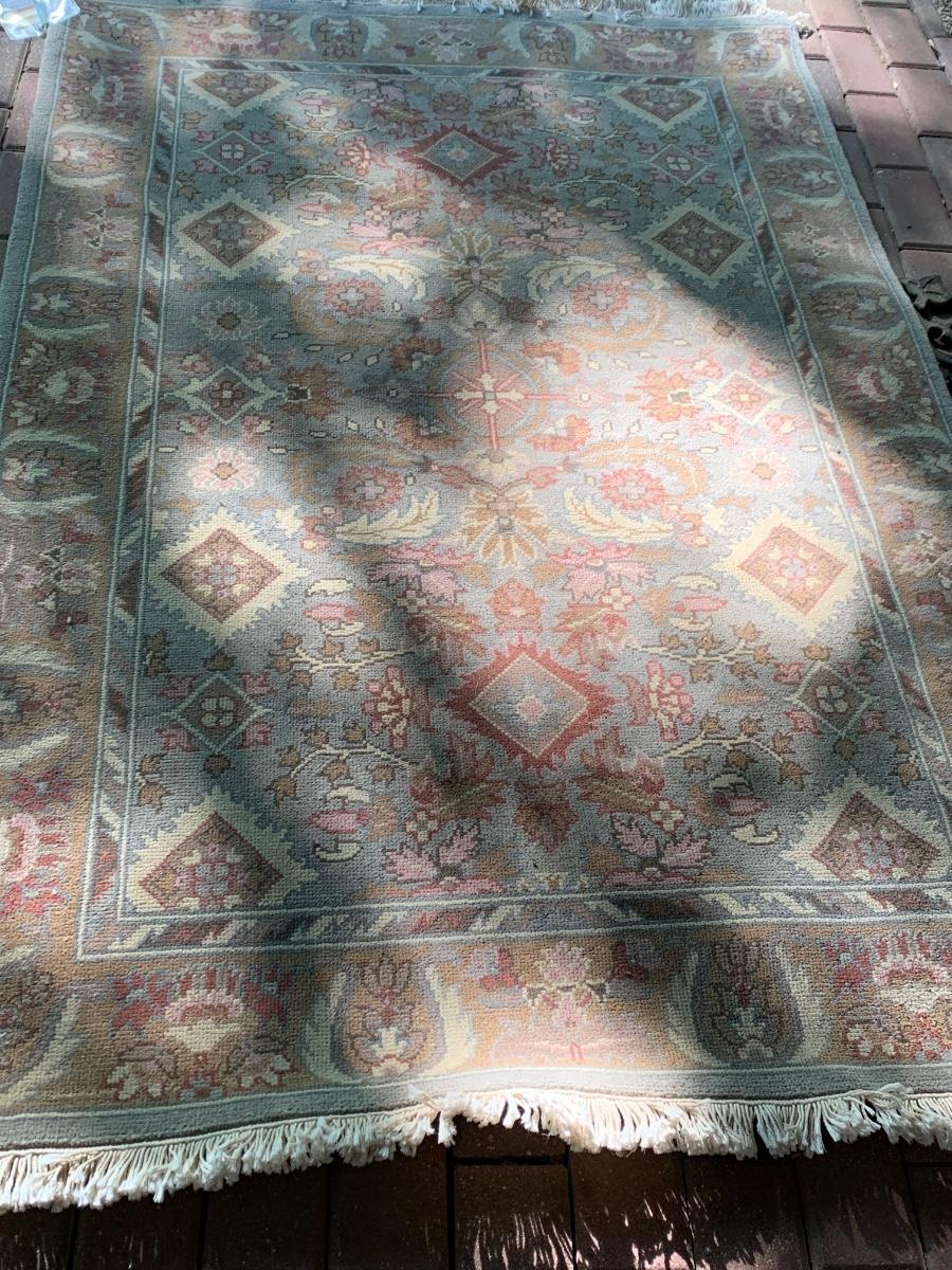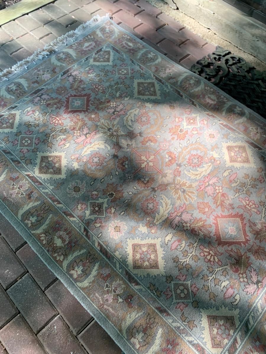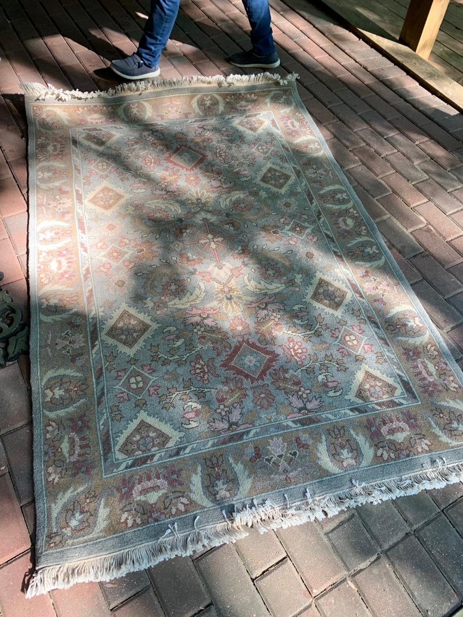 Just one of MANY Oriental Rugs we have in this wonderful estate. This rug was rolled up in the basement many years so was taken to the back patio for more light to photograph. Sorry about the shade / sun but the yard has many trees. These rugs are nice quality but we would recommend a professional cleaning since they have been stored in a rolled state downstairs for years. See ALL photos for measurements, patterns and condition. All are being offered with NO RESERVE, NO BUYERS PREMIUMS, NO CREDIT CARD FEES. Buying as is, as found in the estate - see all photos.