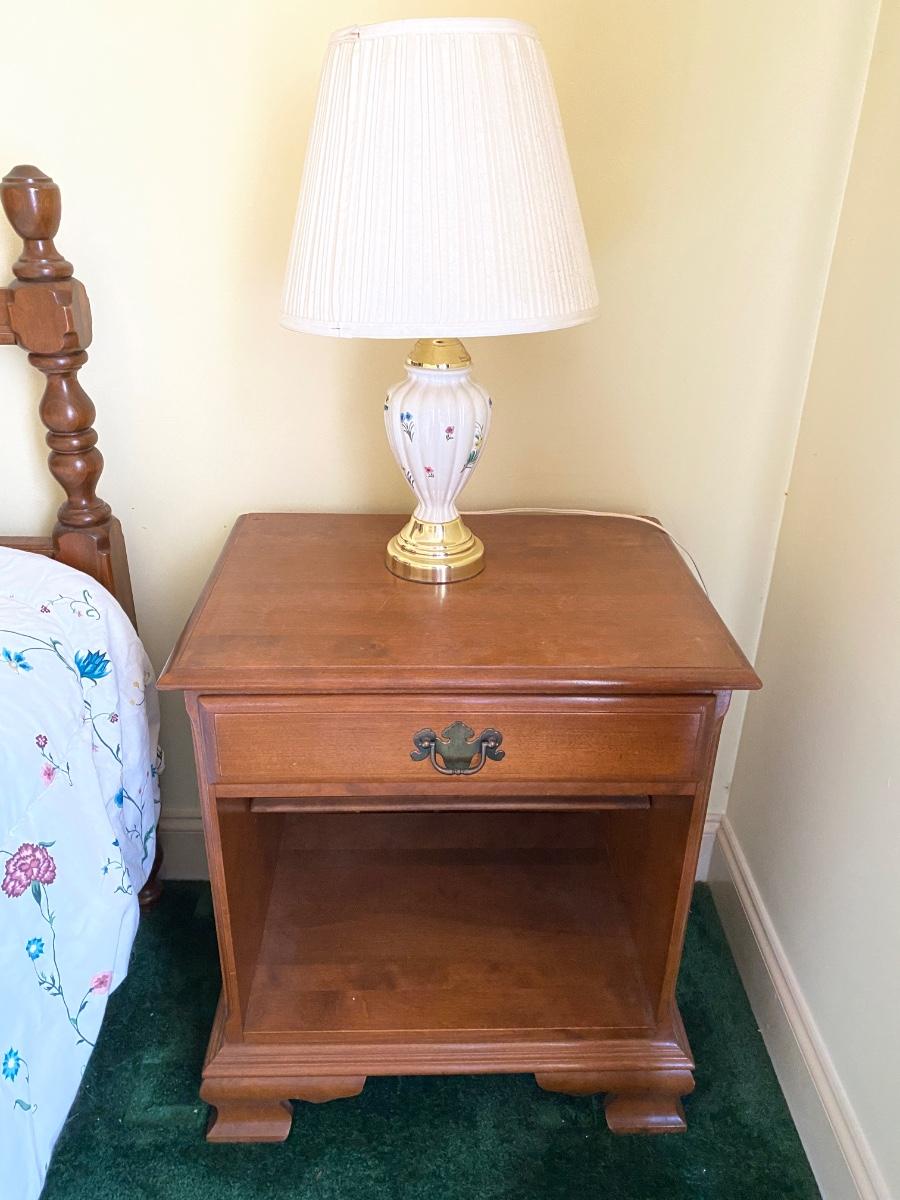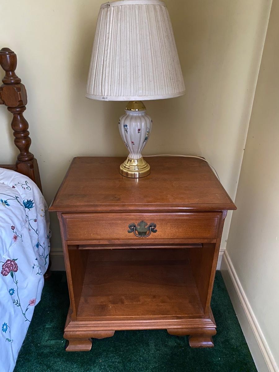 Ethan Allen Night Stand 25x22x16 Dove Tailed Drawer, Includes 21 in. Tall Lamp As Pictured Small Scratch on top